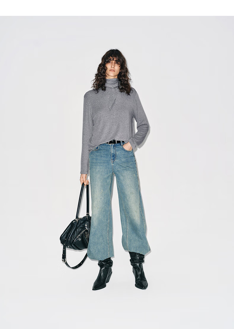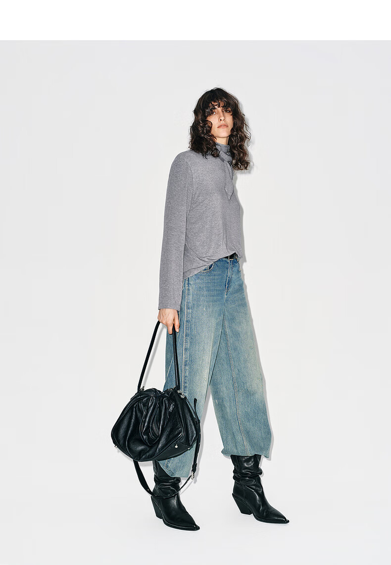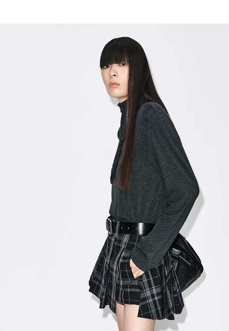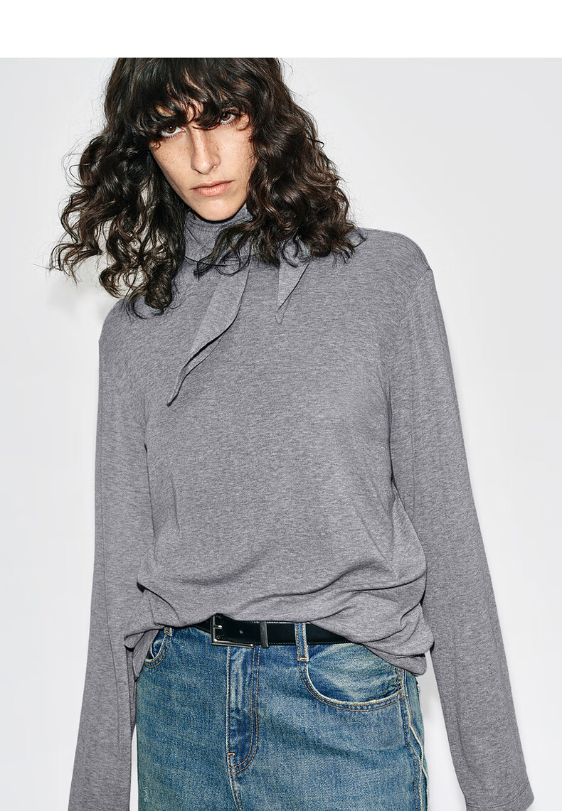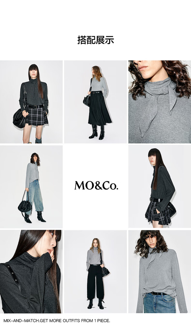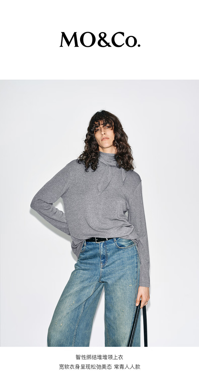 MO&Co. Tops 2025 new winter products include Tencel wool knotted pile collar, loose high-intelligence gray tone MBE4TOPT03 dark floral gray M /165