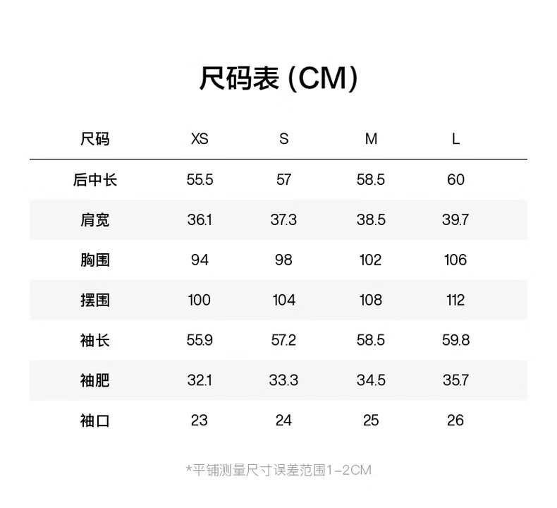 China (cm) 160-165/84-86 165-170 / 88-90 167-172 / 92-96 168-173 / 98-102 170-176 / 106-110