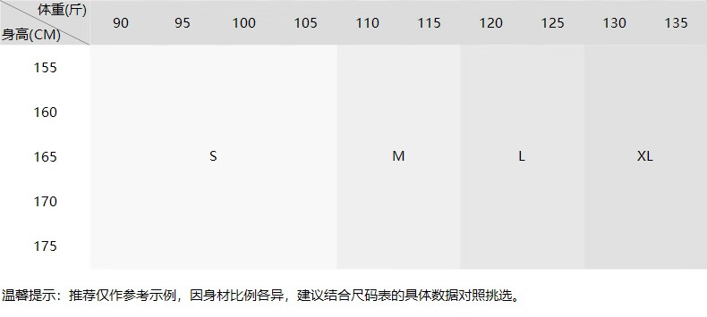 China (cm) 160-165/84-86 165-170 / 88-90 167-172 / 92-96 168-173 / 98-102 170-176 / 106-110