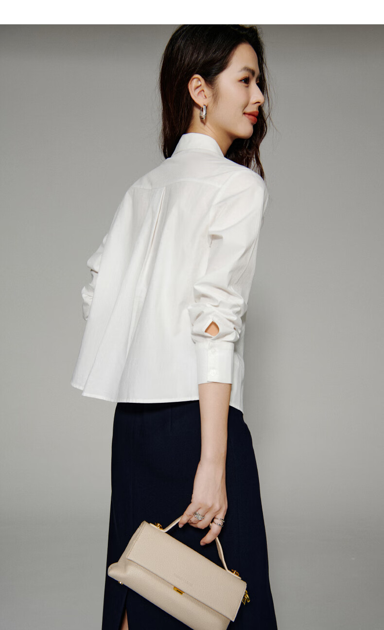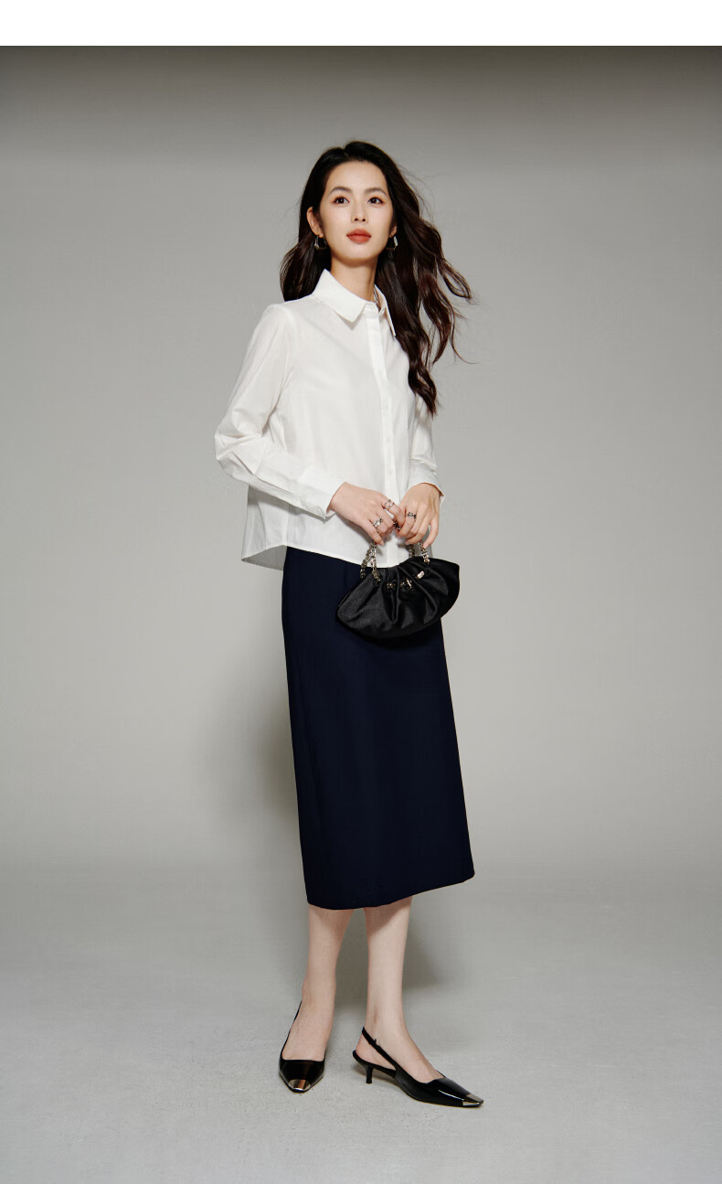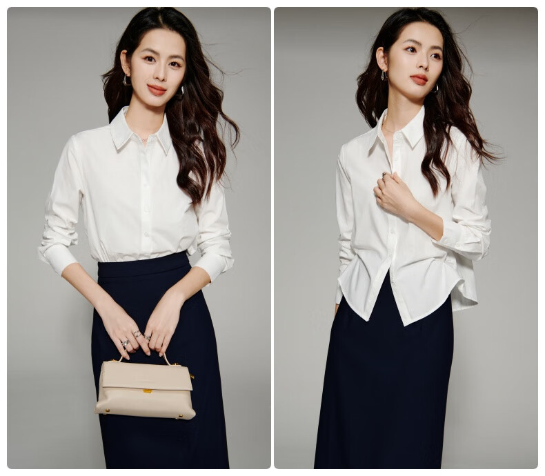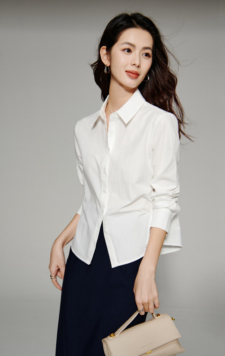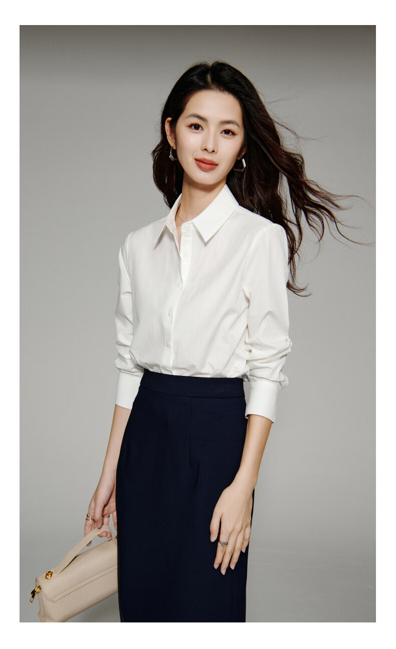 Late White New Product 2025 Autumn Style Workplace Commuting Shirt Casual Lapel Solid Color Shirt Women White S