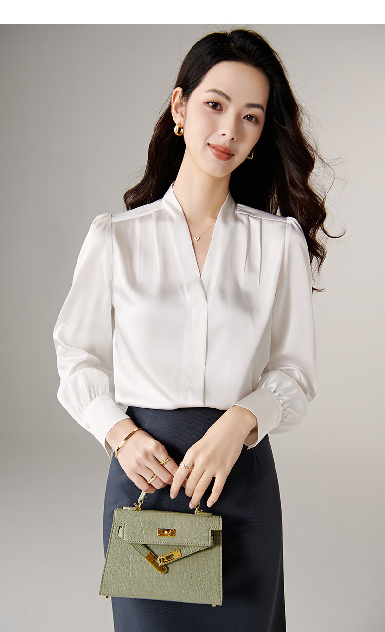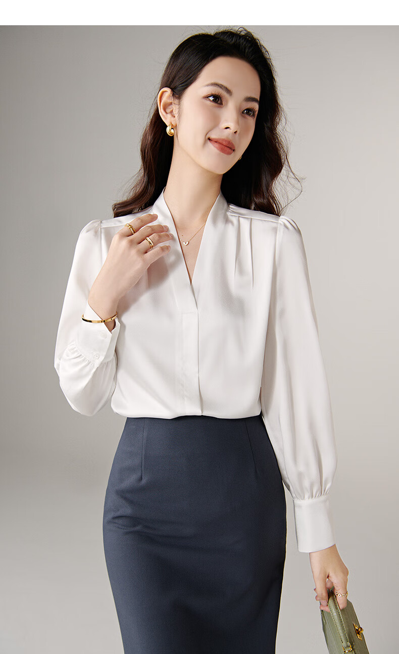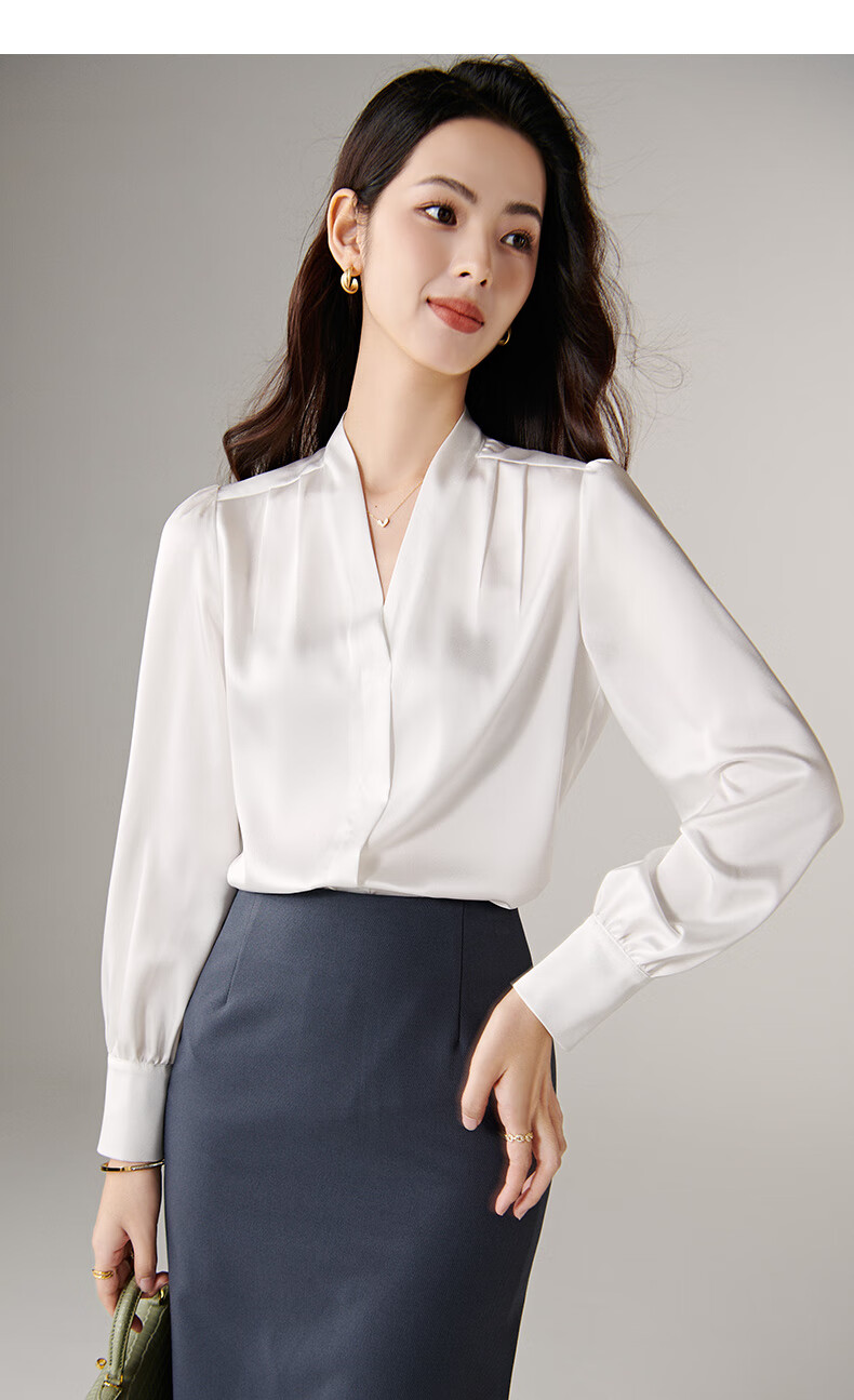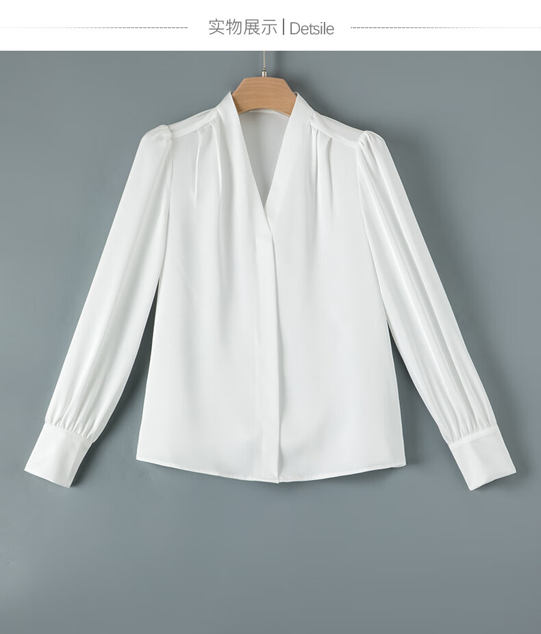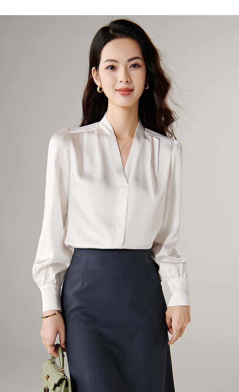 Late White New Product 2025 Autumn Casual Temperament Shirt Drape Skin Friendly V-Neck Elegant Commuting Shirt Women White S