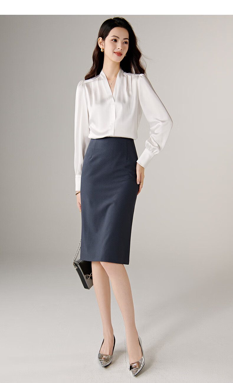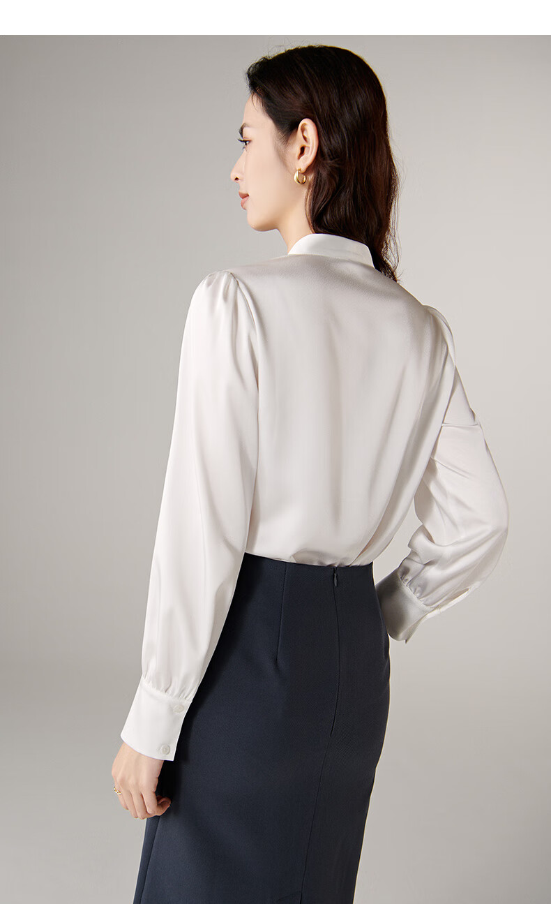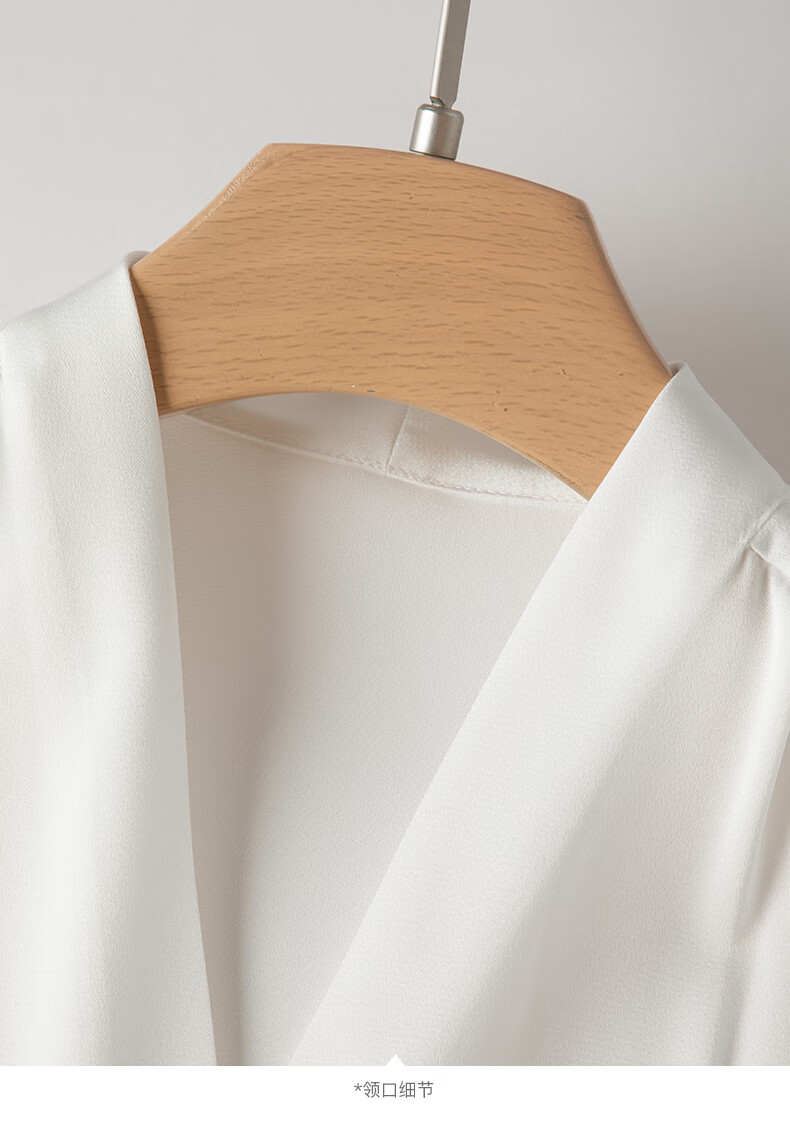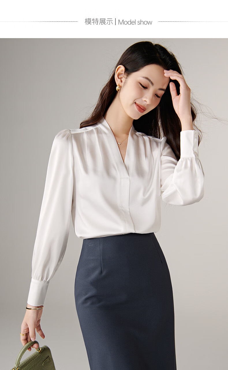 Late White New Product 2025 Autumn Casual Temperament Shirt Drape Skin Friendly V-Neck Elegant Commuting Shirt Women White S