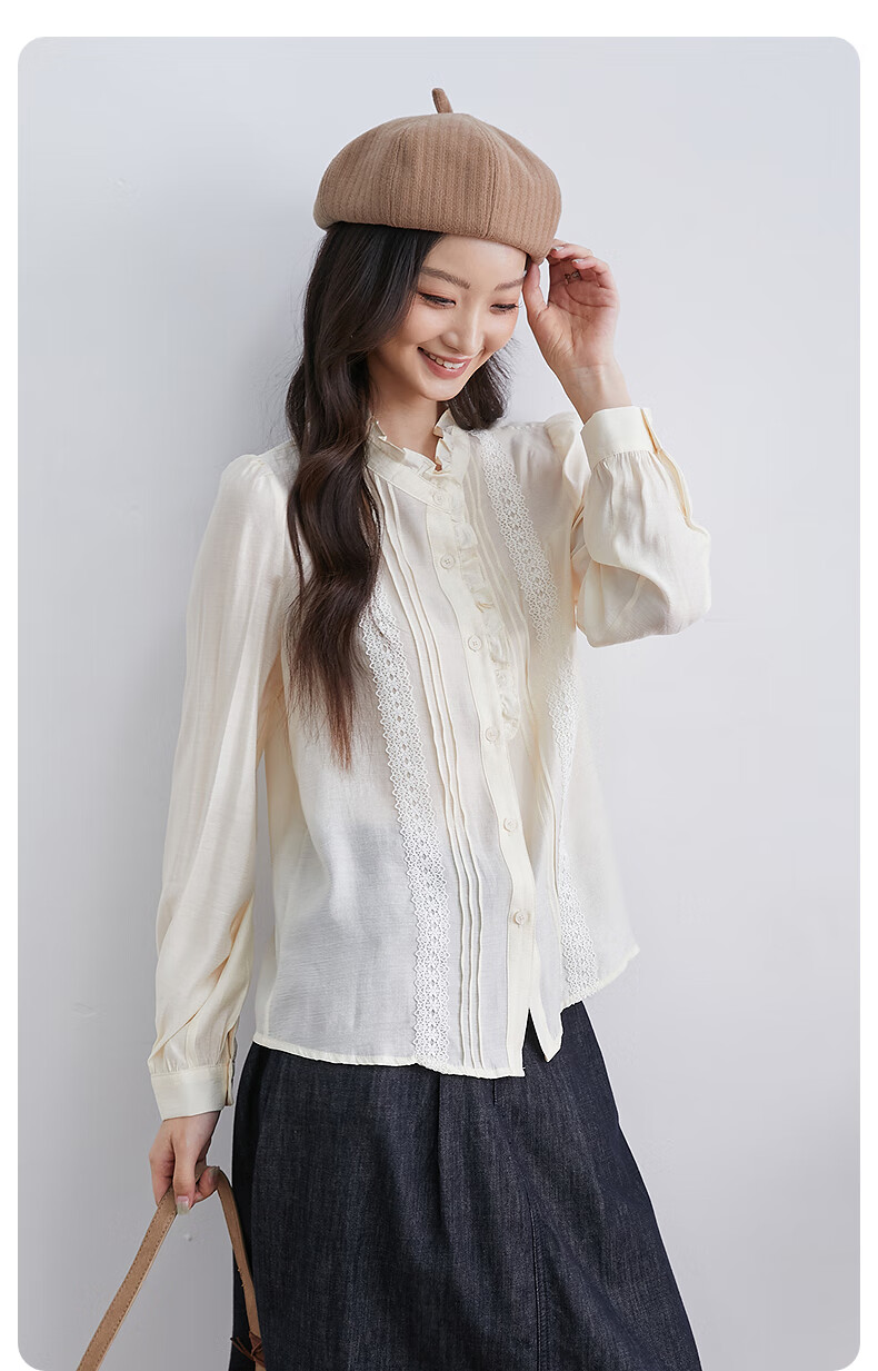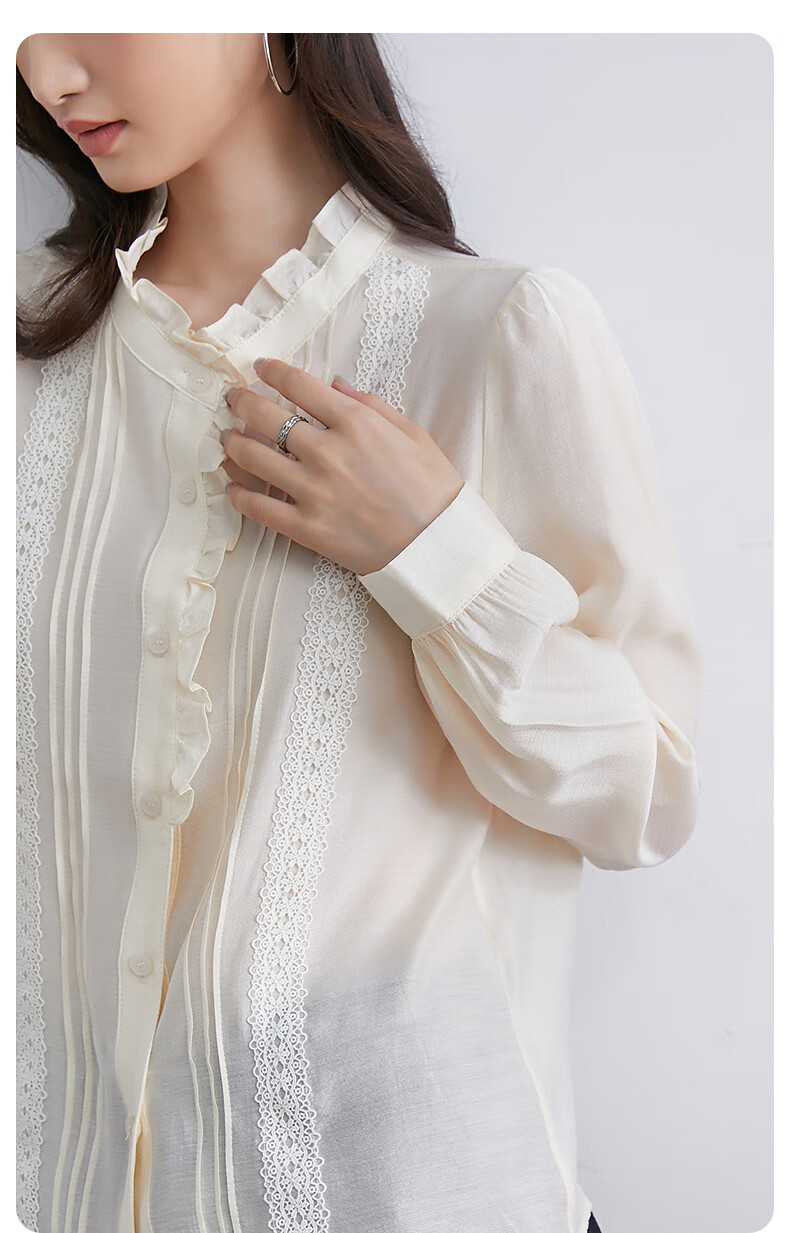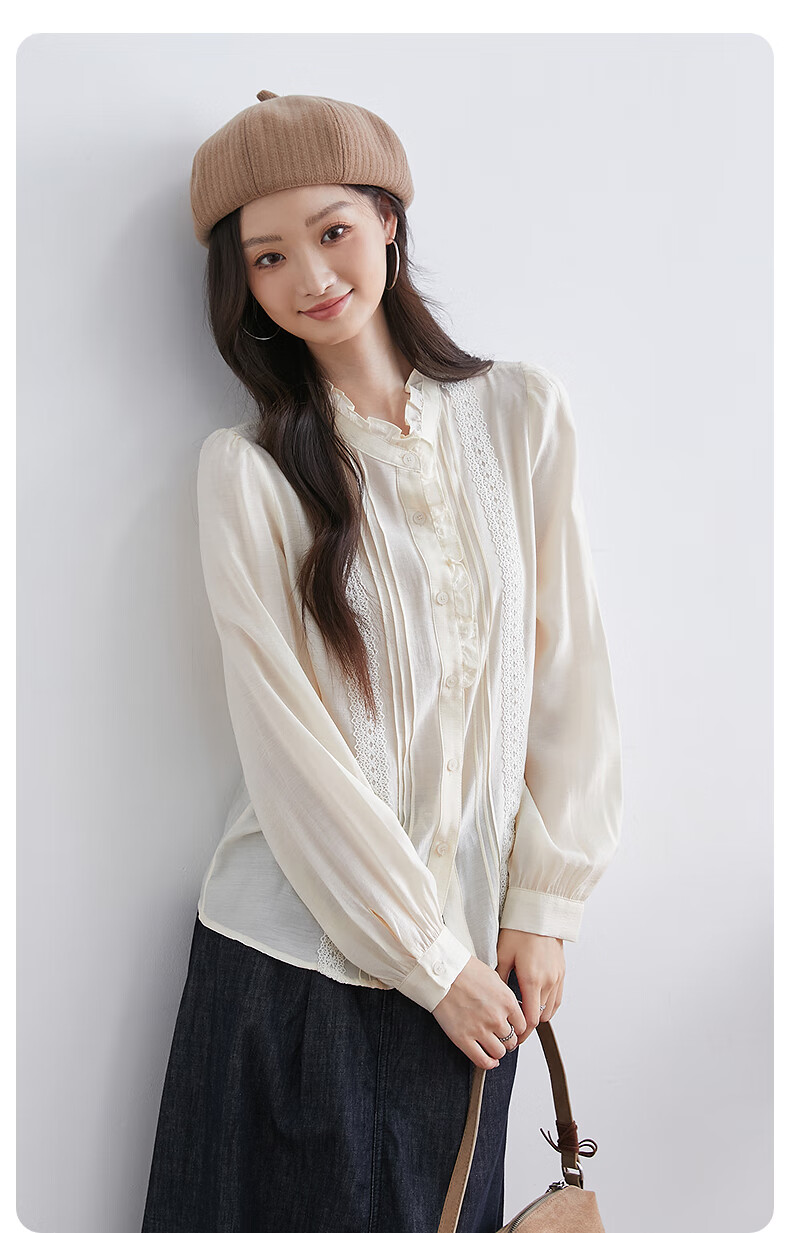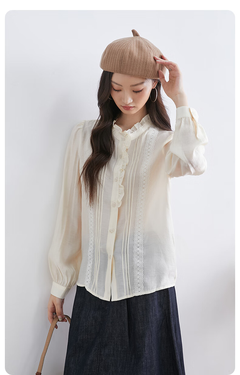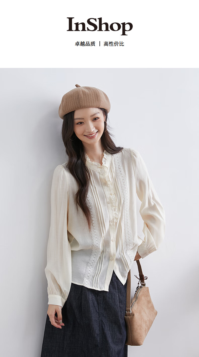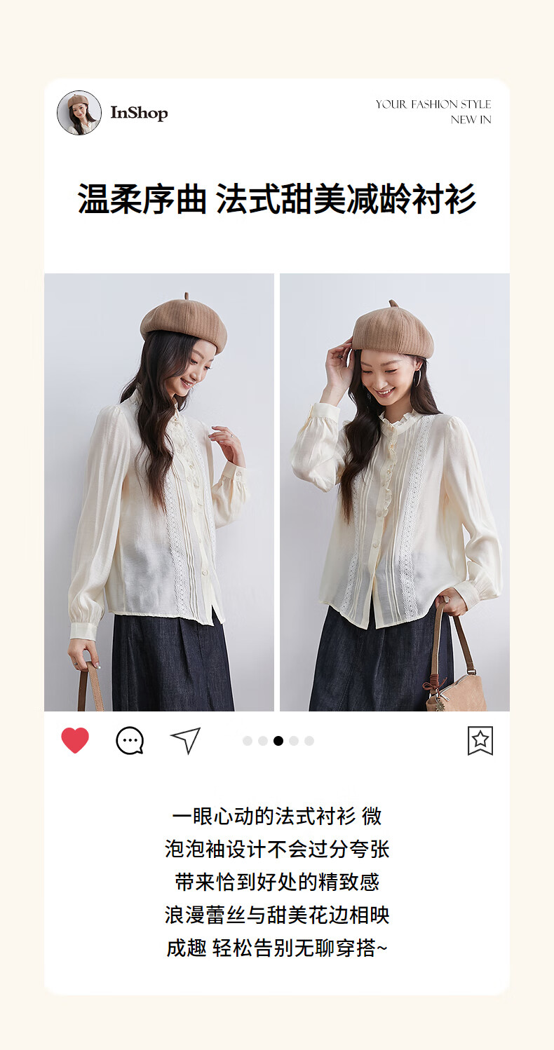 InShop mall same style new women's French micro puff sleeve shirt lace sweet temperament top apricot L