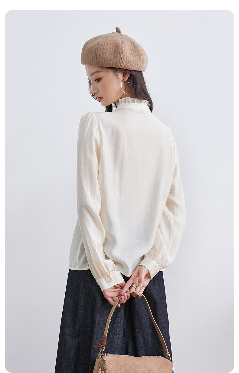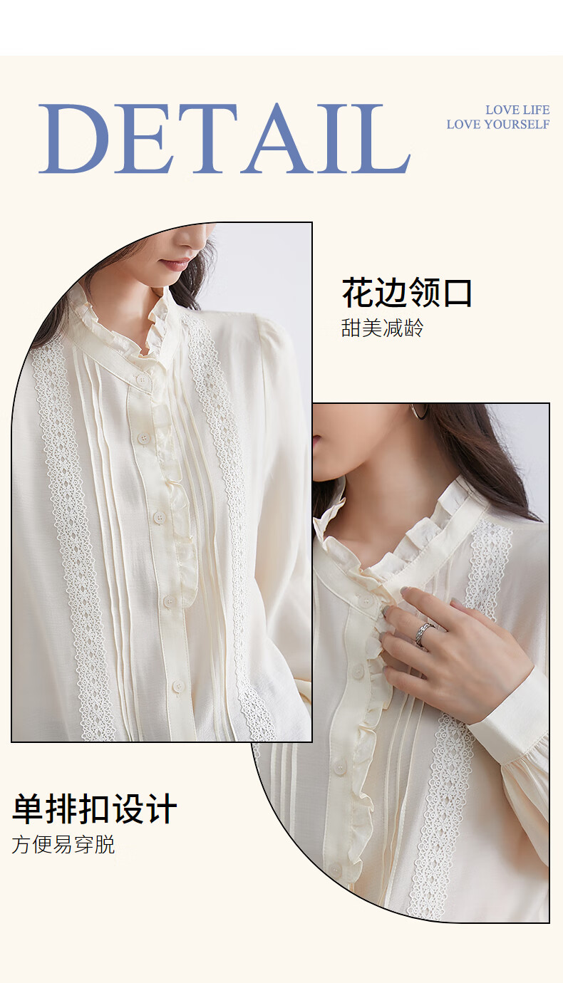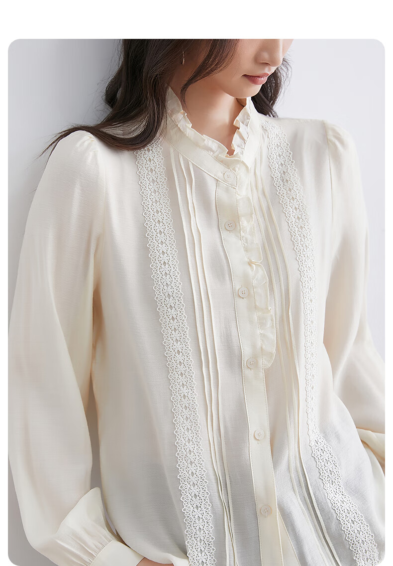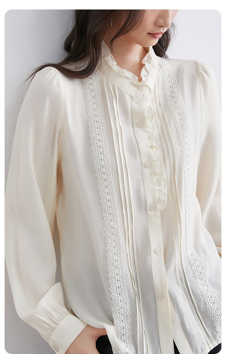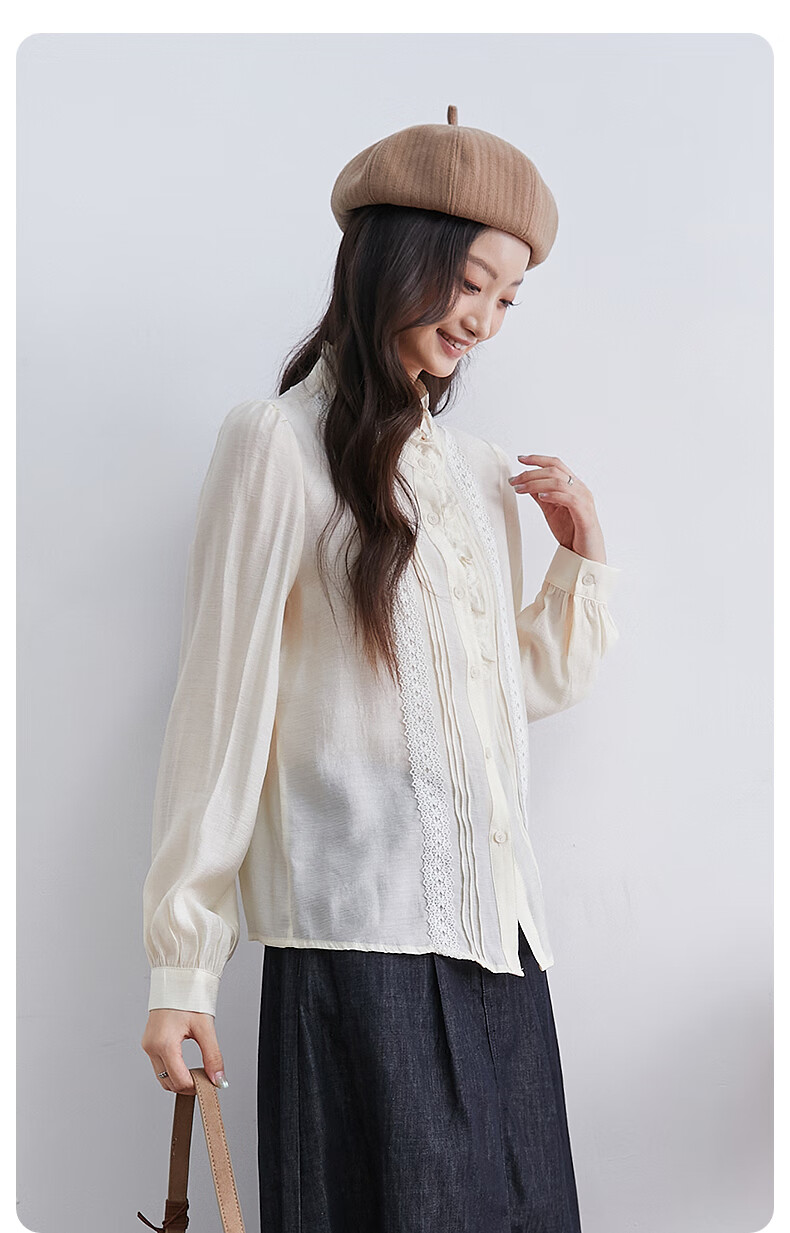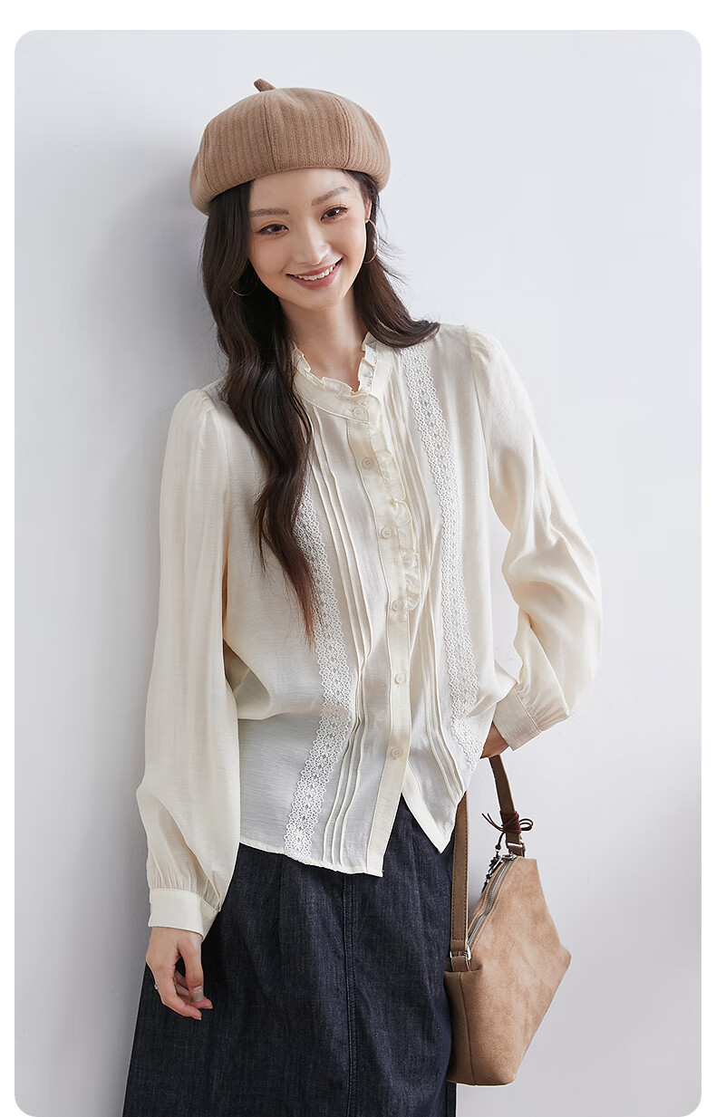 InShop mall same style new women's French micro puff sleeve shirt lace sweet temperament top apricot L