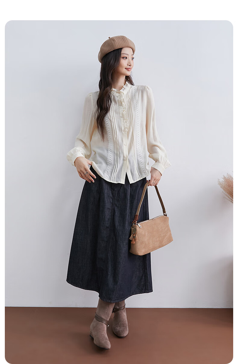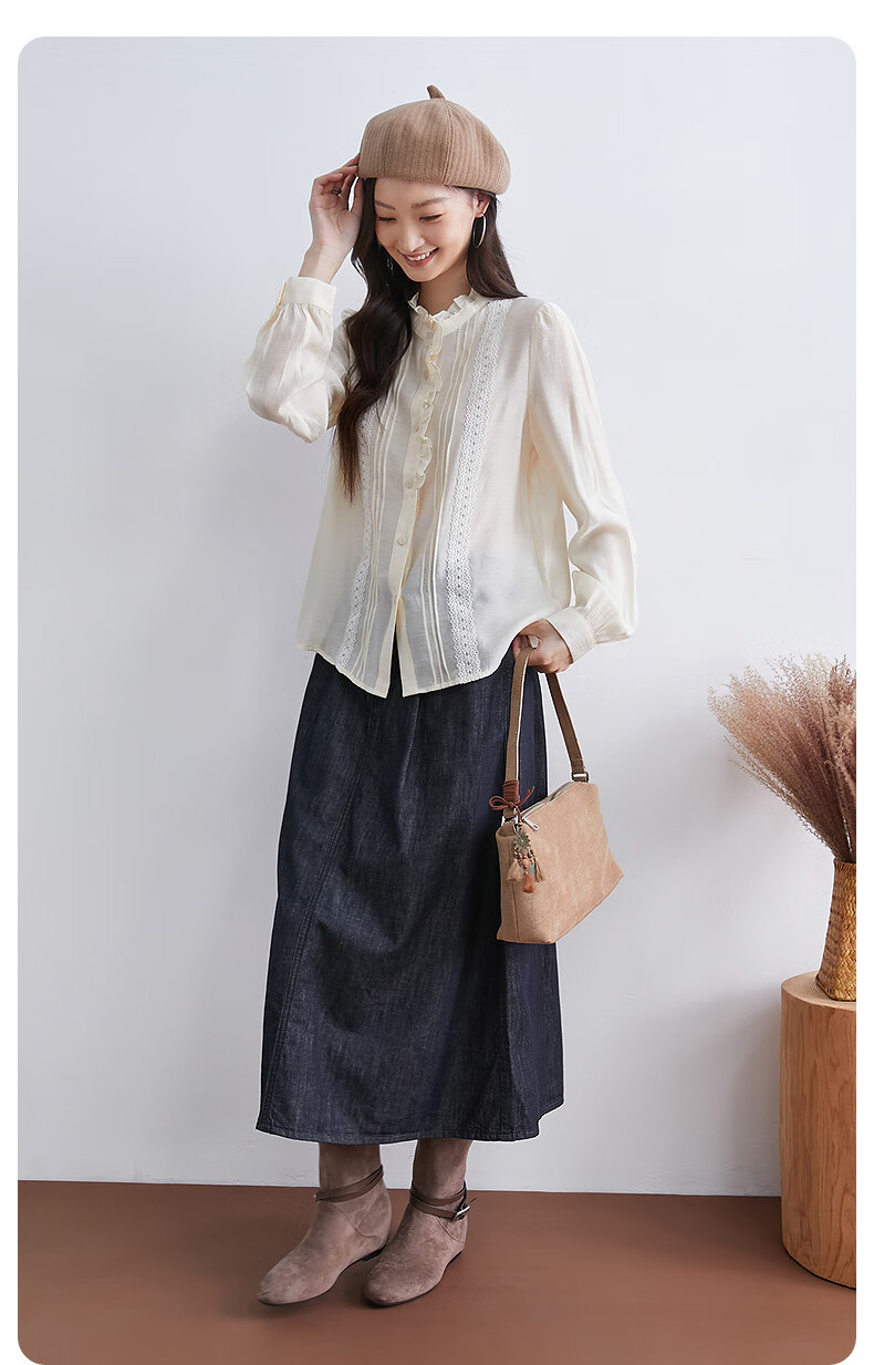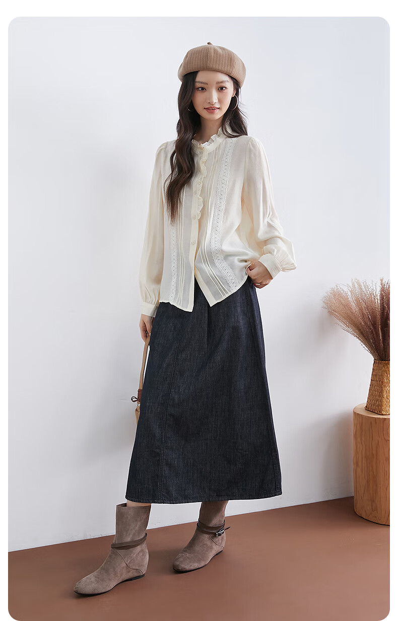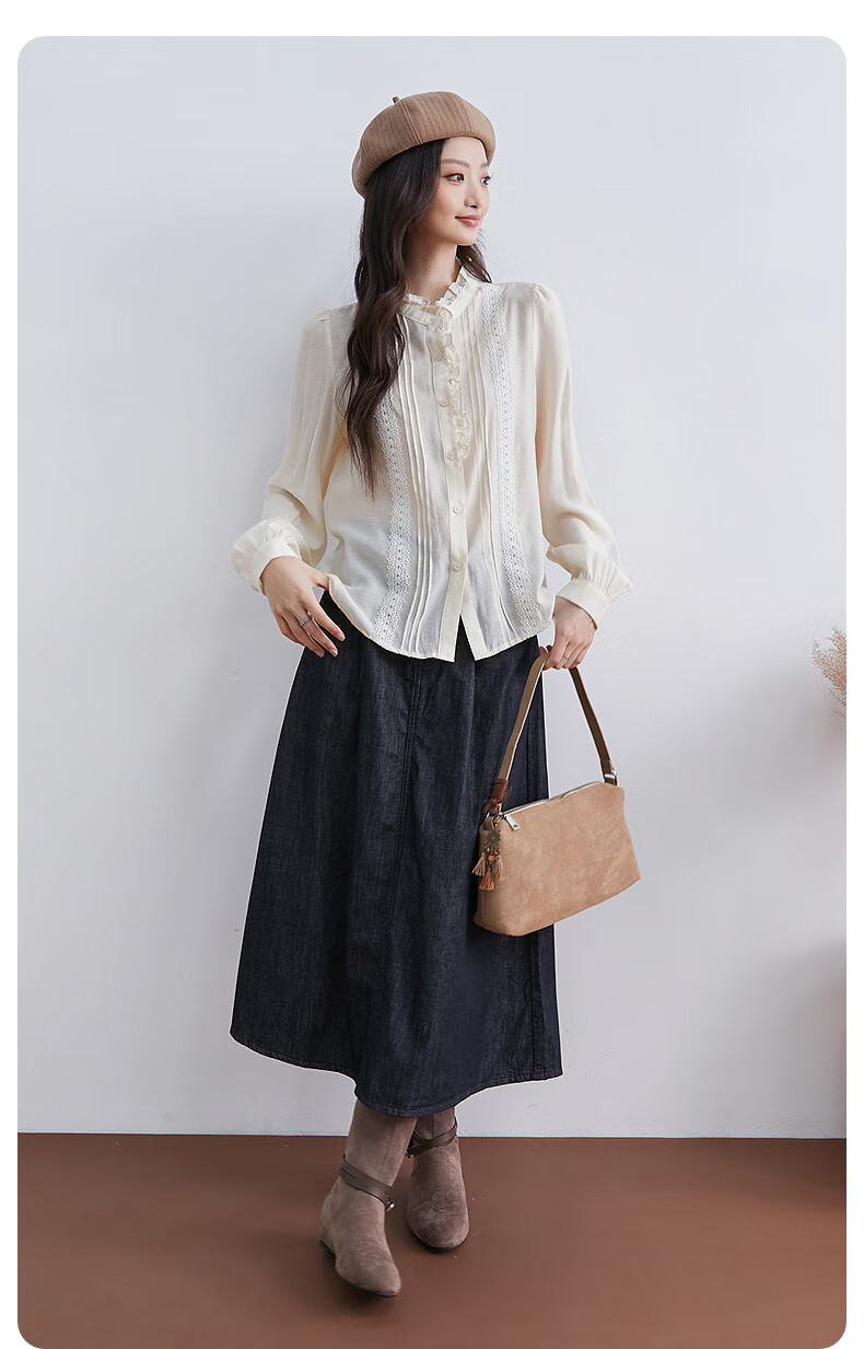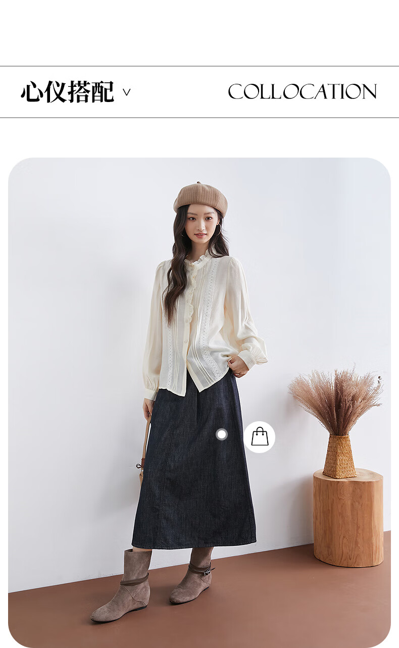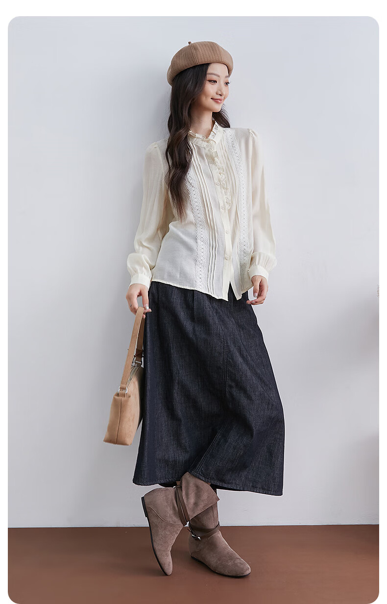 InShop mall same style new women's French micro puff sleeve shirt lace sweet temperament top apricot L