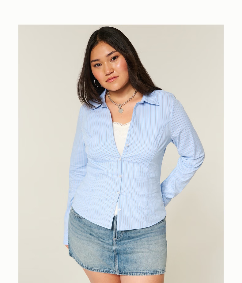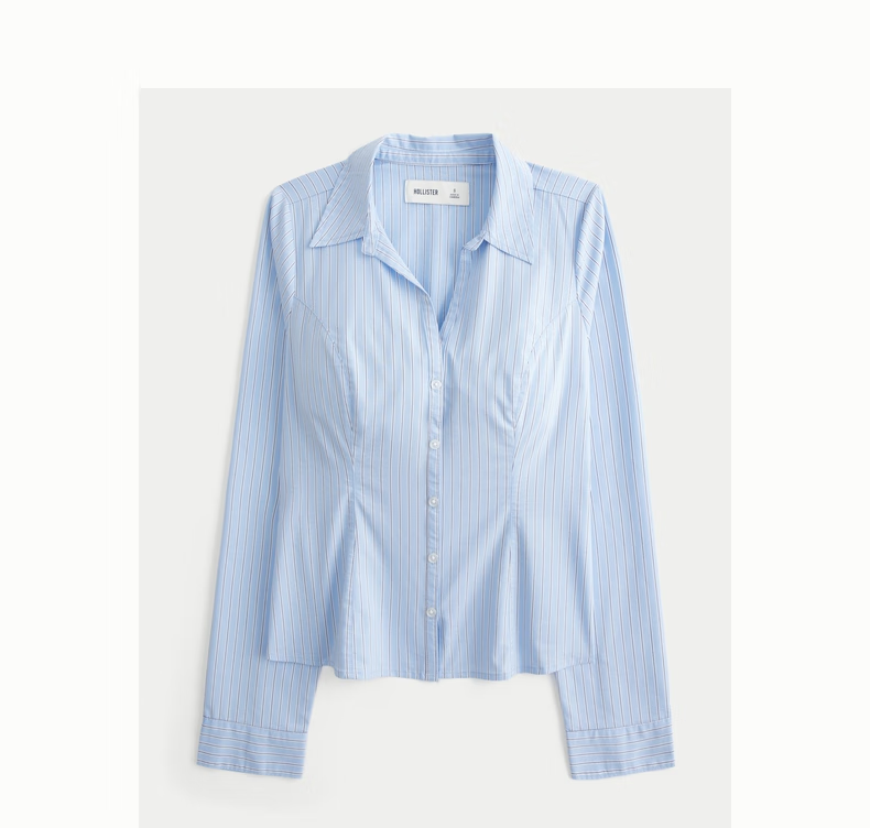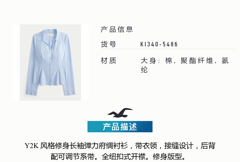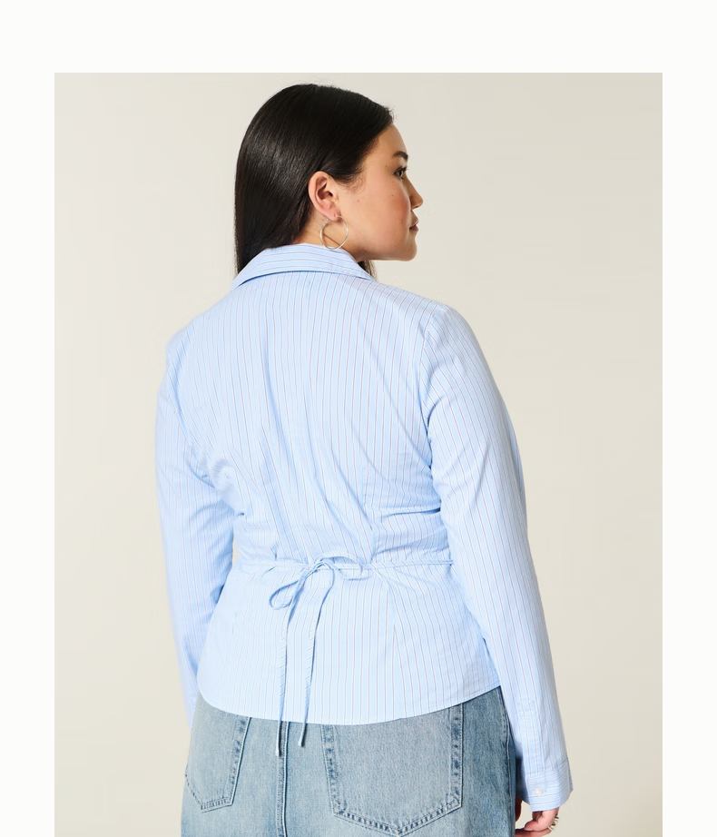 HOLLISTER25 new autumn and winter Y2K hot girl slim striped lace-up poplin shirt women's 340-5486 blue striped XS (160/80A)