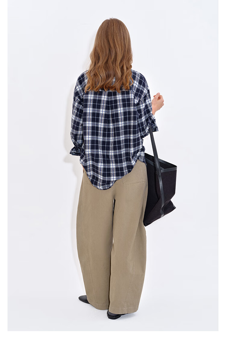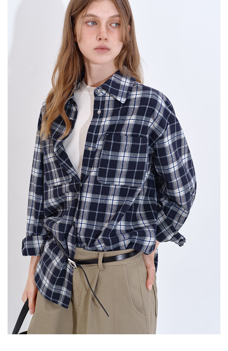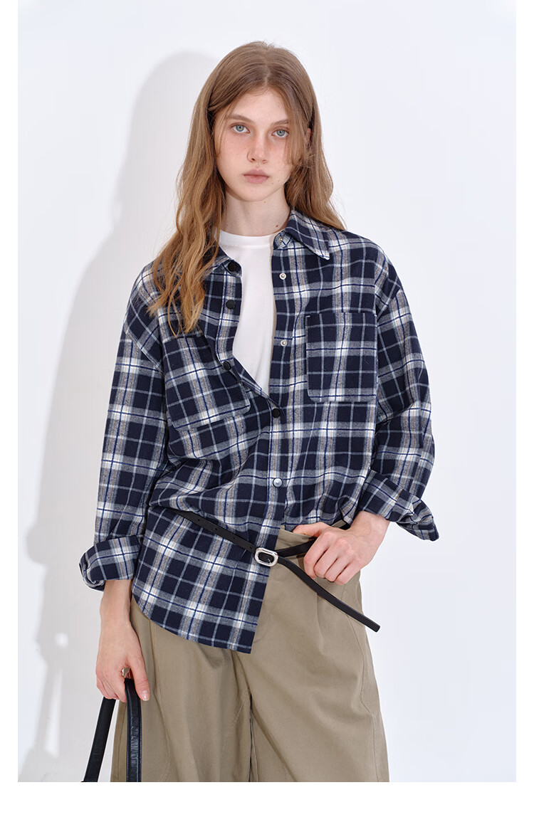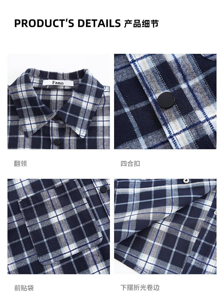 Fano studios Fan Luo Fano casual and versatile brushed yarn-dyed plaid contrasting color set four-button relaxed shirt women's top blue and white plaid ready stock L
