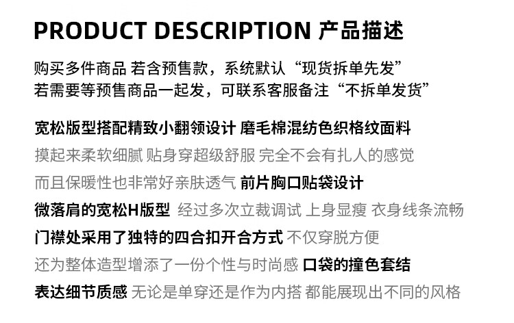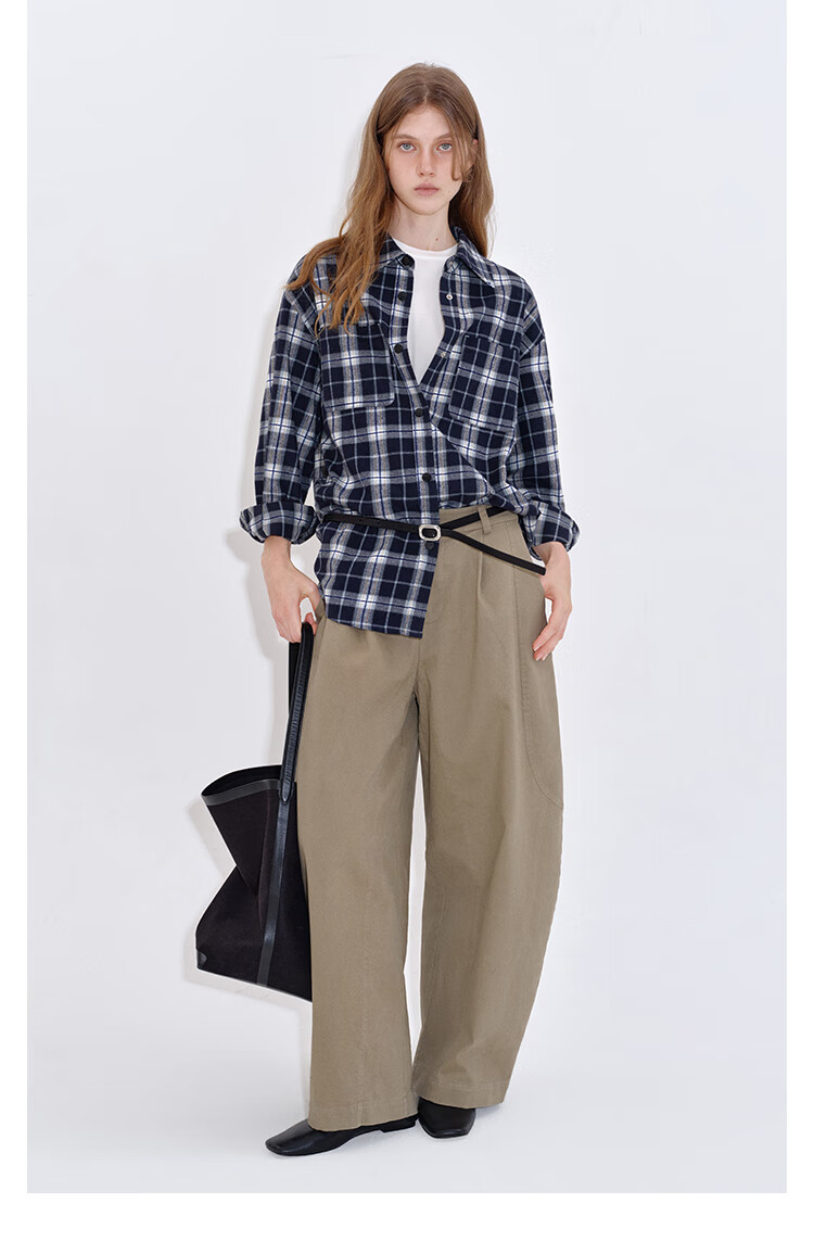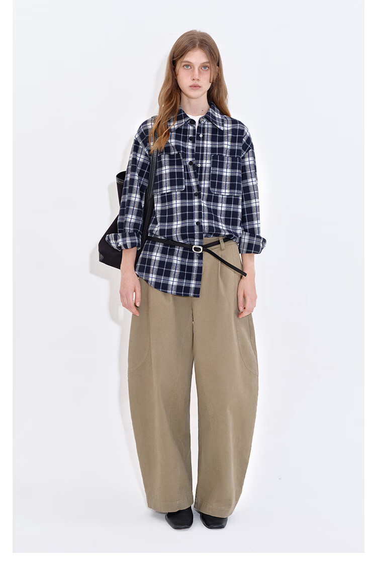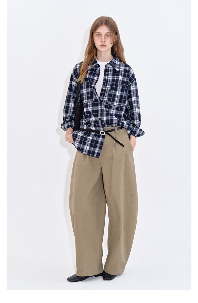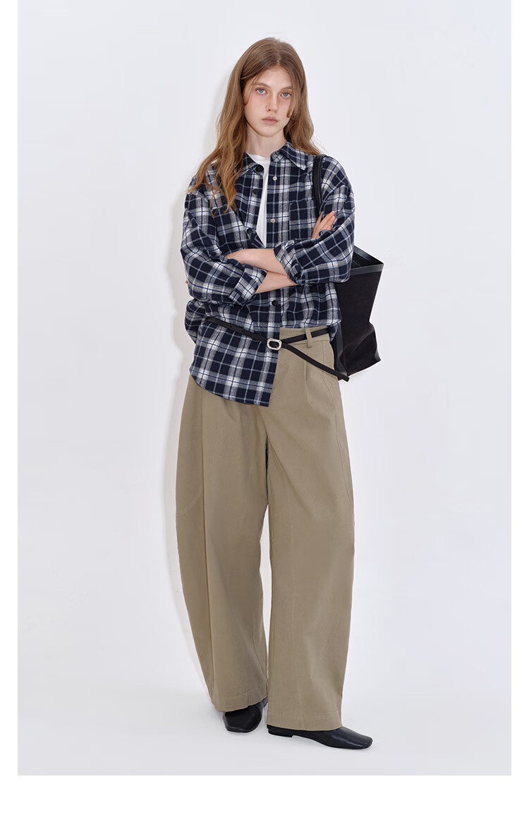 Fano studios Fan Luo Fano casual and versatile brushed yarn-dyed plaid contrasting color set four-button relaxed shirt women's top blue and white plaid ready stock L