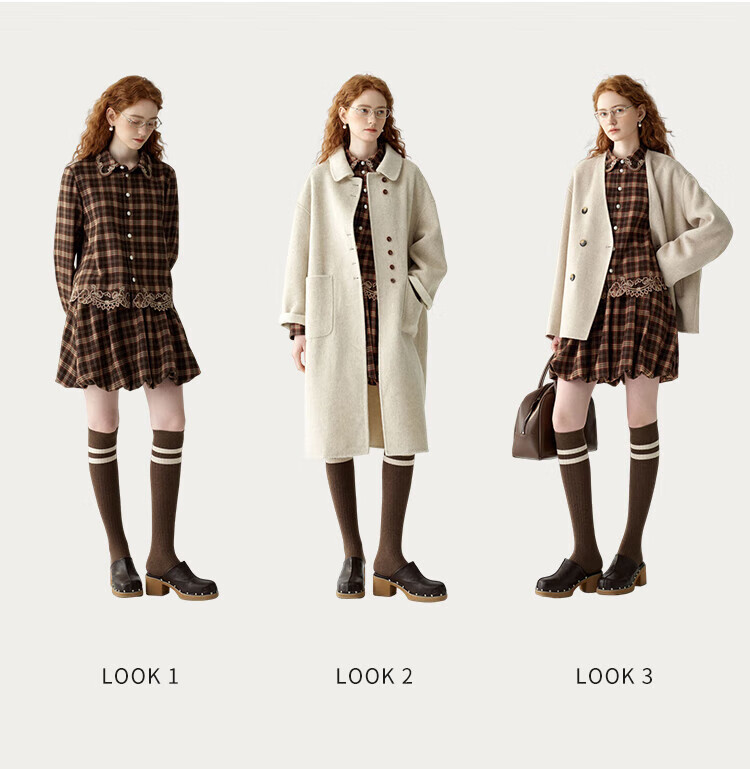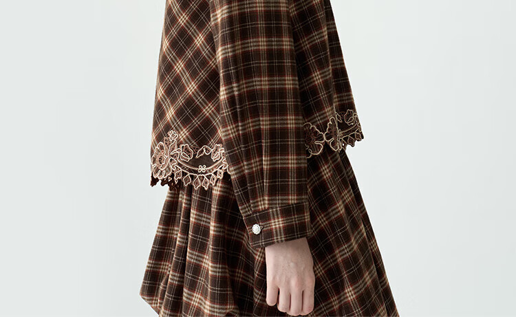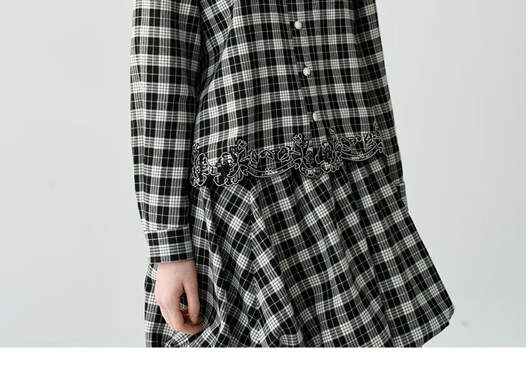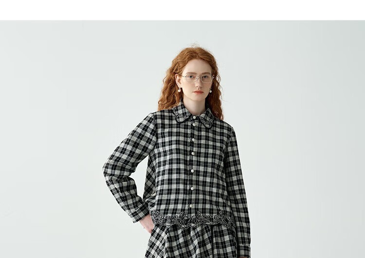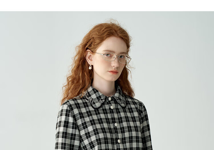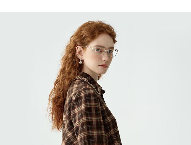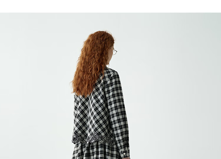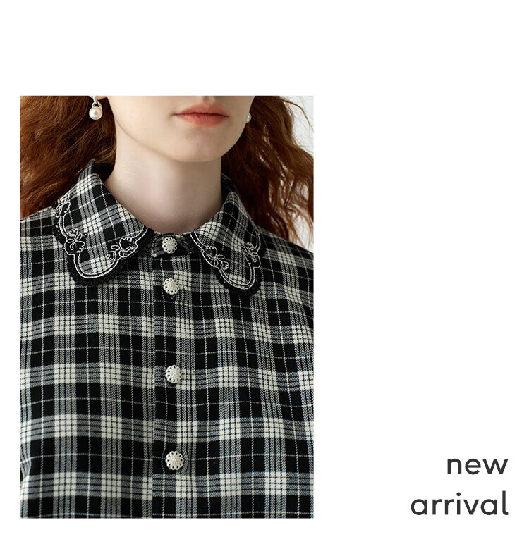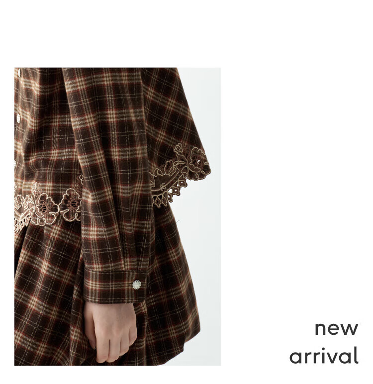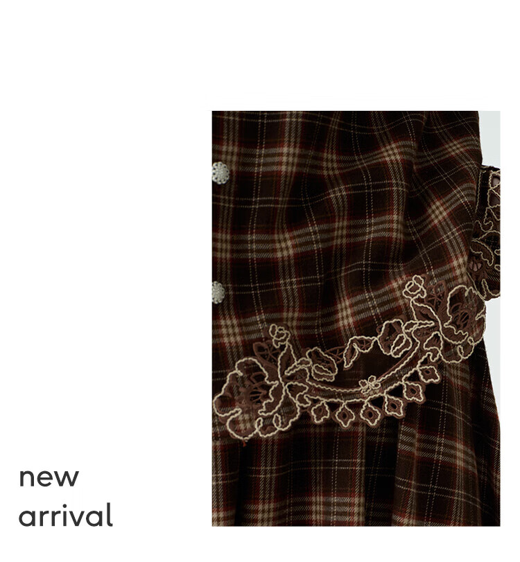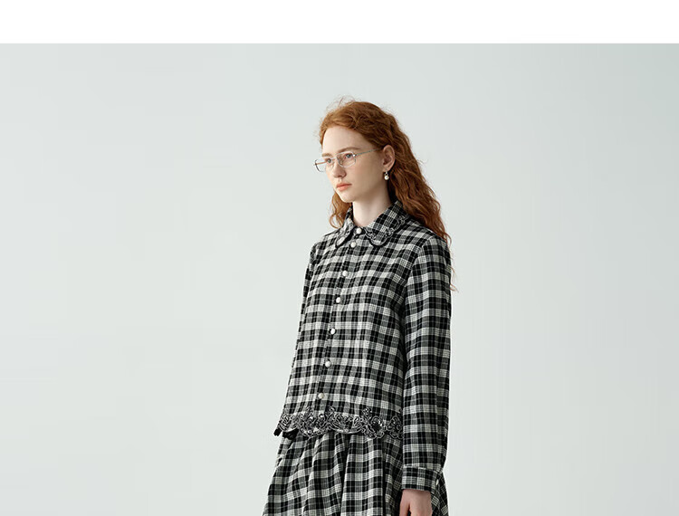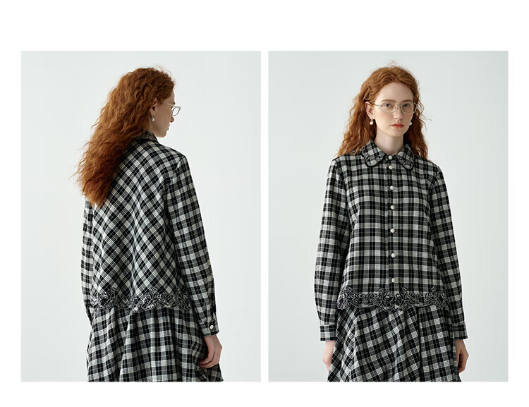 PLAIN PEOPLE Bath style retro college plaid lace webbing shirt top women 2025 winter new style coffee color S