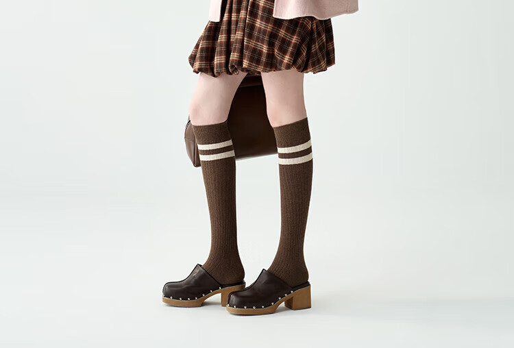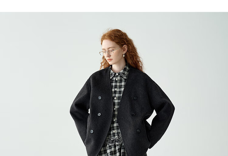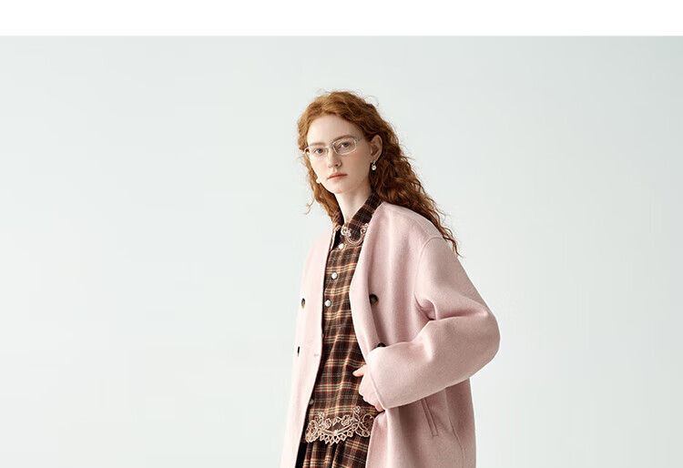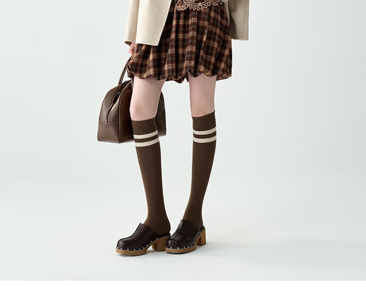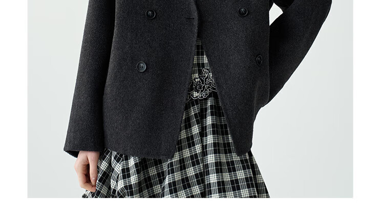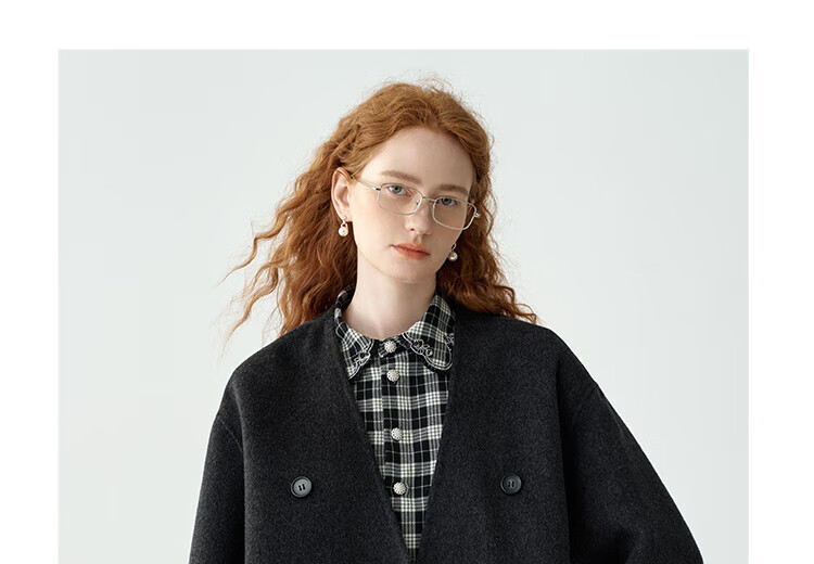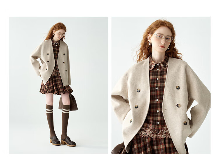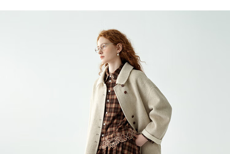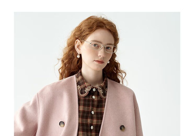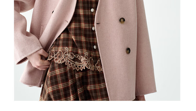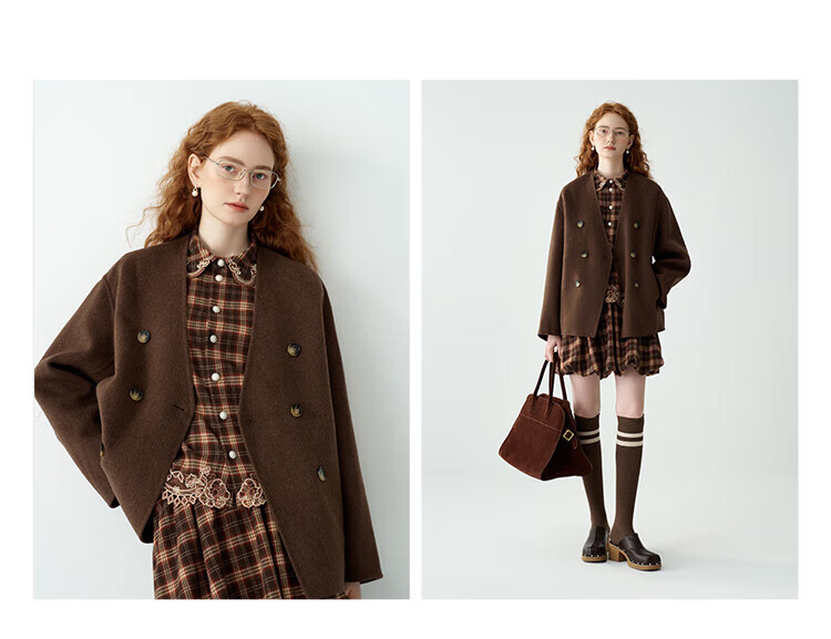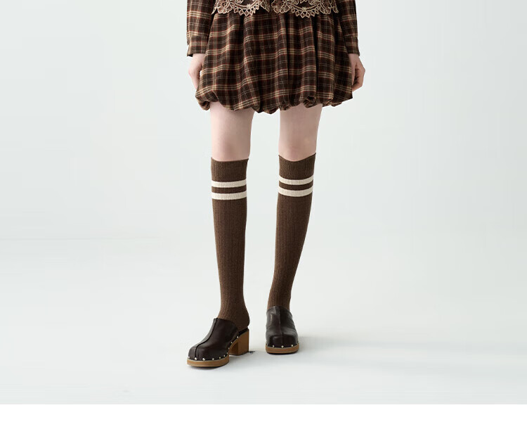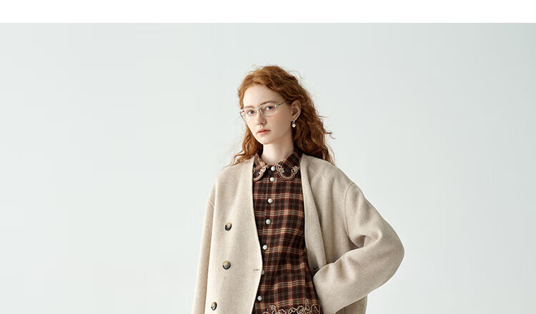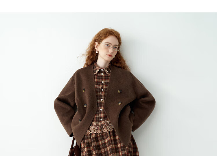 PLAIN PEOPLE Bath style retro college plaid lace webbing shirt top women 2025 winter new style coffee color S
