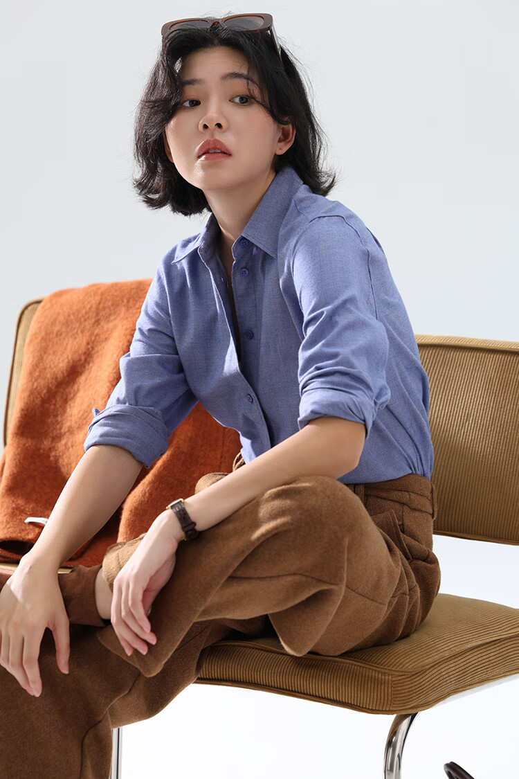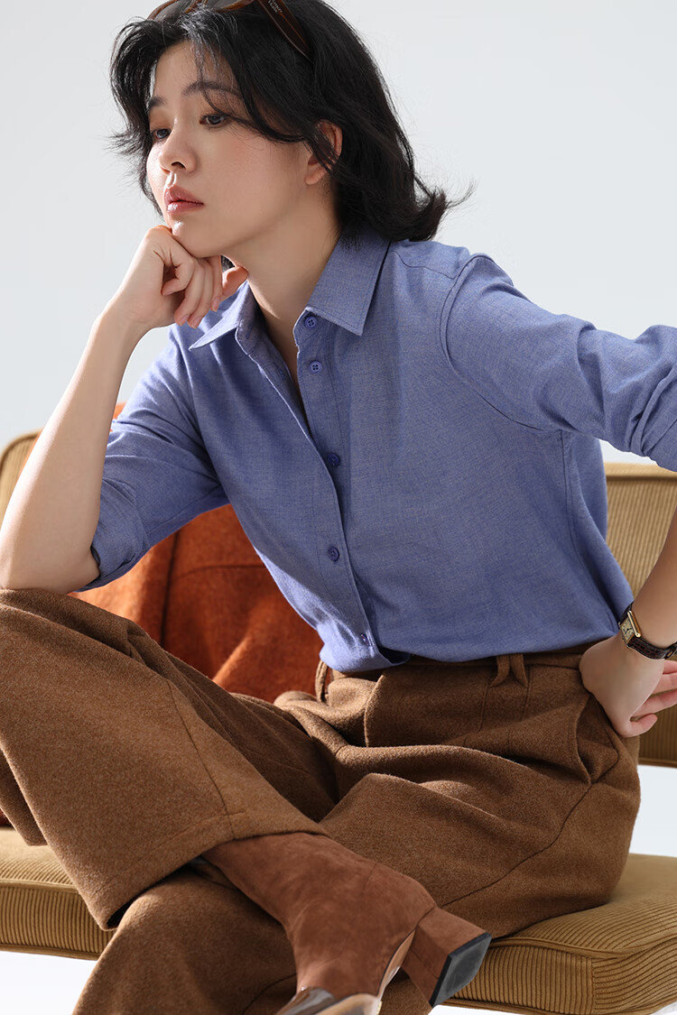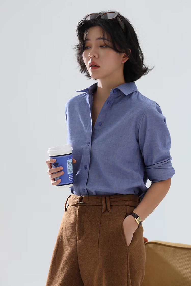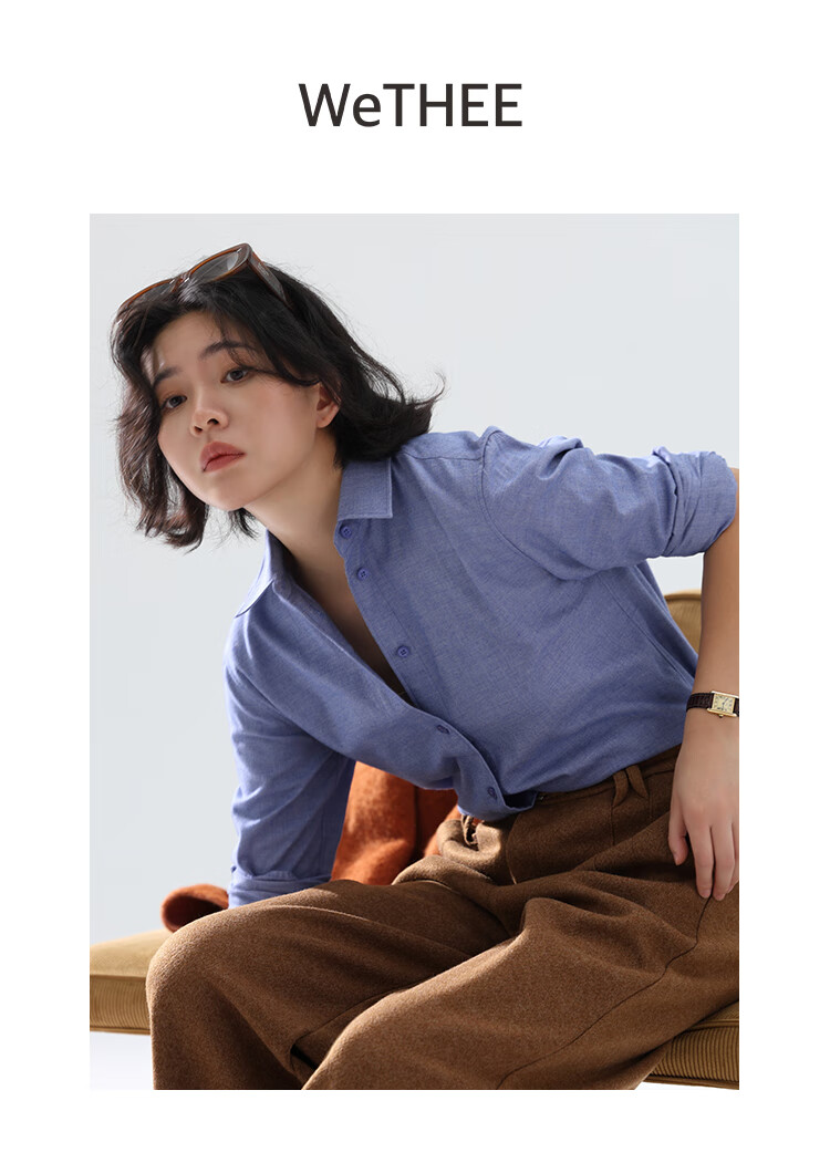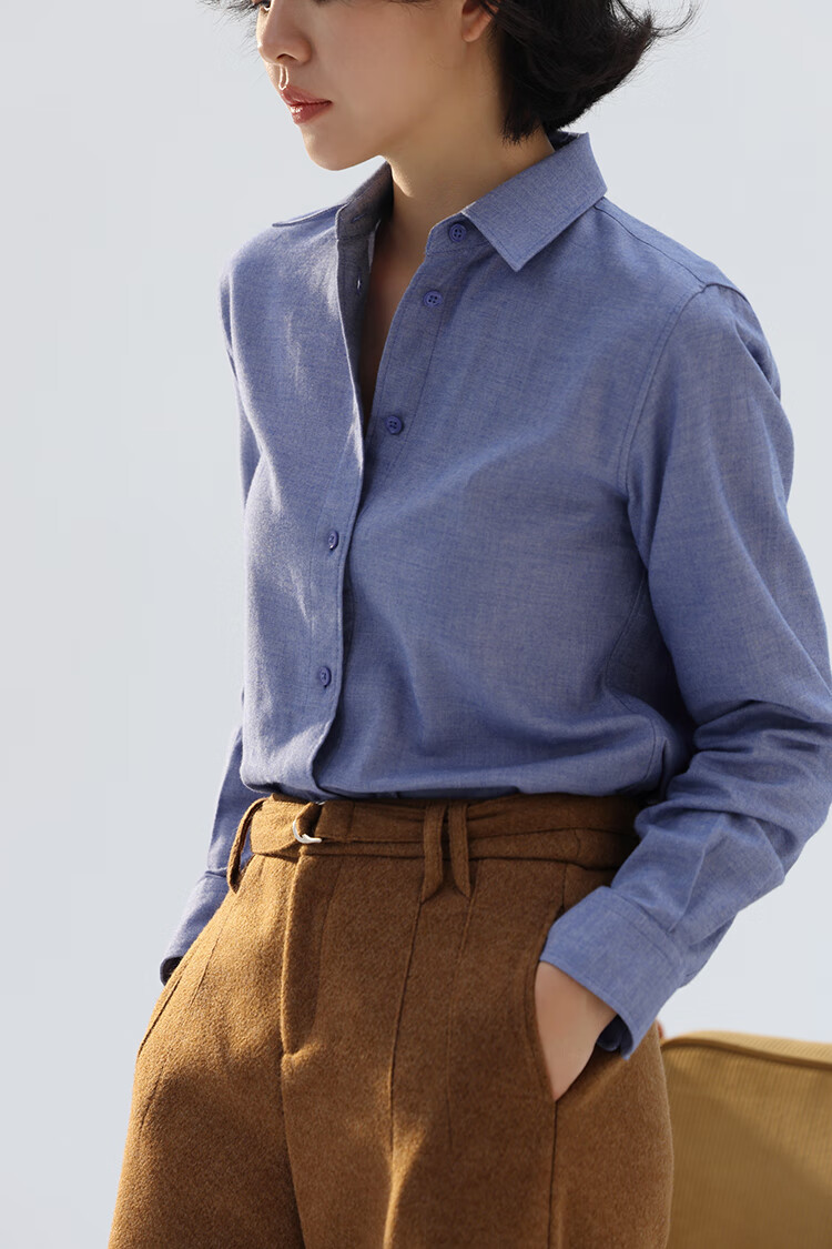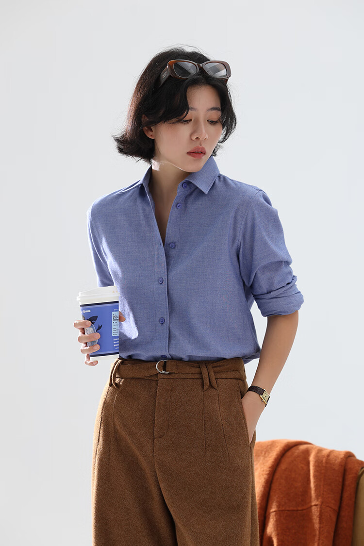 Xingzhi WeTHEE practical single product that is not cool, double-sided brushed floral yarn soft right shoulder narrow sleeve commuter shirt winter blue M