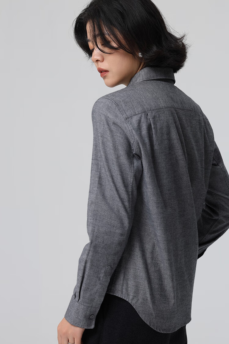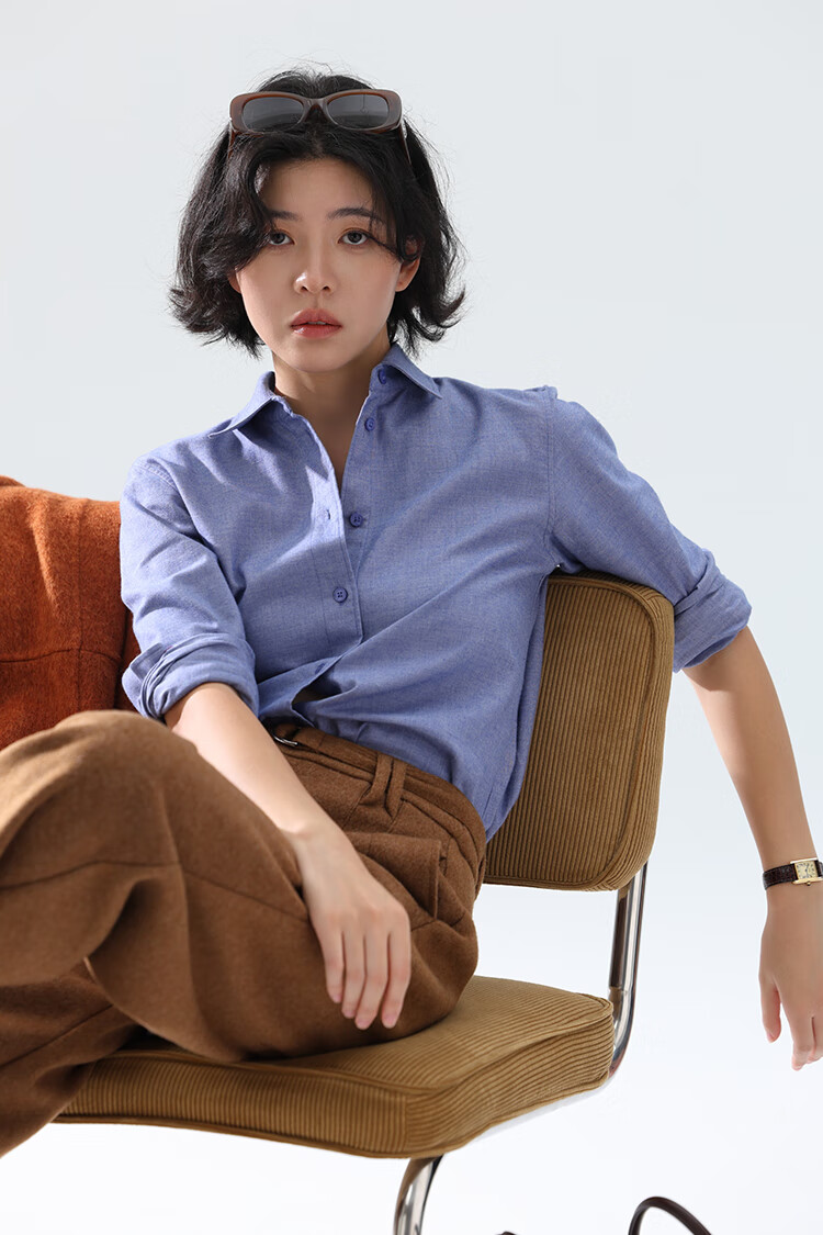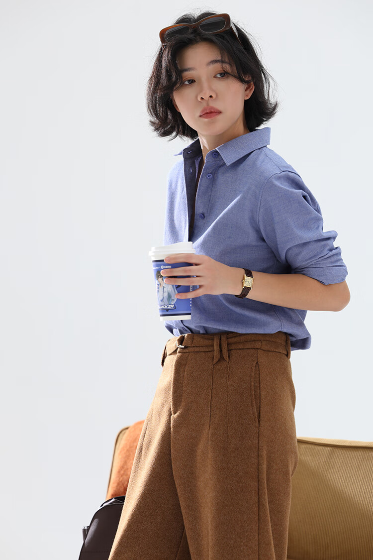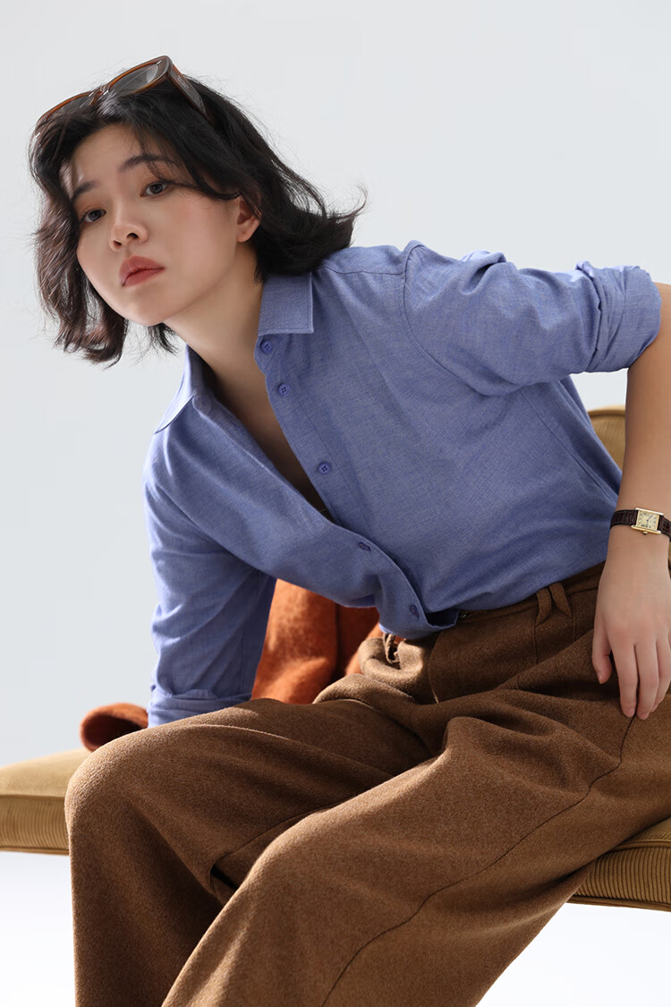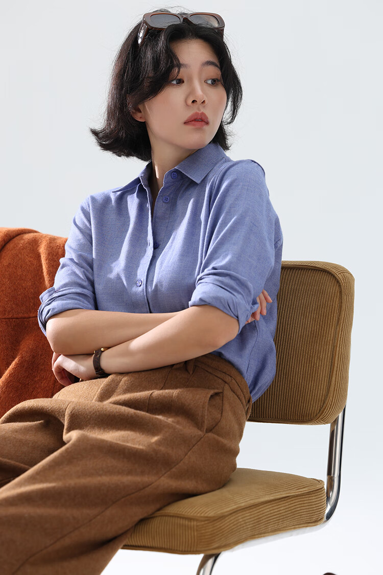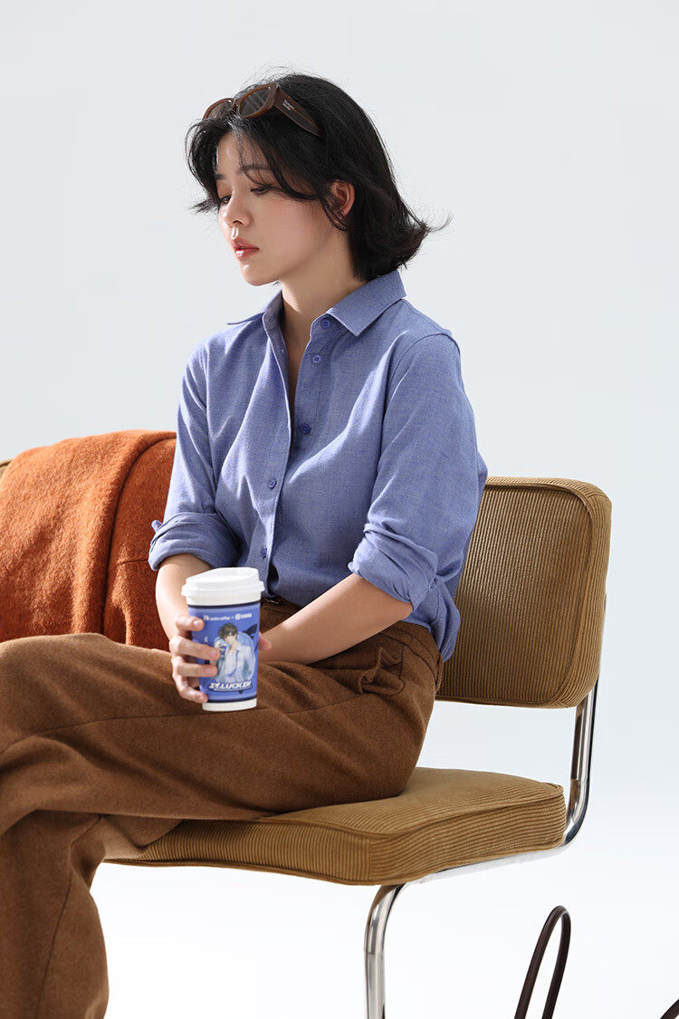 Xingzhi WeTHEE practical single product that is not cool, double-sided brushed floral yarn soft right shoulder narrow sleeve commuter shirt winter blue M