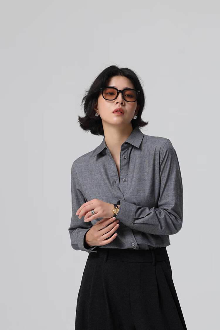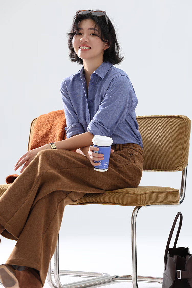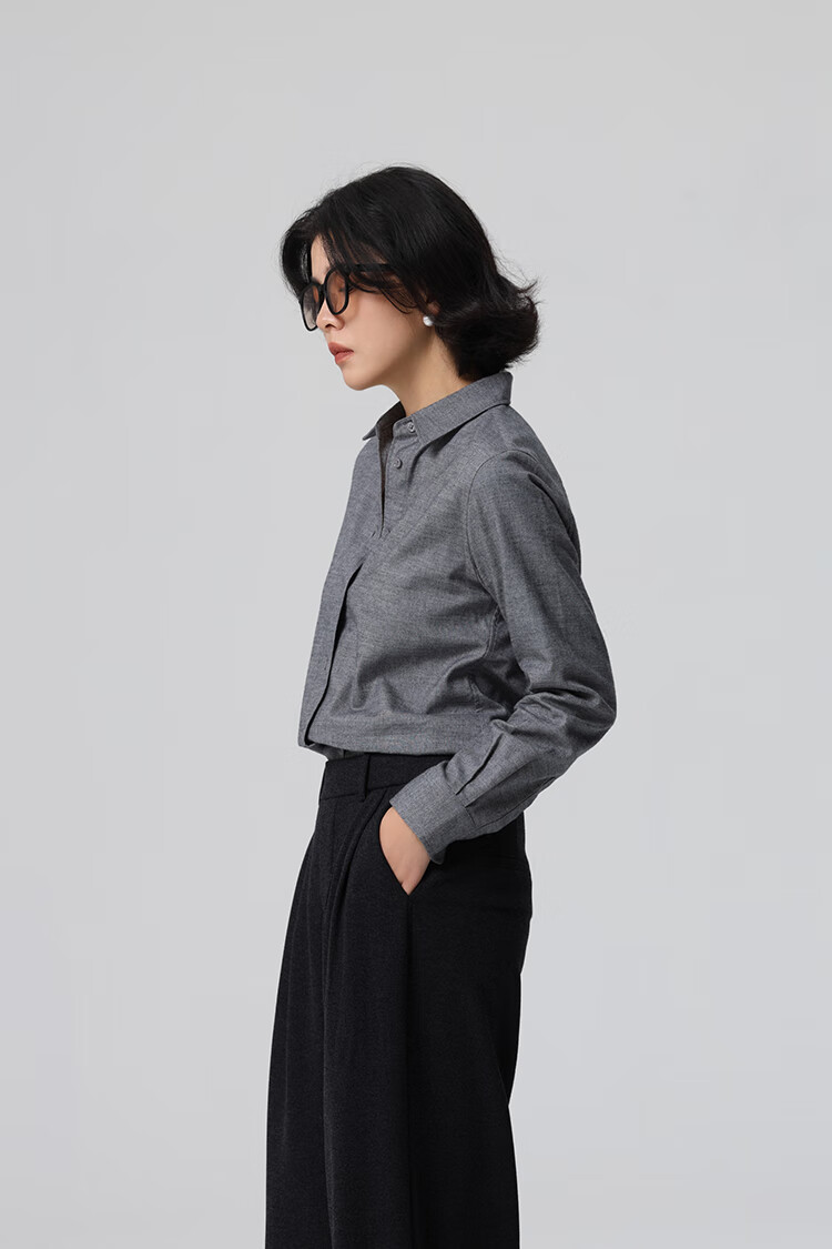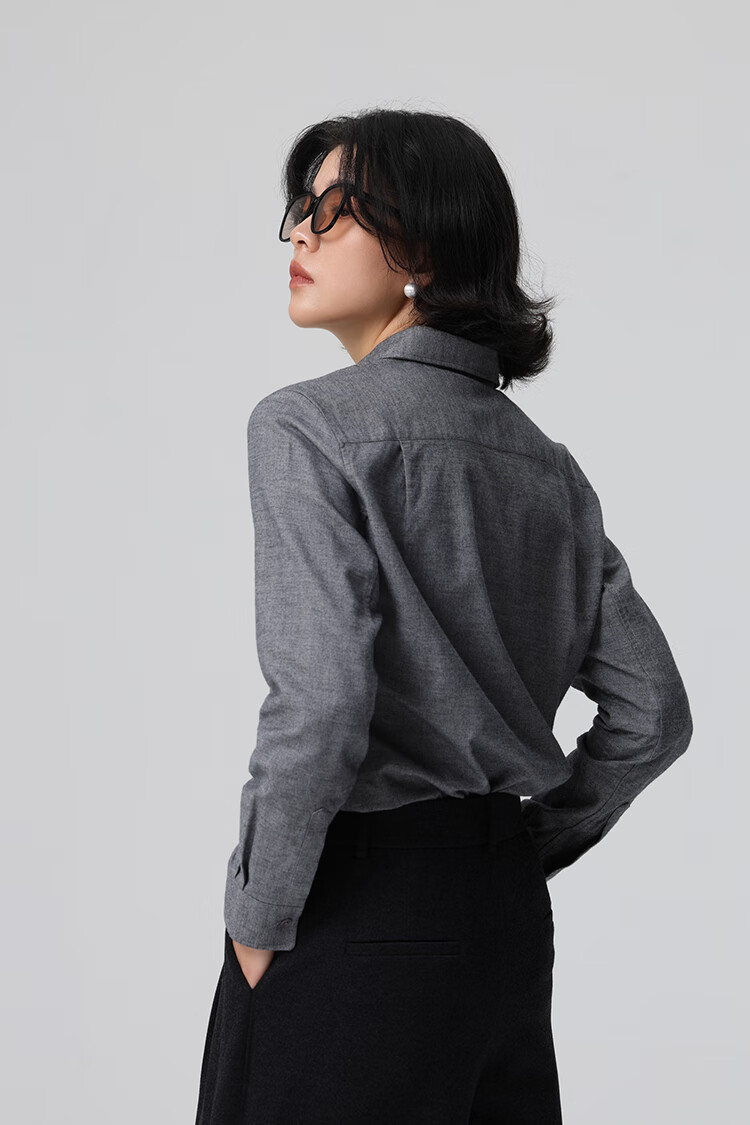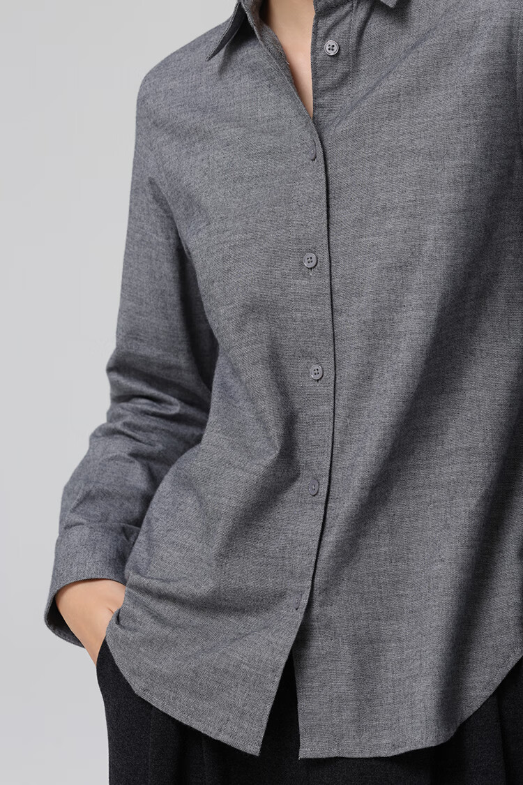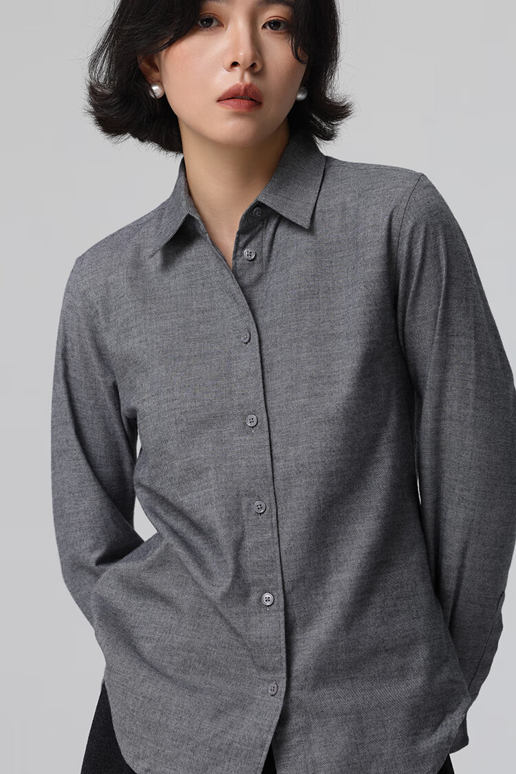 Xingzhi WeTHEE practical single product that is not cool, double-sided brushed floral yarn soft right shoulder narrow sleeve commuter shirt winter blue M
