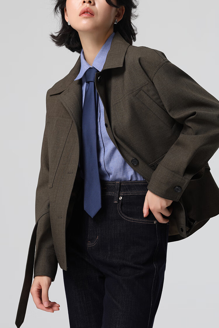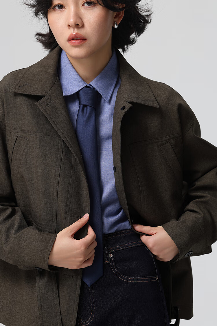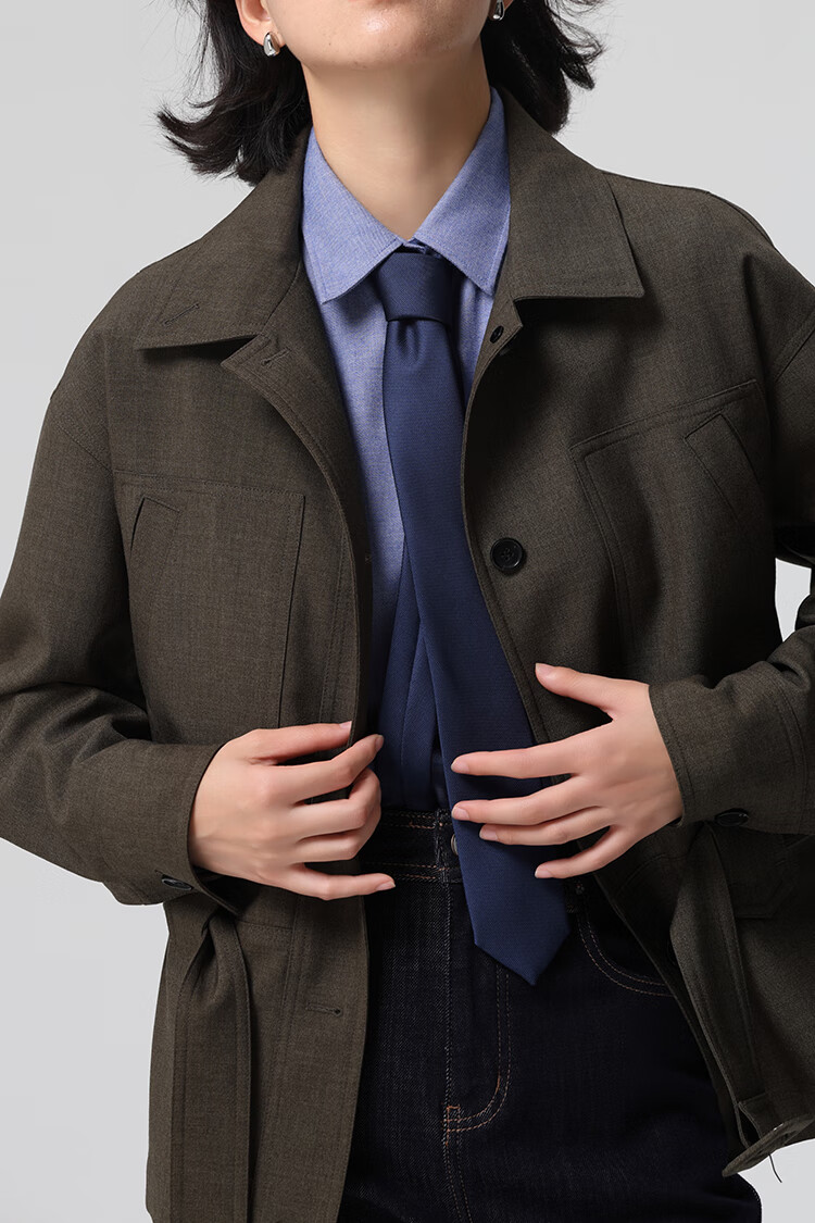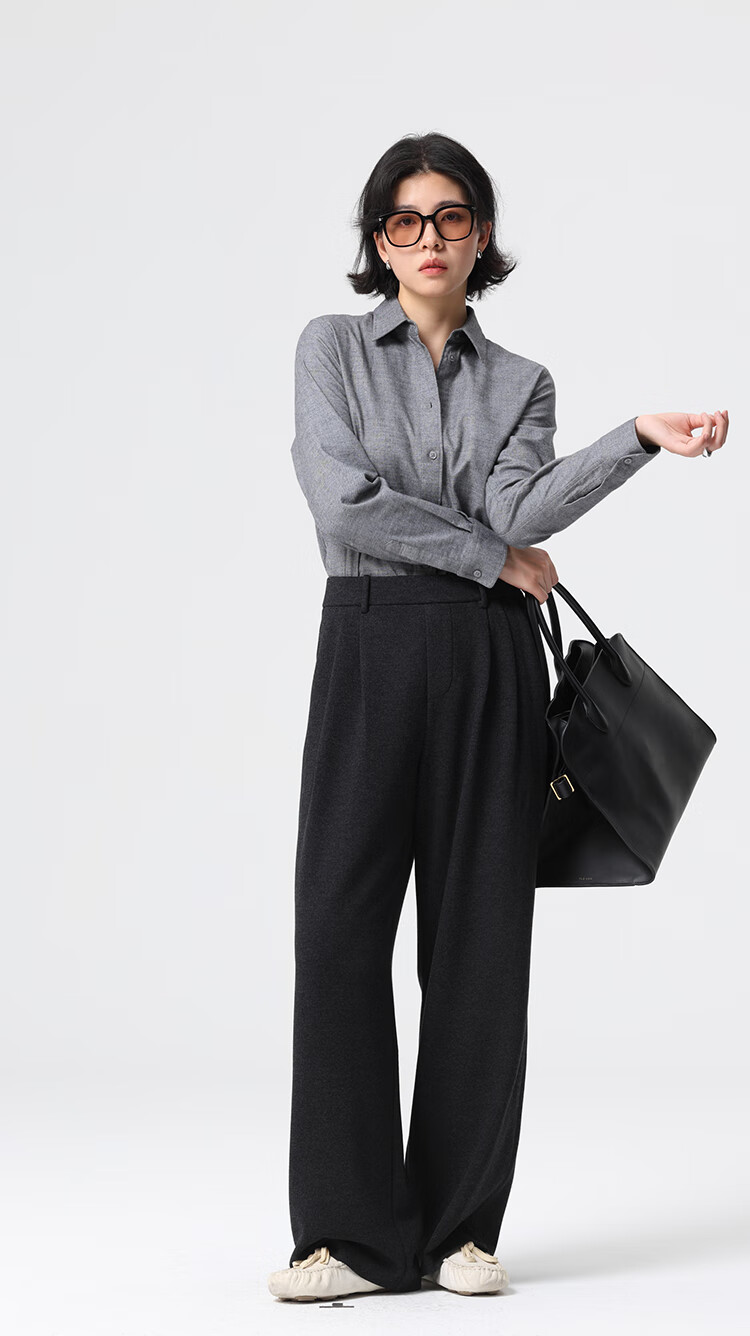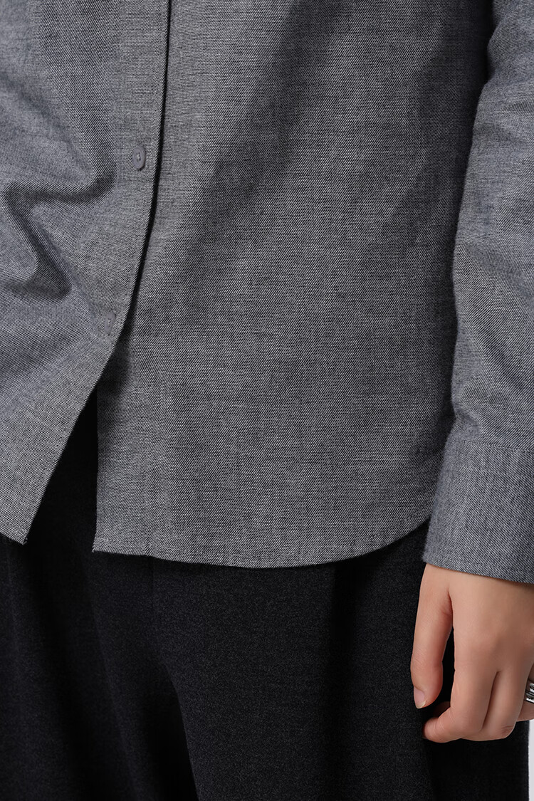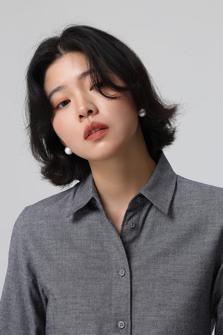 Xingzhi WeTHEE practical single product that is not cool, double-sided brushed floral yarn soft right shoulder narrow sleeve commuter shirt winter blue M