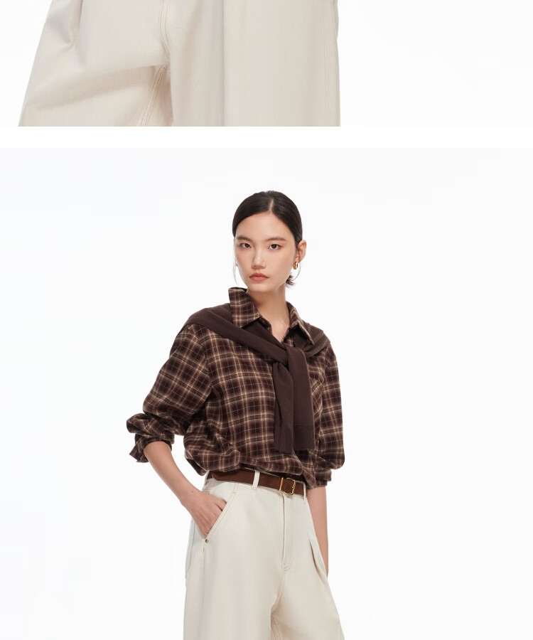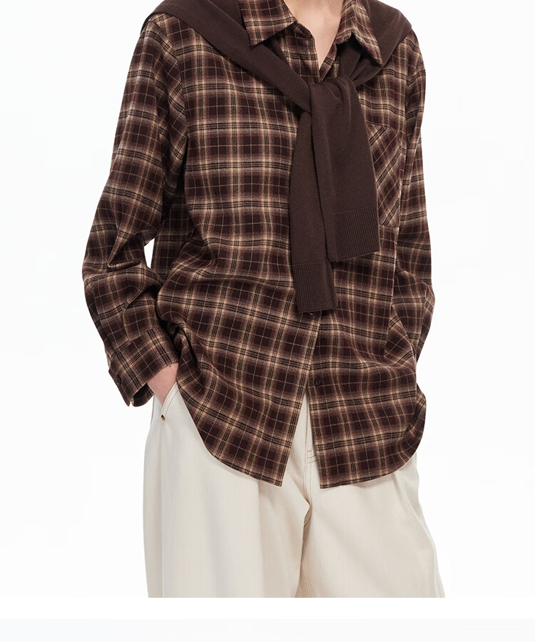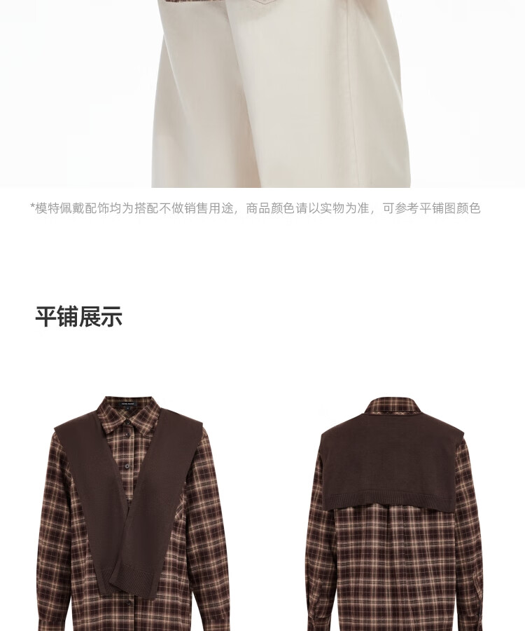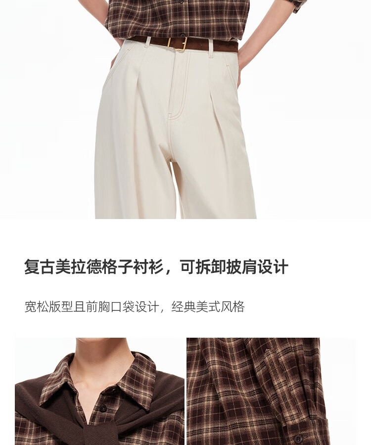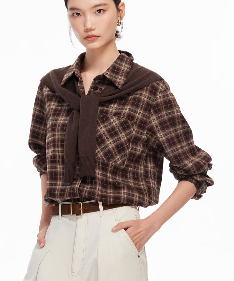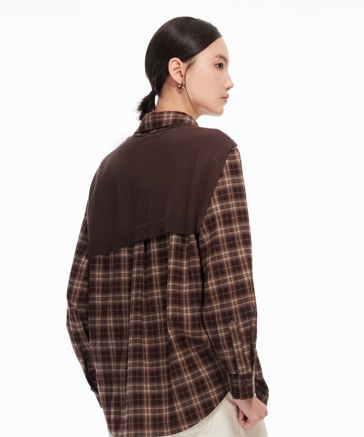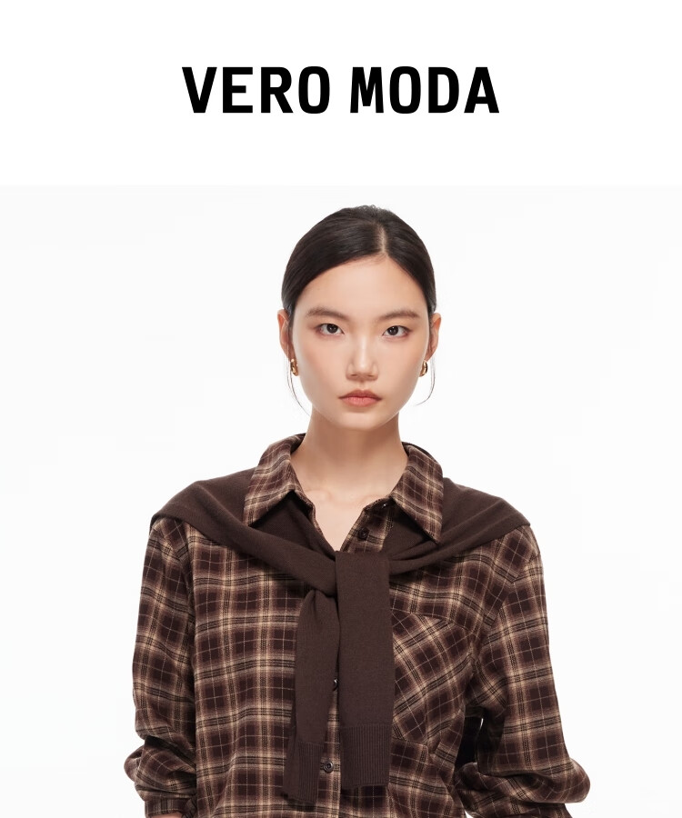 VEROMODA shirt 2026 spring new plaid simple detachable knitted shawl Maillard top 326105004 camphor red with flowers XS