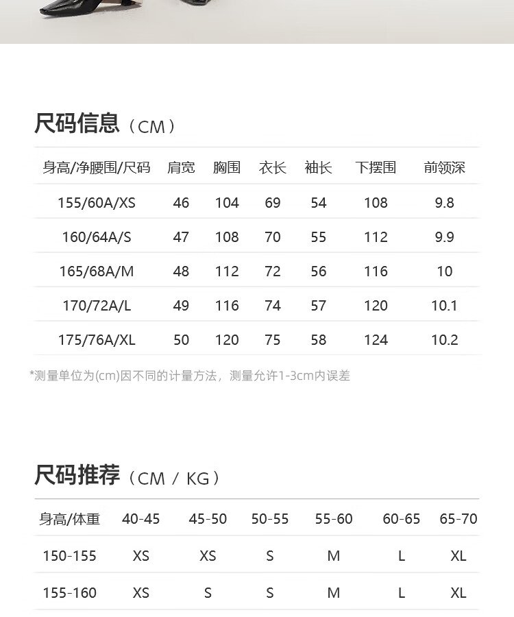 China (cm) 160-165/84-86 165-170 / 88-90 167-172 / 92-96 168-173 / 98-102 170-176 / 106-110