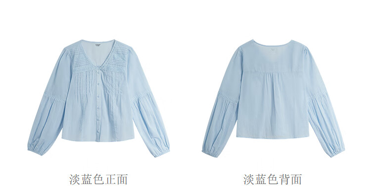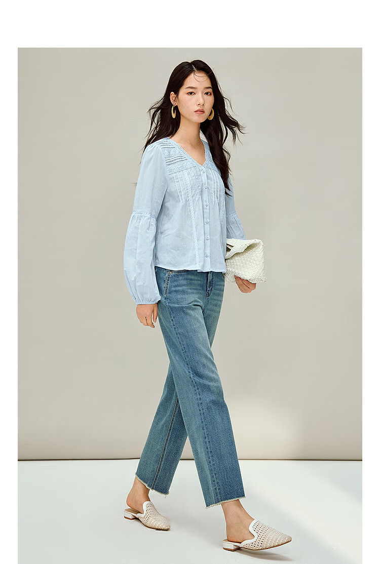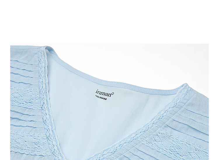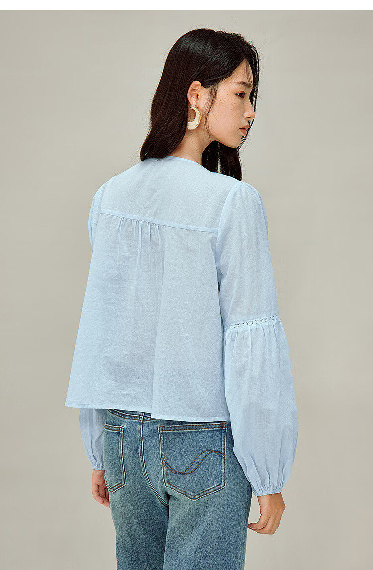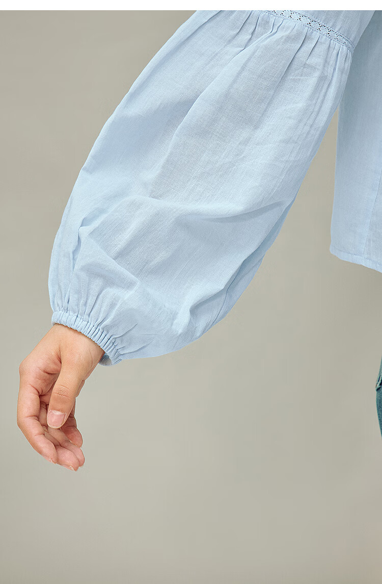 INMAN Lace V-neck Shirt 2026 Spring Women's New Lantern Sleeve Loose Shirt Top Light Blue XL