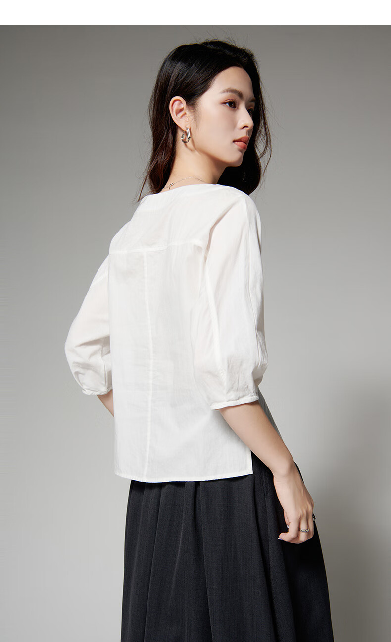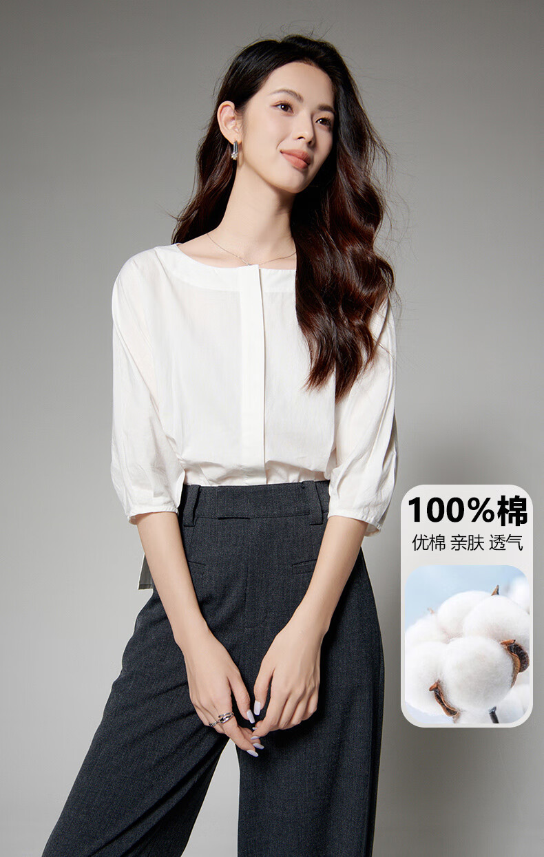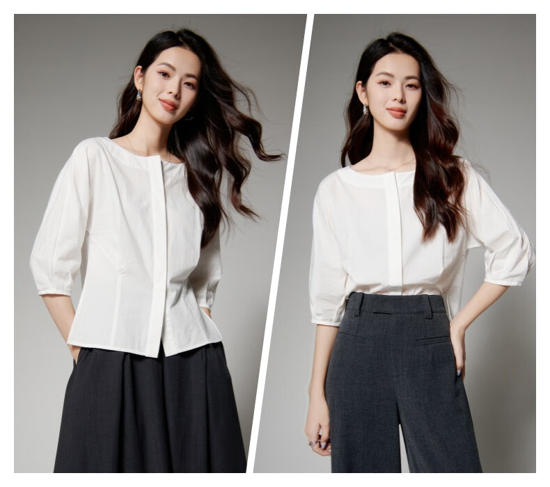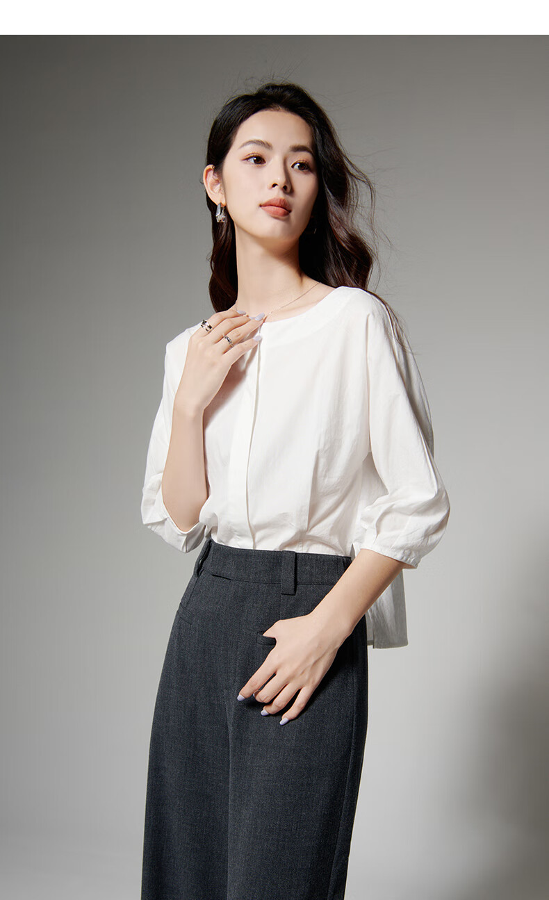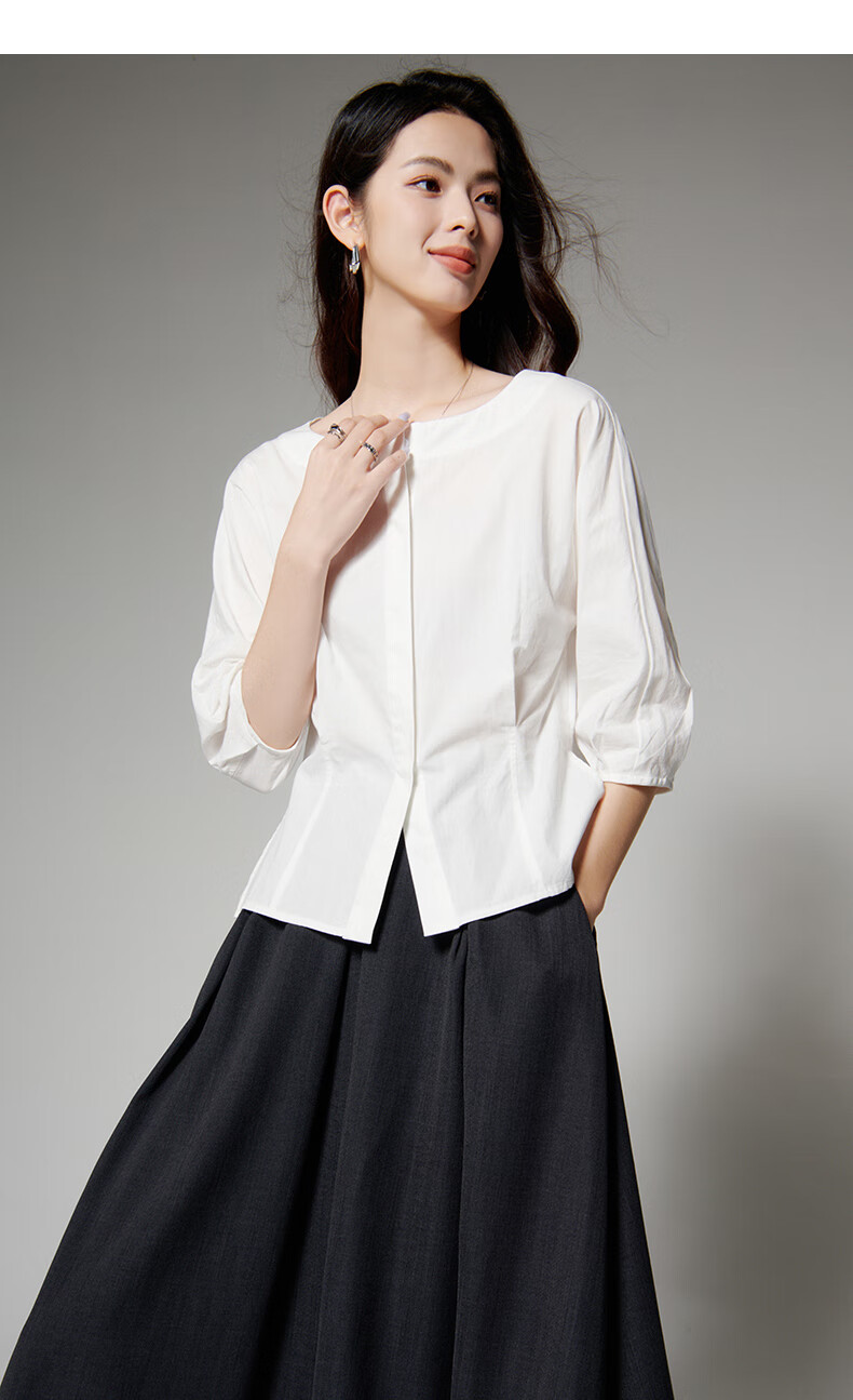 Late White New Product 2025 Autumn Skin-Friendly Korean Style Shirt Temperament Round Neck Age Reduction Fashion Shirt Women White L