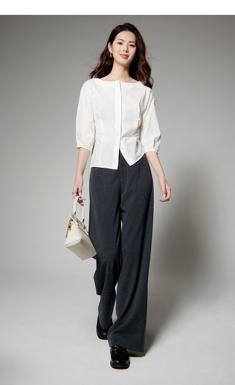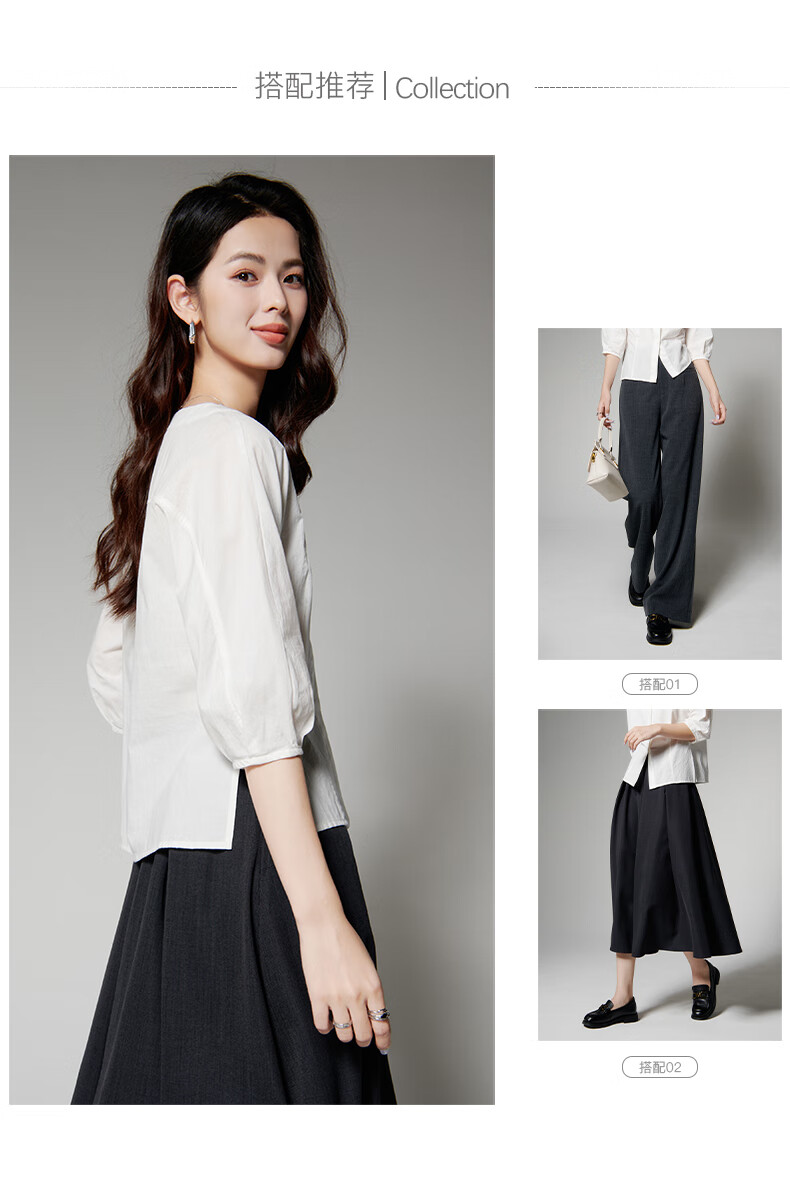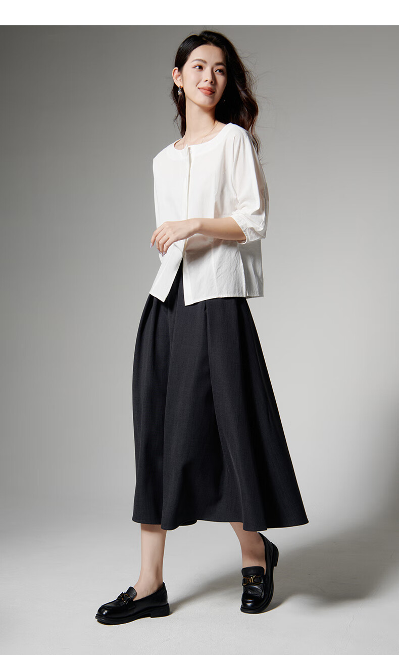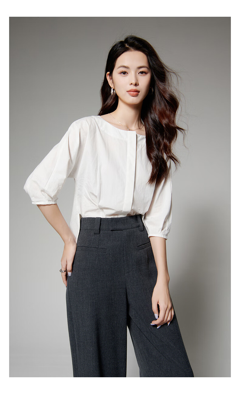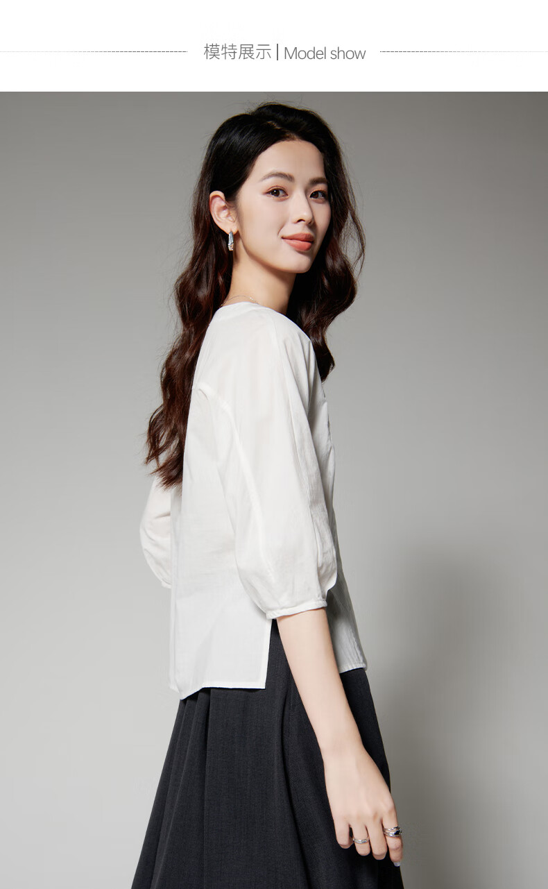 Late White New Product 2025 Autumn Skin-Friendly Korean Style Shirt Temperament Round Neck Age Reduction Fashion Shirt Women White L