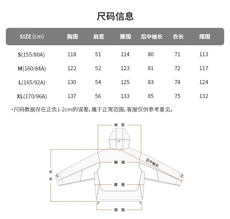 China (cm) 165 / 88-90 170 / 96-98 175 / 108-110 180 / 118-122 185 / 126-130