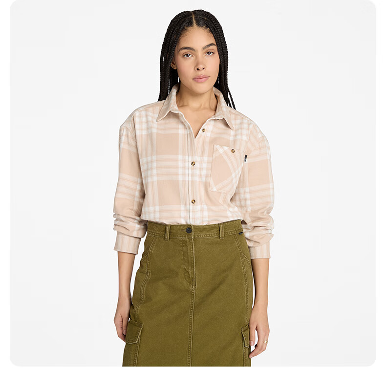 Timberland Women's Flannel Shirt New Outdoor Casual Loose A6HXQG82/Emerald Green L It is recommended to choose one size smaller (165/92A)