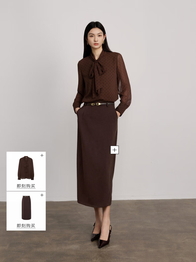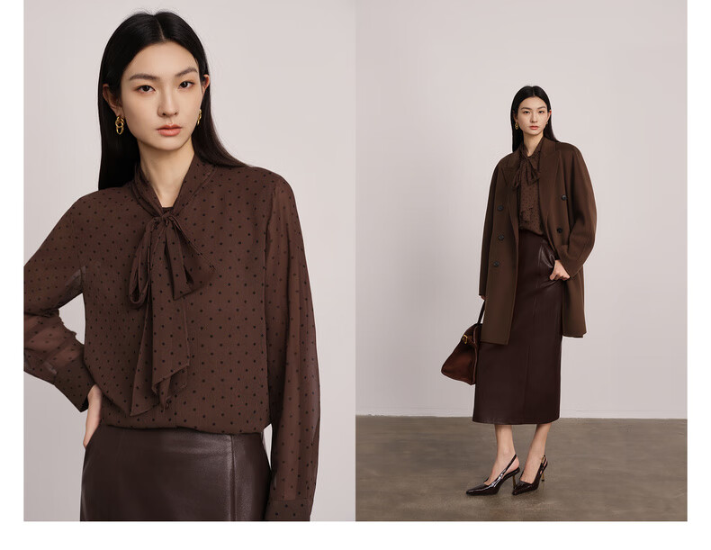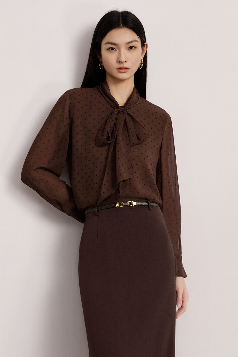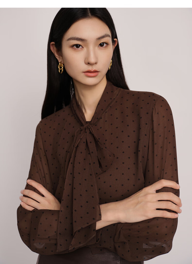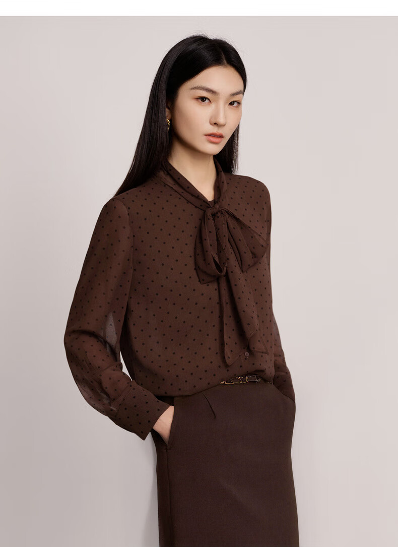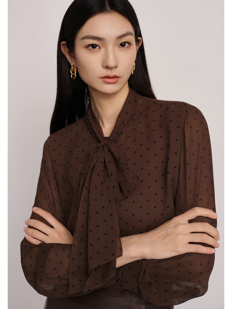 Eveli (eifini) Jiang Xin endorses Eveli's classic polka dot elegant streamer fashion versatile shirt 2025 winter new small top women's coffee M 105-115Jin Jin is equal to 0.5 kg