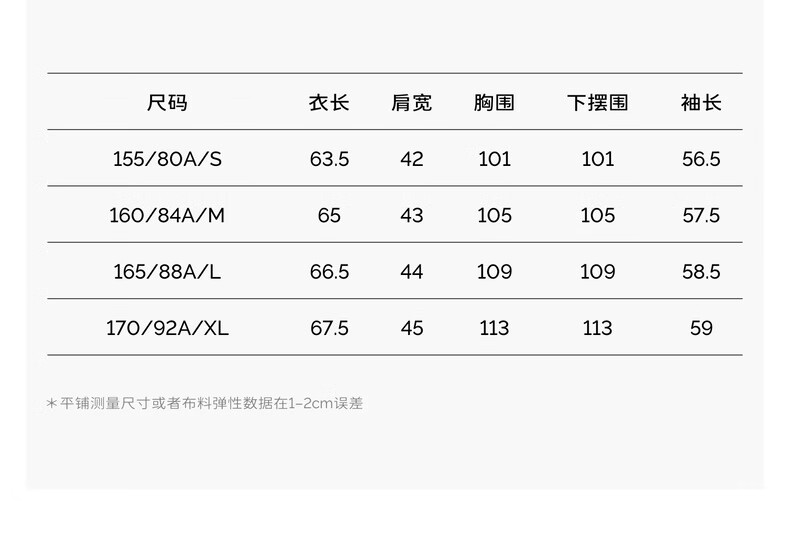China (cm) 160-165/84-86 165-170 / 88-90 167-172 / 92-96 168-173 / 98-102 170-176 / 106-110