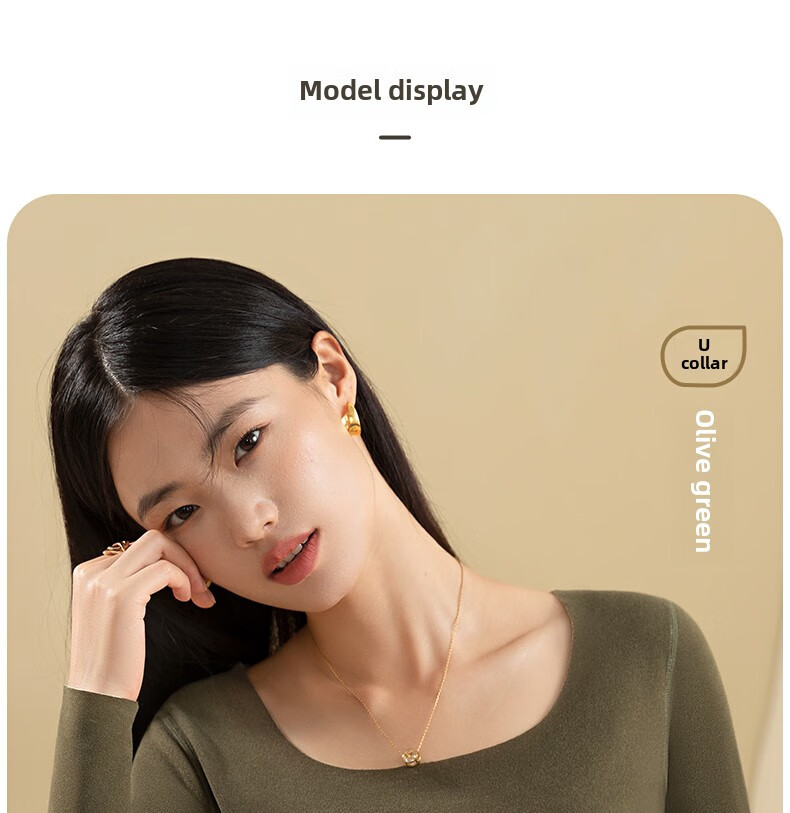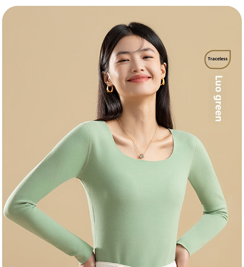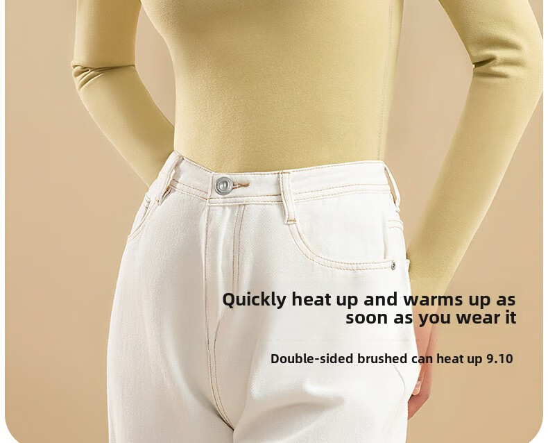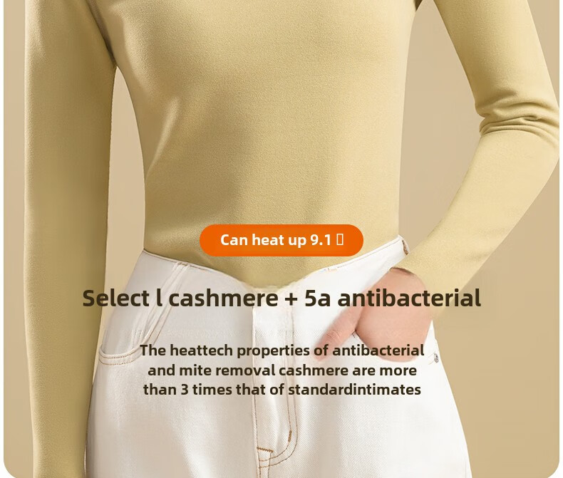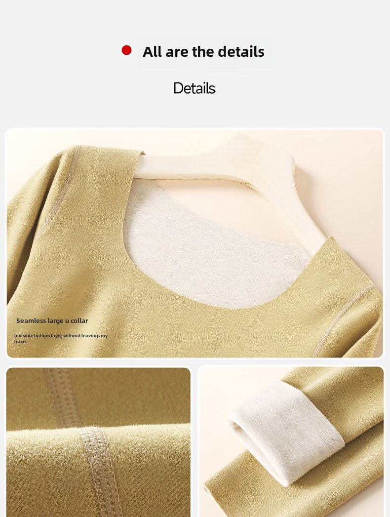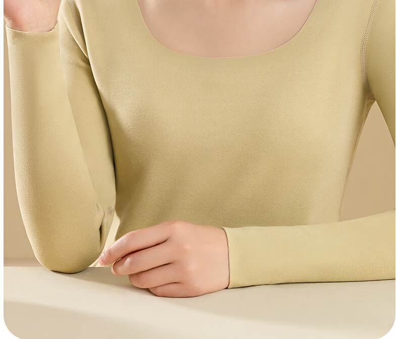 Hongdou Procurement Products Cashmere Thermal Underwear for Women, Velvet Inner Shirts, Heated Seamless Autumn Clothes Goose Yellow + Milk Skin Color Cashmere Grade 5A Two-Pack M