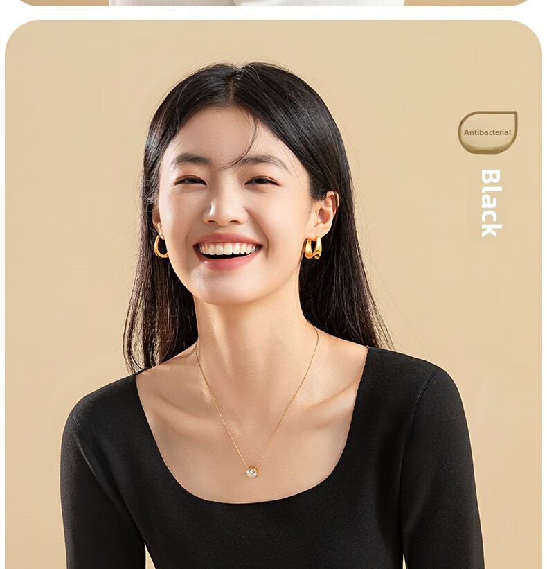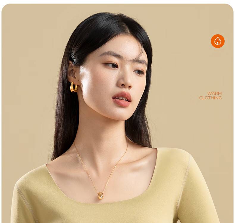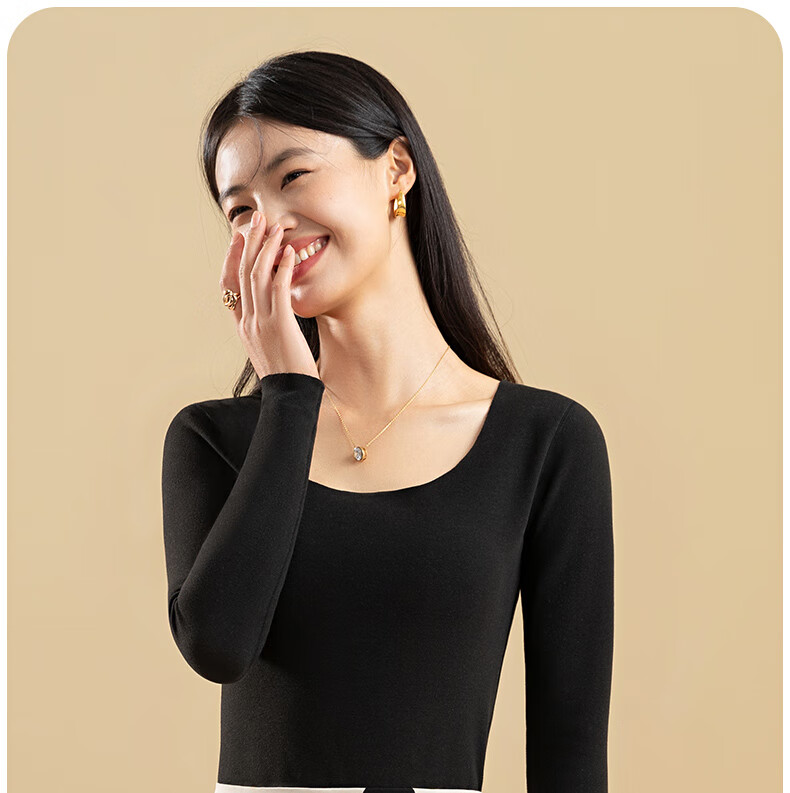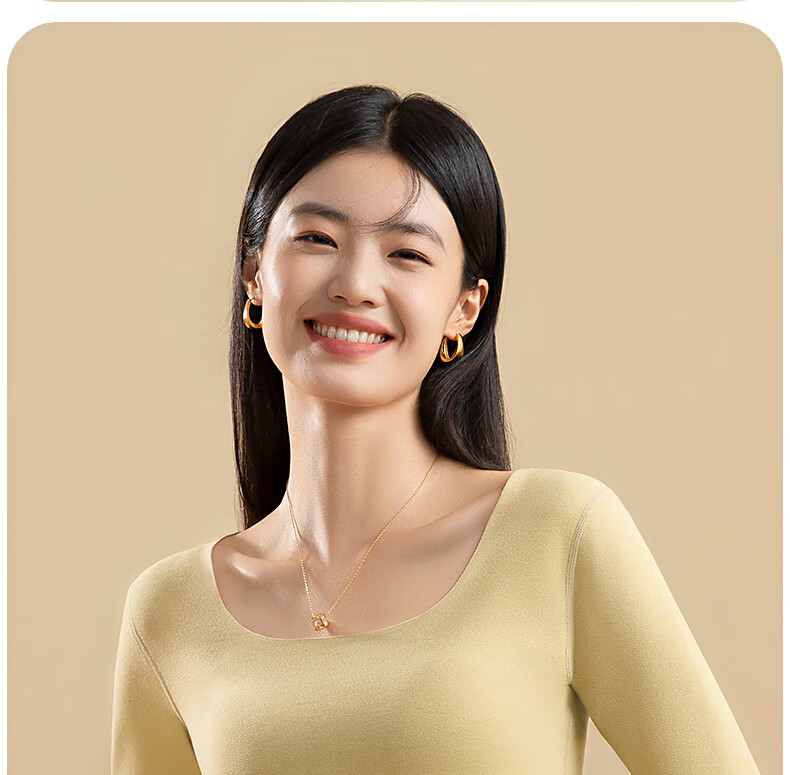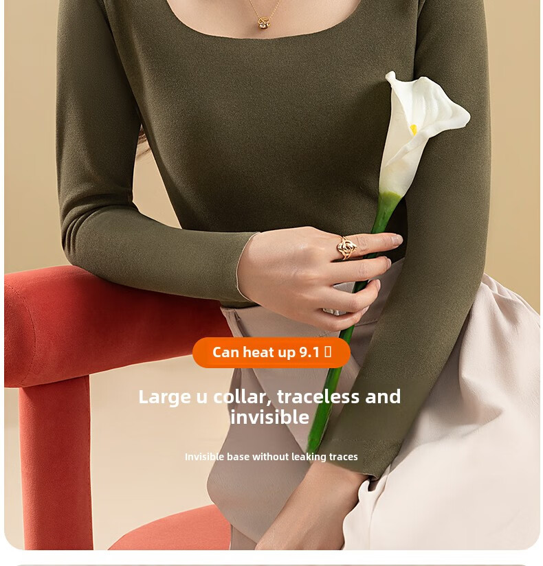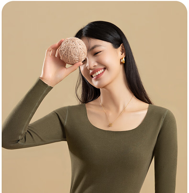 Hongdou Procurement Products Cashmere Thermal Underwear for Women, Velvet Inner Shirts, Heated Seamless Autumn Clothes Goose Yellow + Milk Skin Color Cashmere Grade 5A Two-Pack M