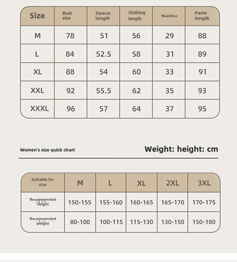 China (cm) 160-165/84-86 165-170 / 88-90 167-172 / 92-96 168-173 / 98-102 170-176 / 106-110