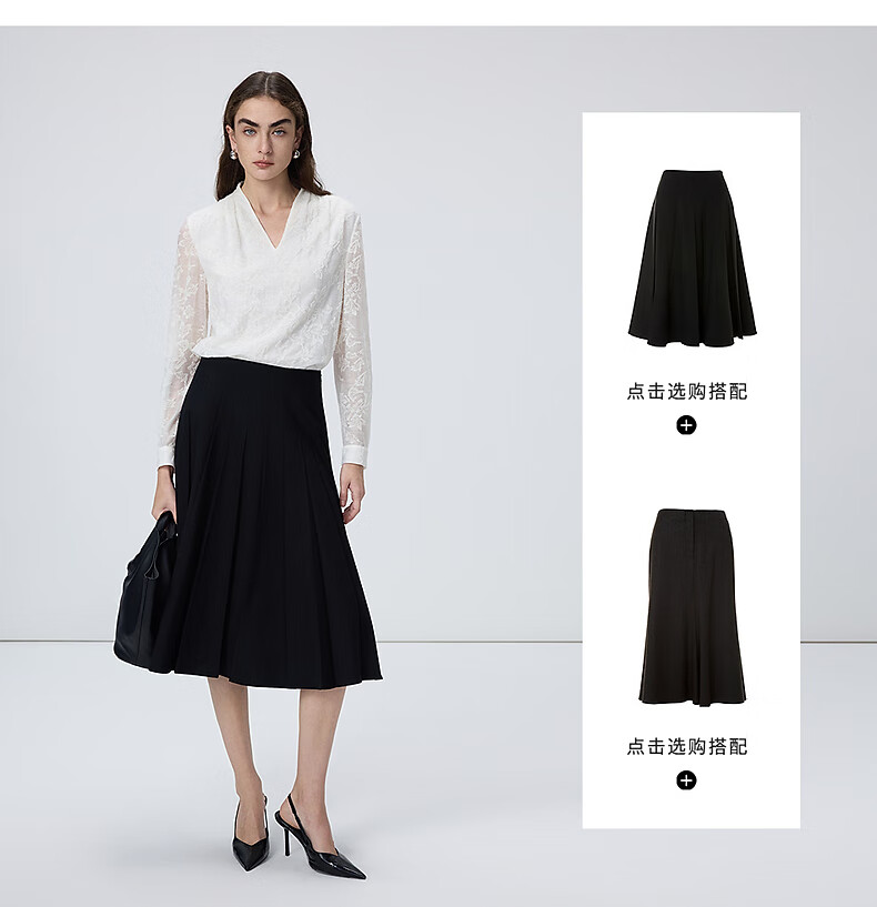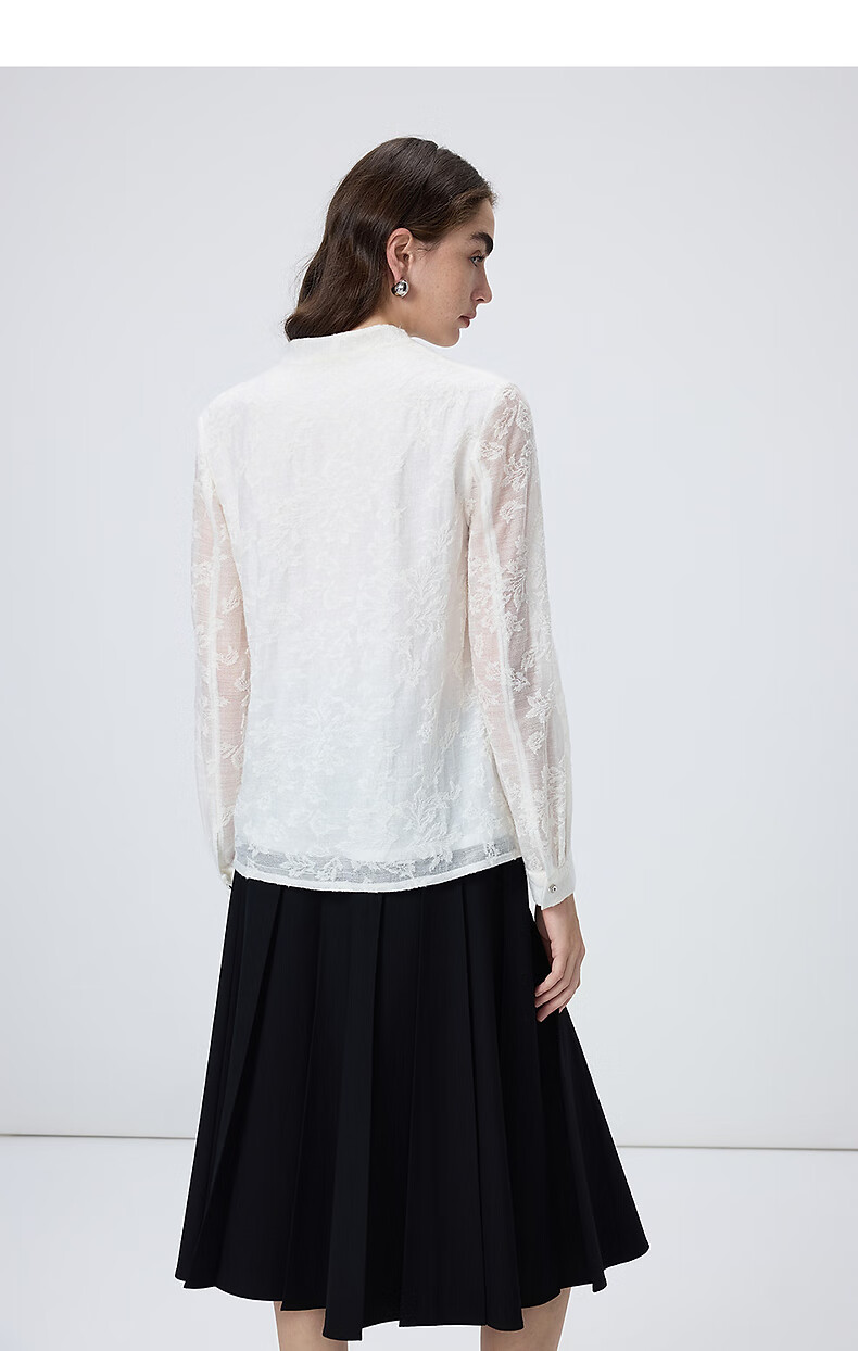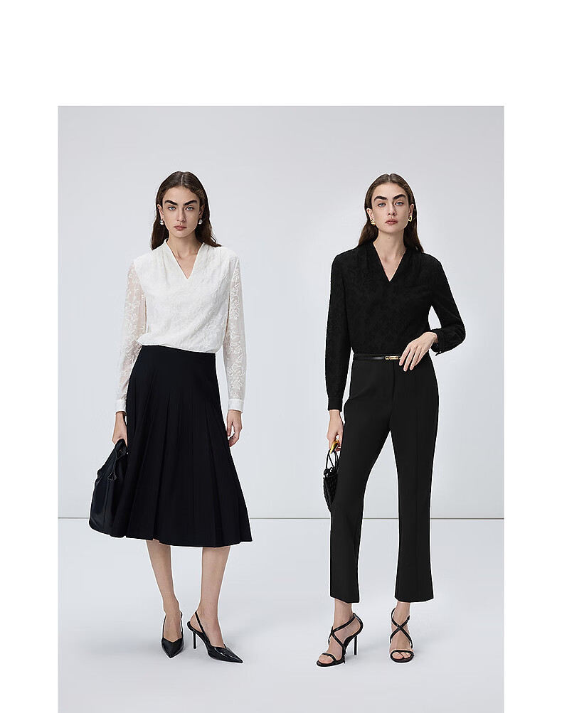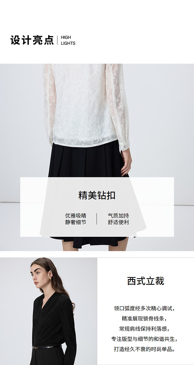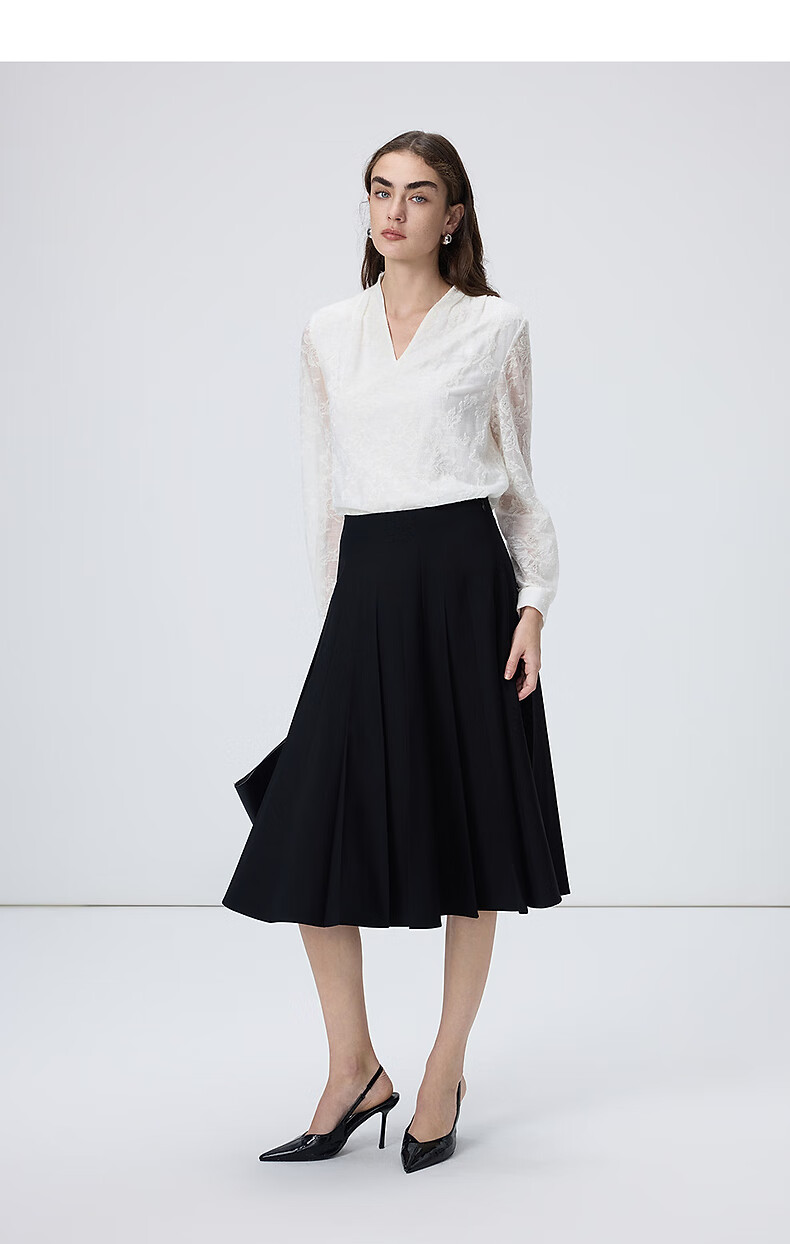 Langzi Wool V-neck Jacquard Elegant Temperament Shirt Simple and Comfortable Commuting Shirt Women 2026 Spring New Black XL