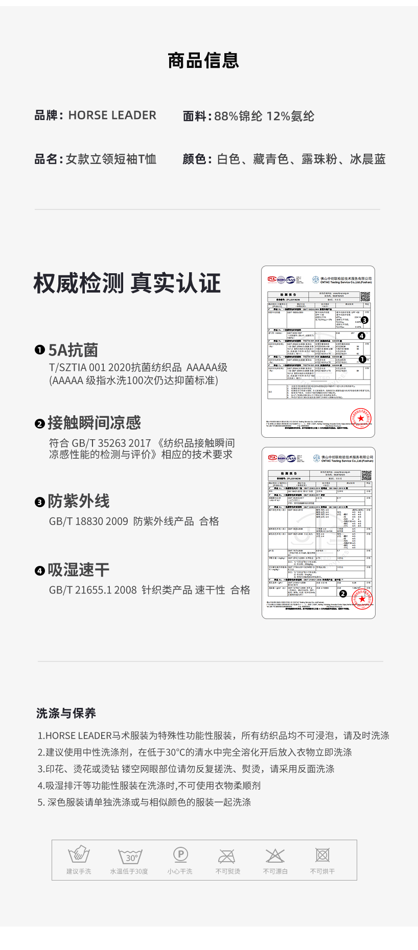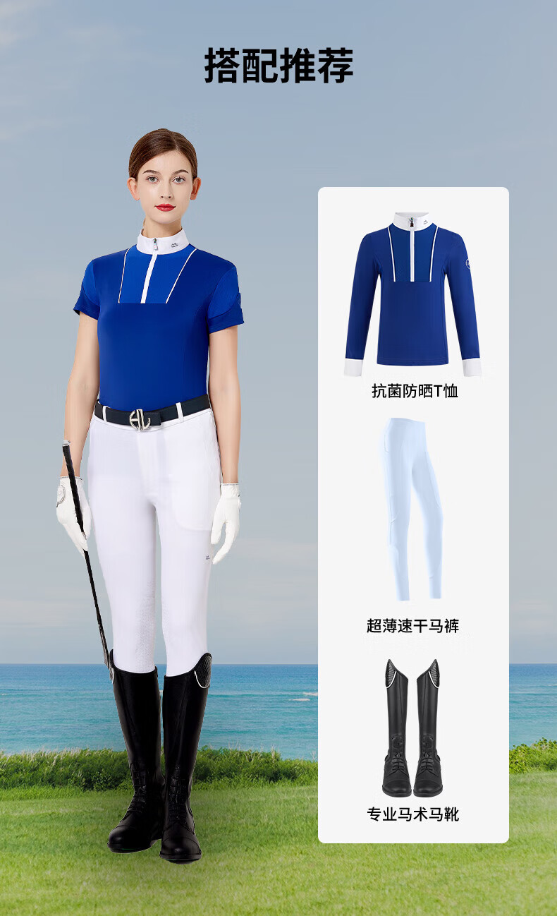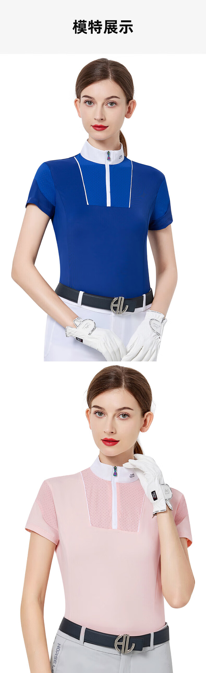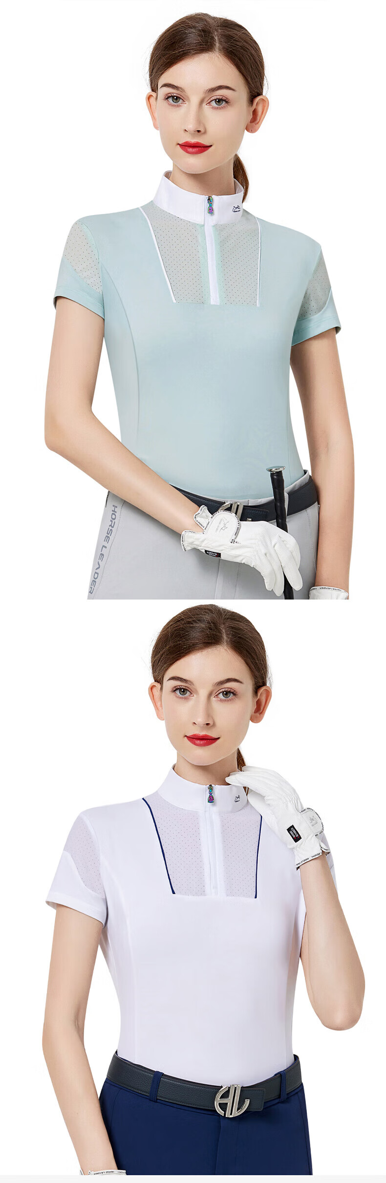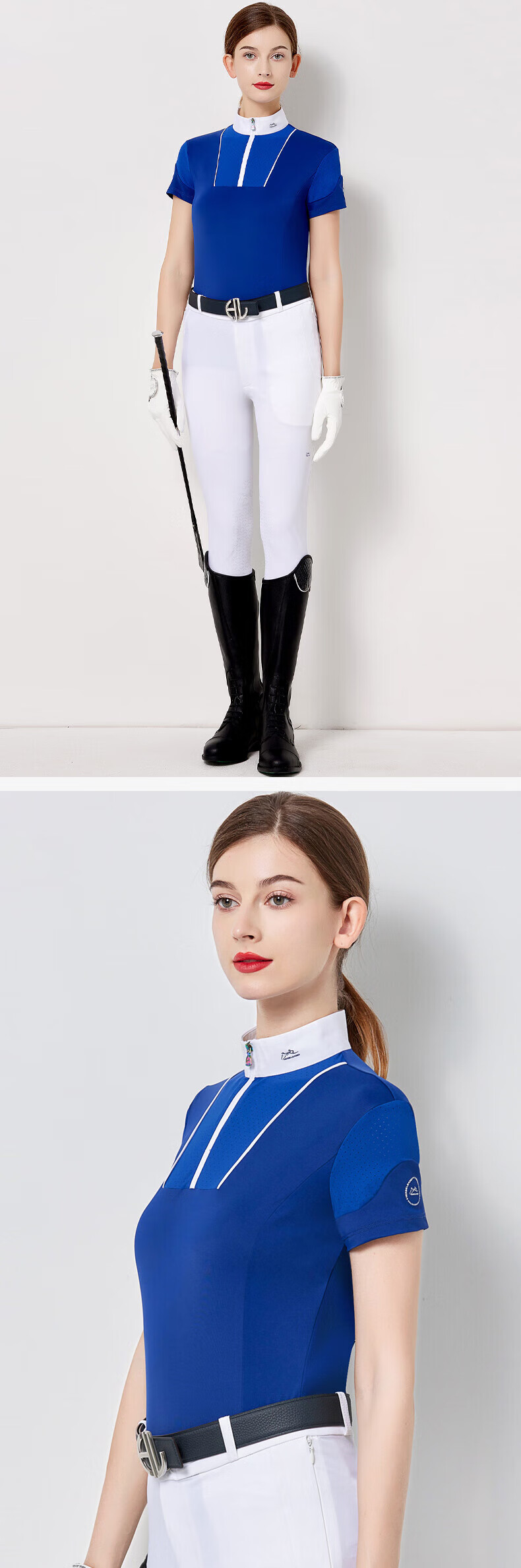 HORSE LEADER summer equestrian T-shirt short-sleeved adult equestrian clothing women's equestrian equipment competition shirt navy blue one size 165