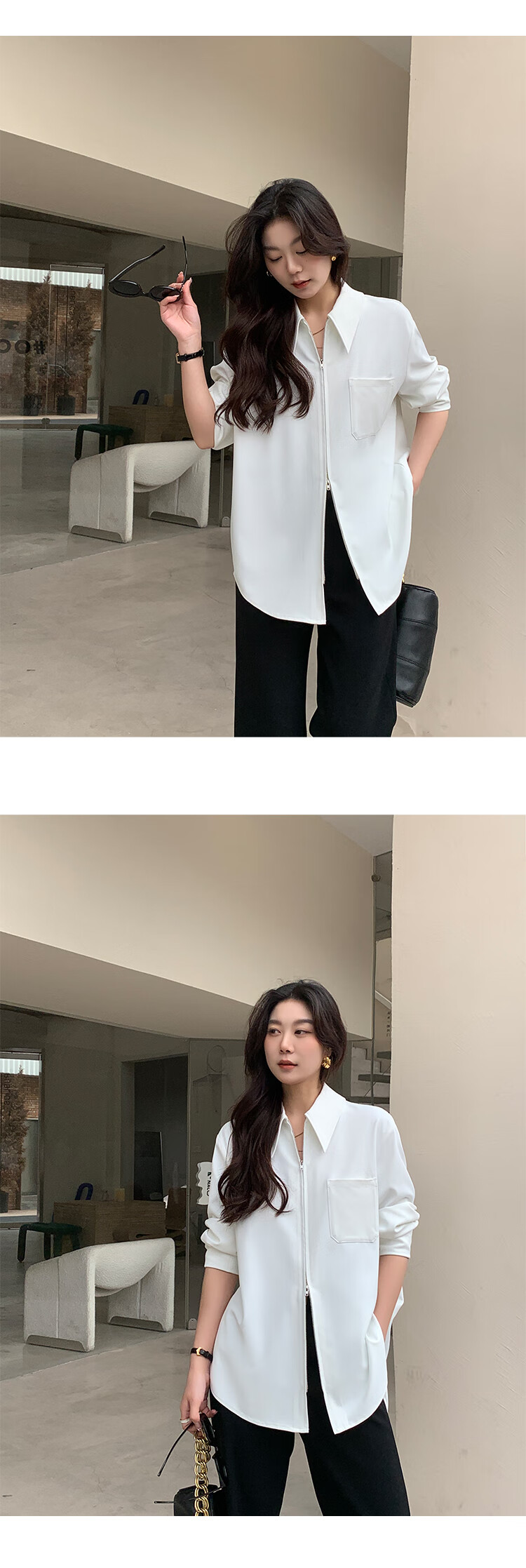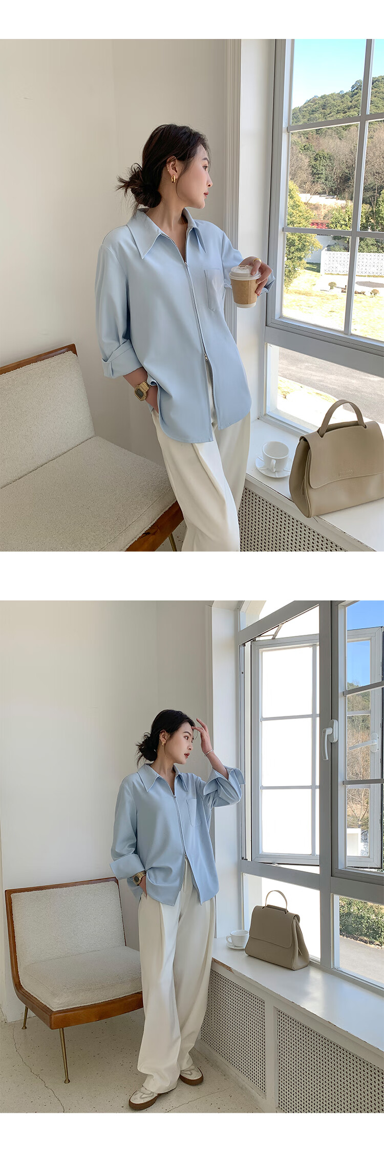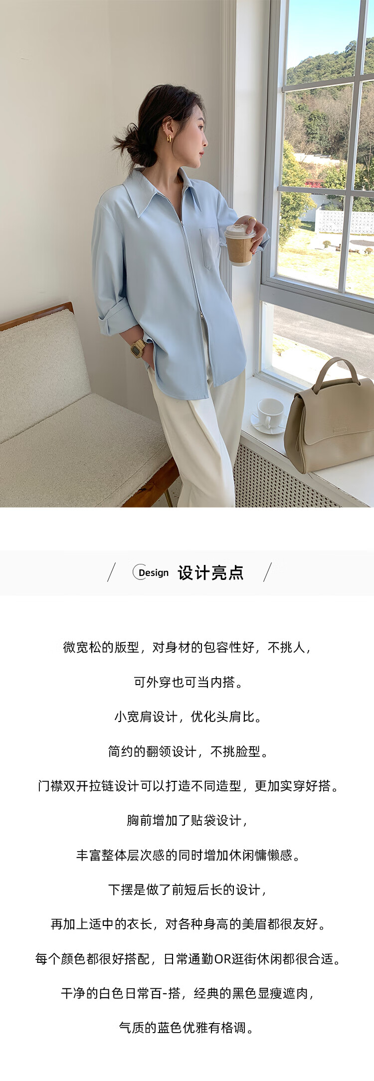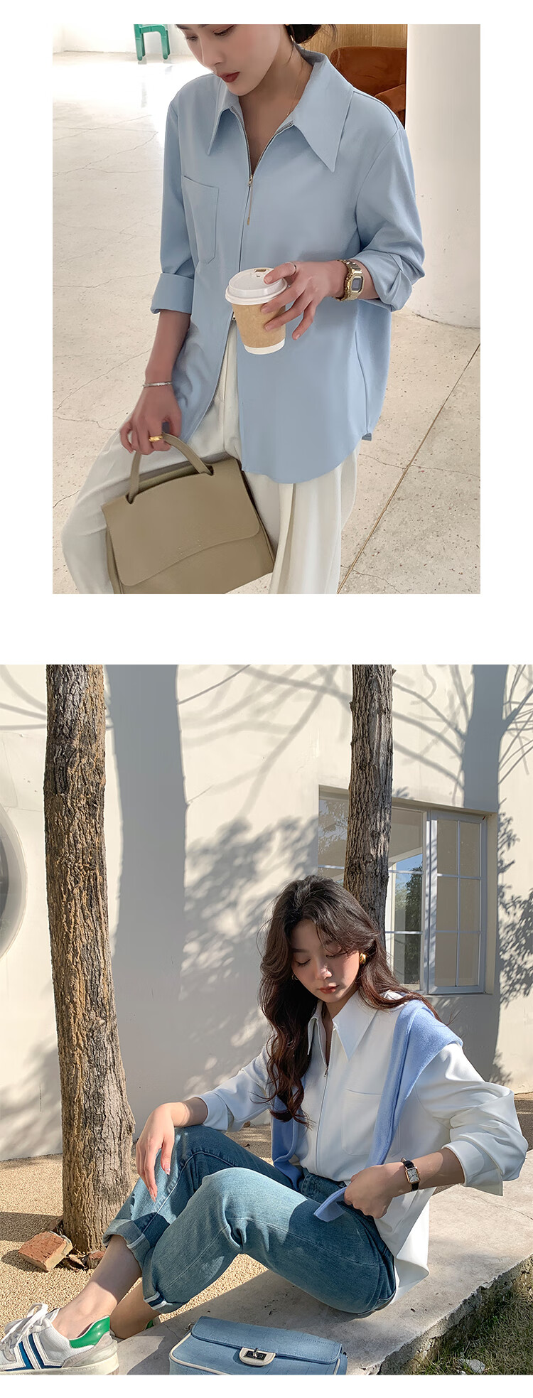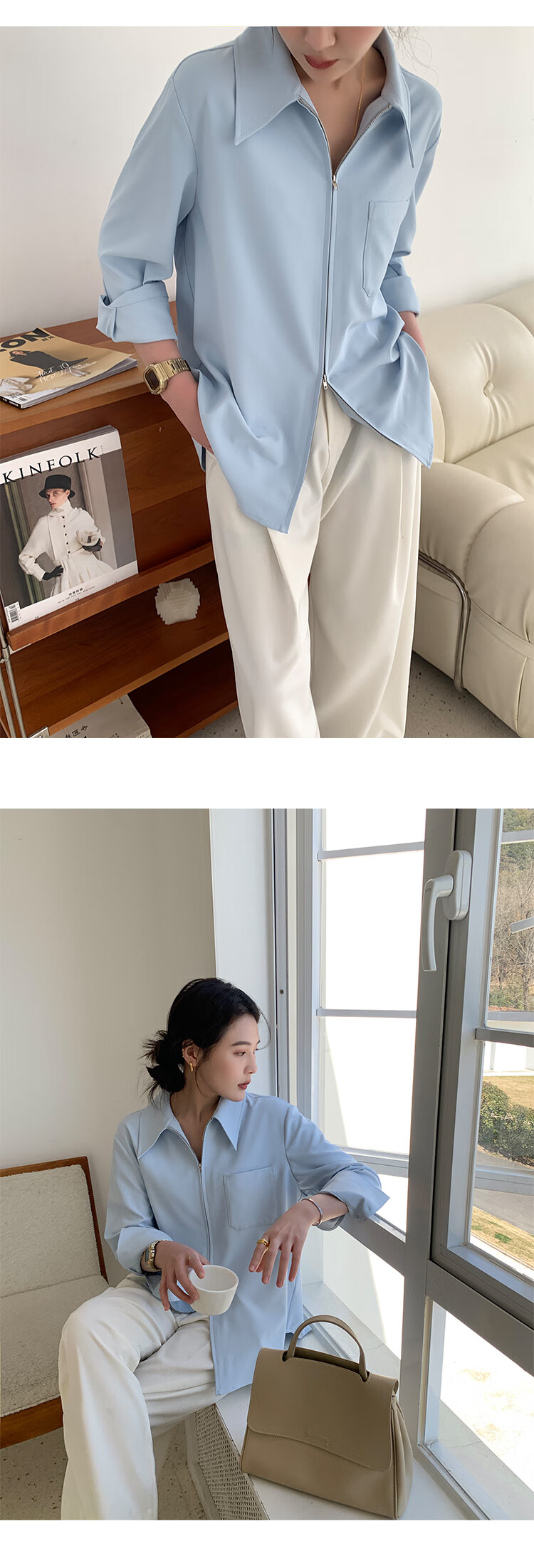 KSOEUR Sister K’s homemade treasure shirt matt sunscreen hollow yarn versatile single pocket shirt for women blue XS