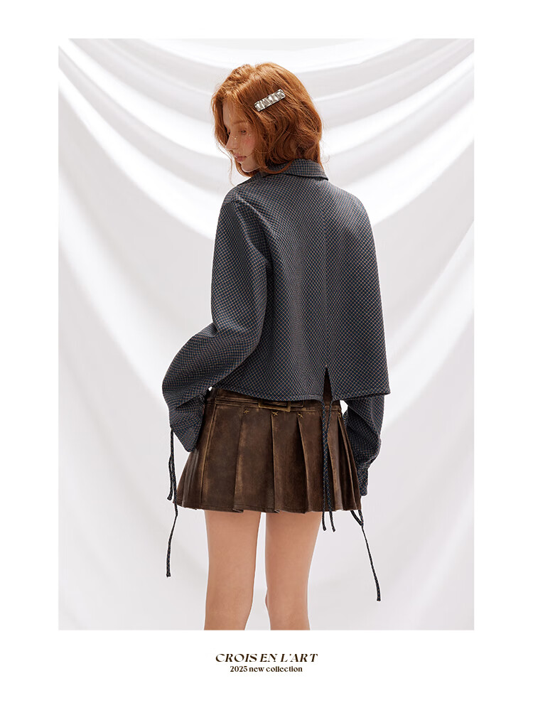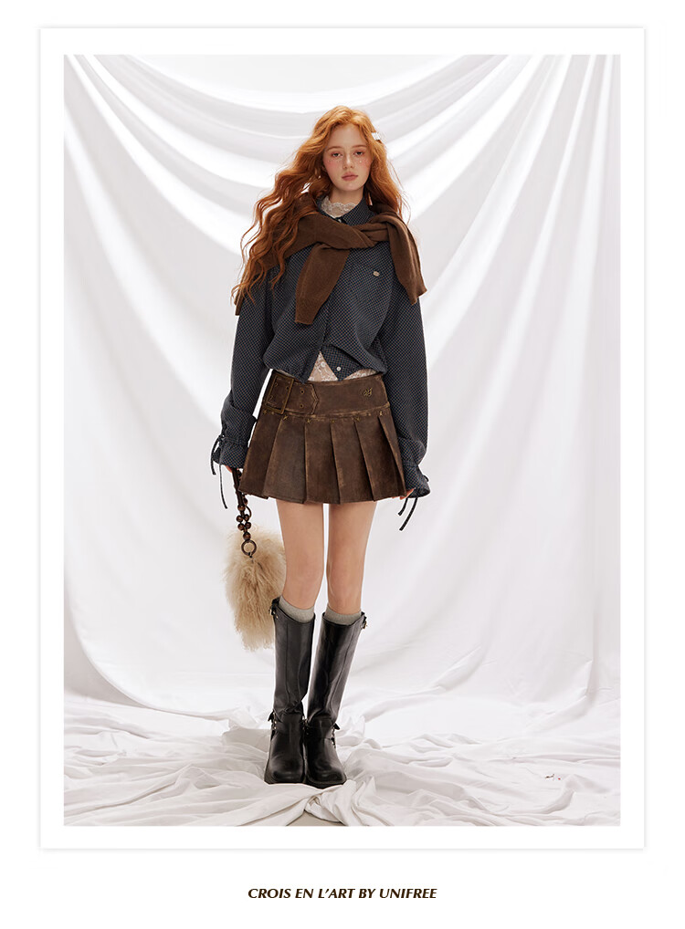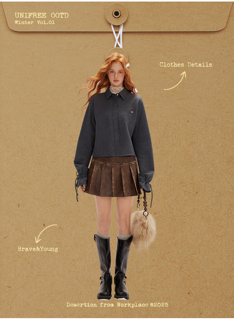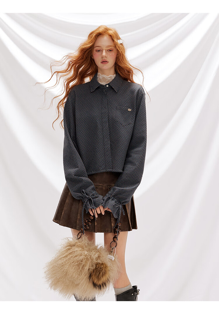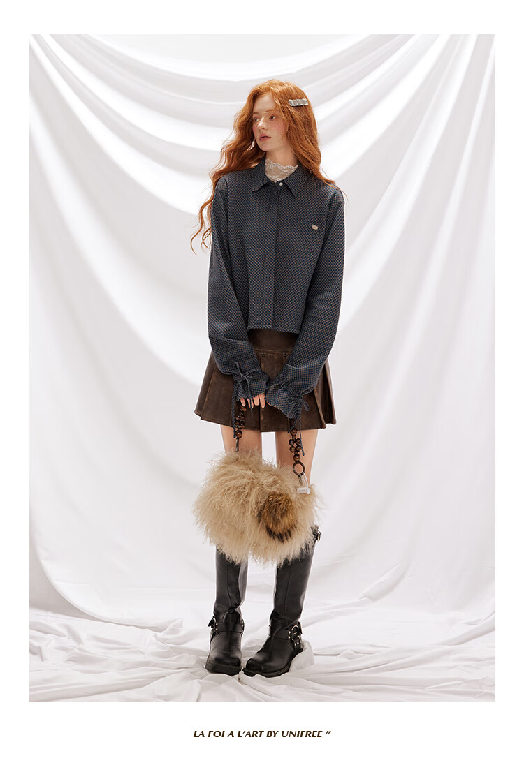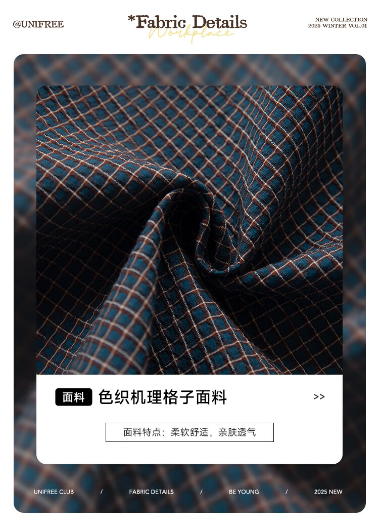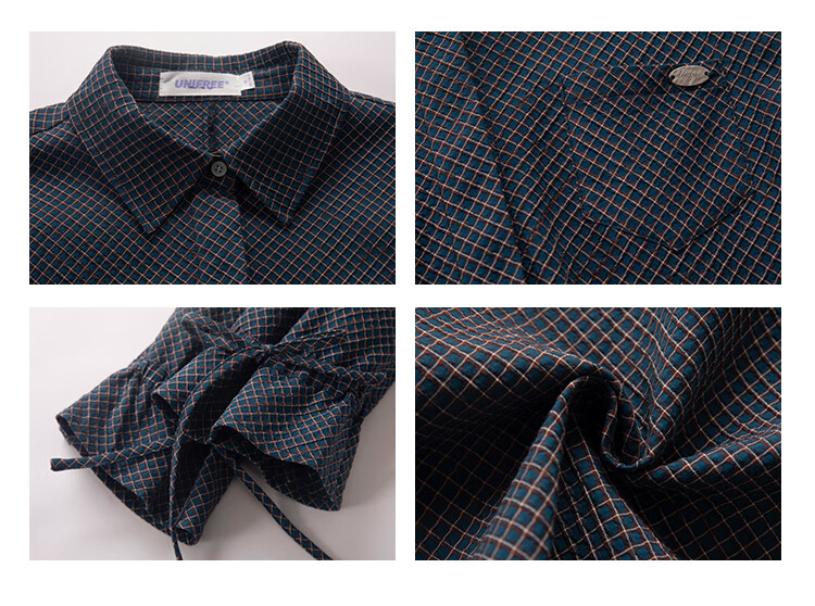UNIFREE simple Korean style long-sleeved shirt blue autumn and winter new plaid waist casual versatile long-sleeved top blue M