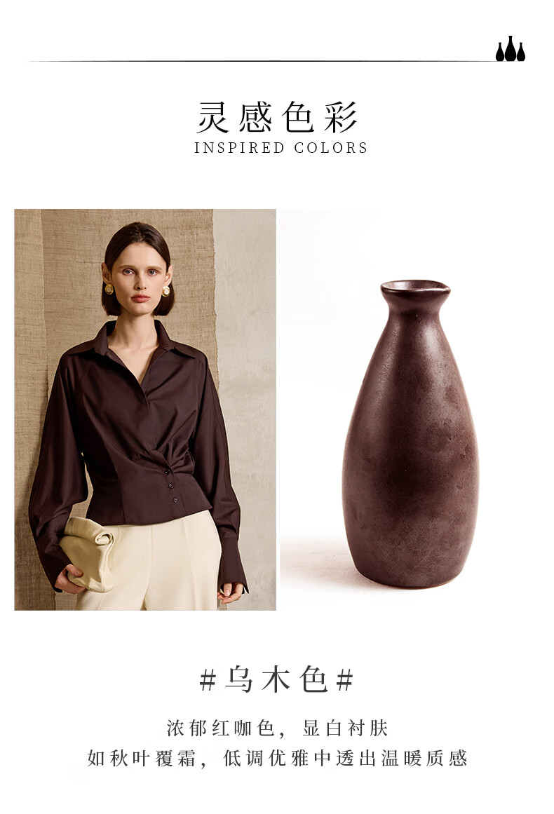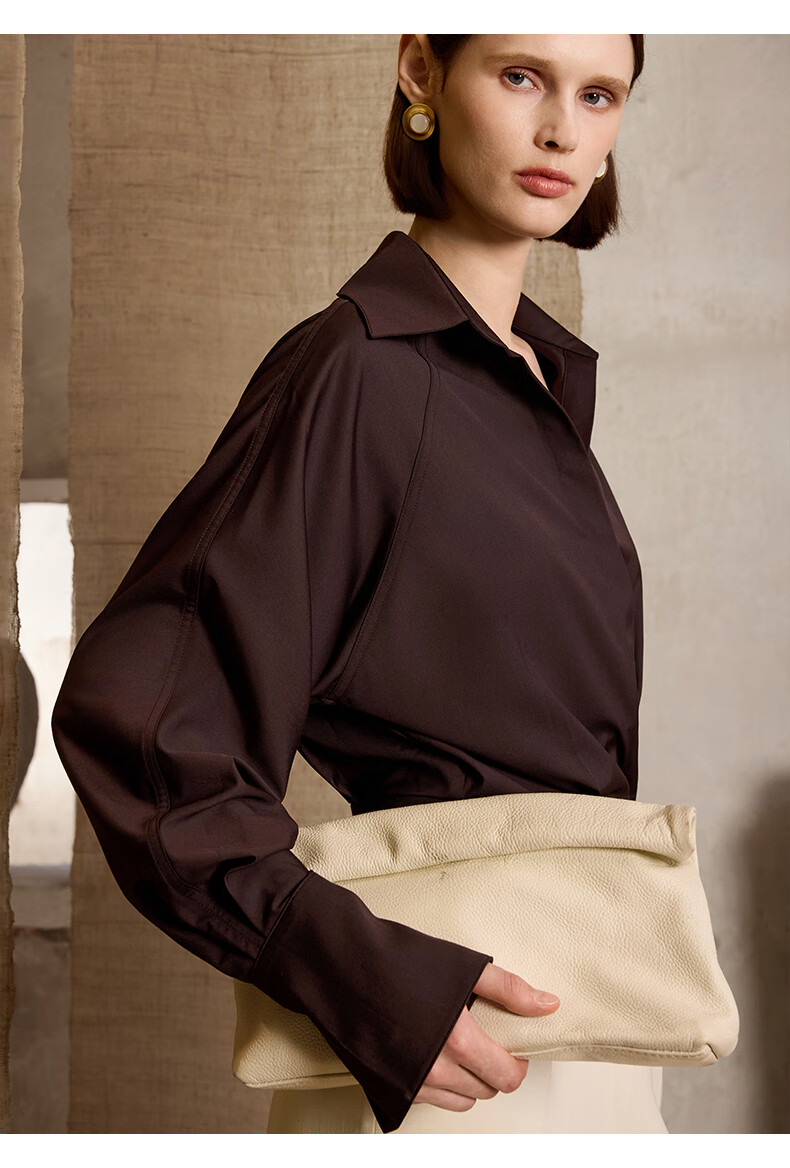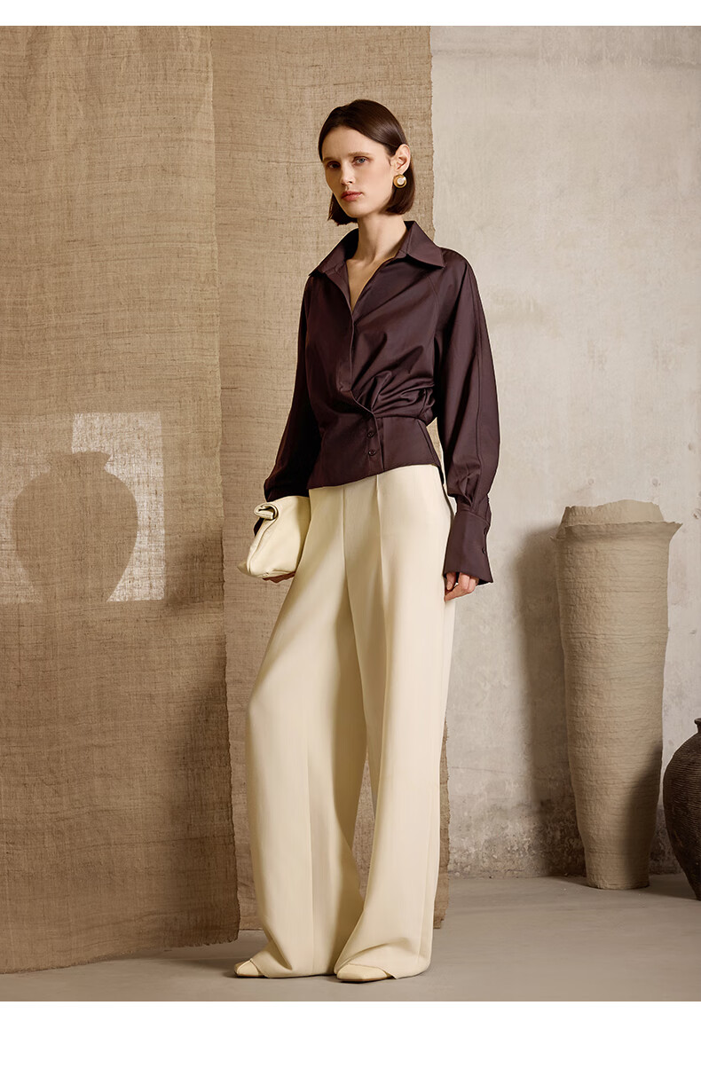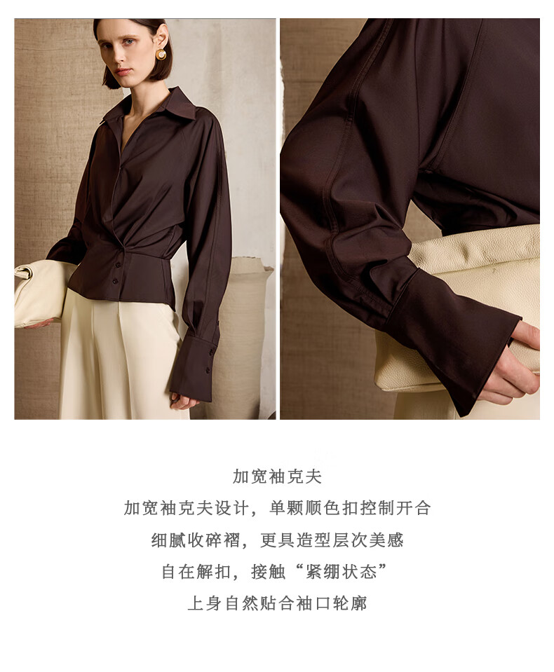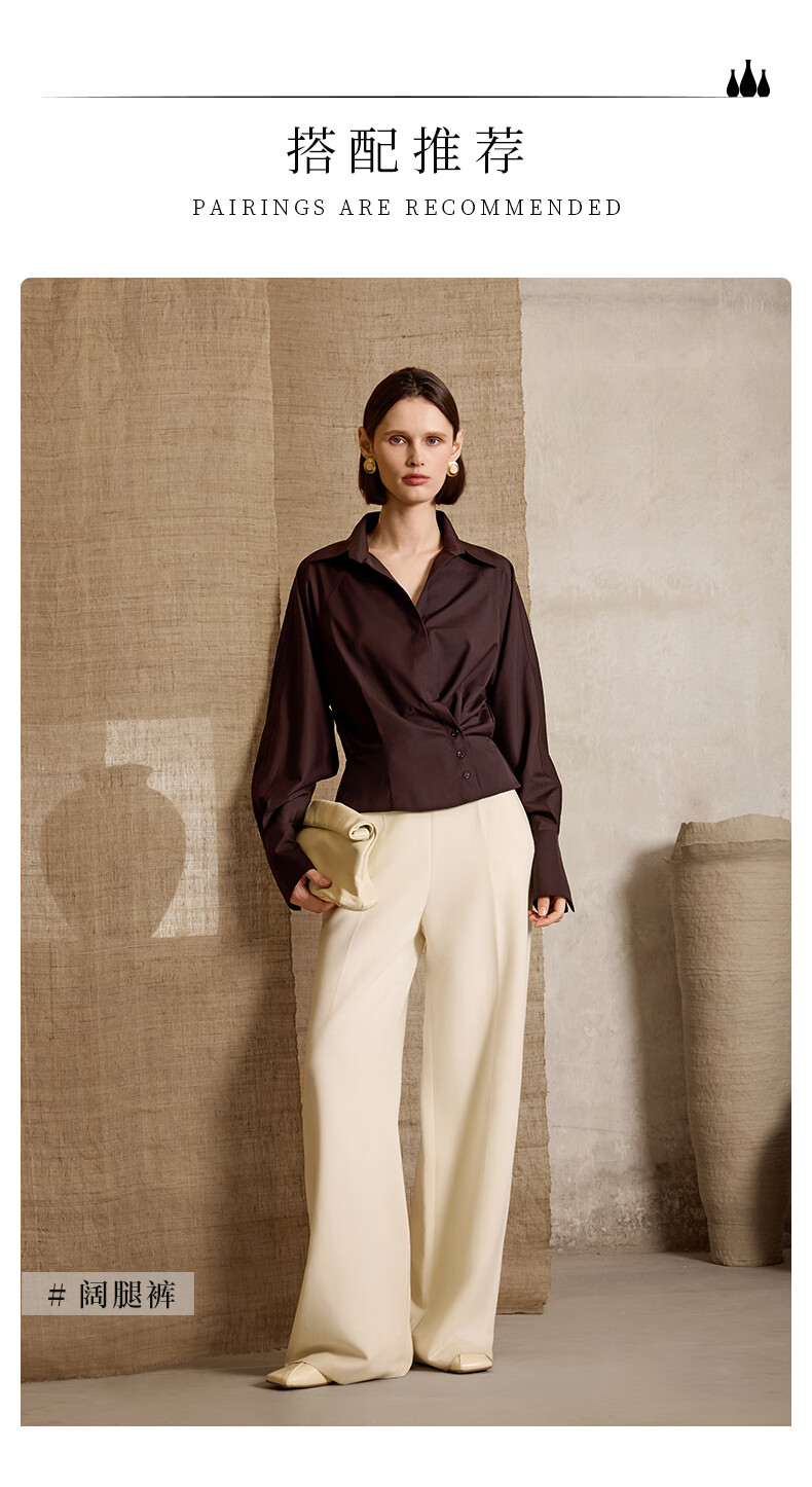 OMNIALUO shirt women's 2025 new design niche light luxury pleated slim shirt top C05 coffee color S