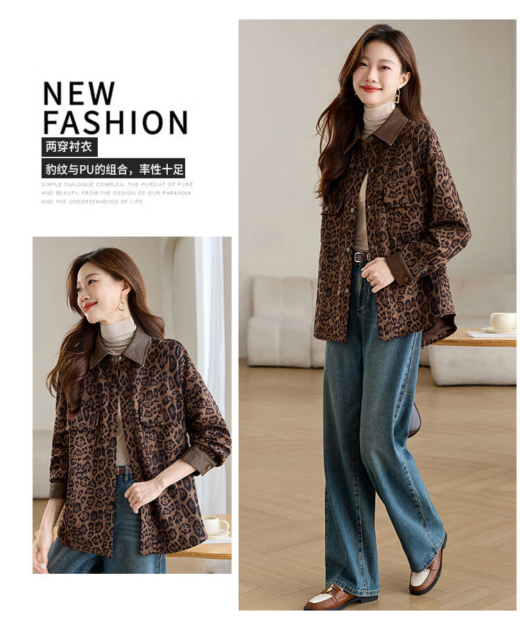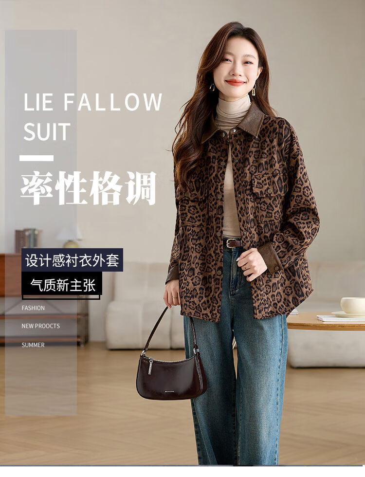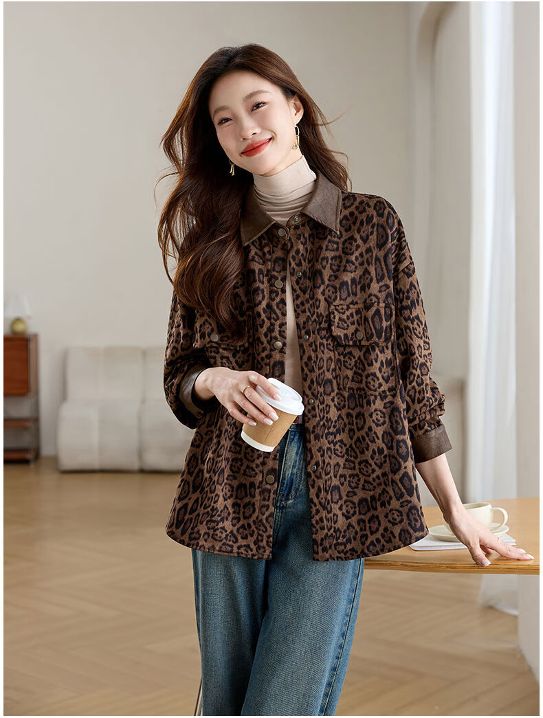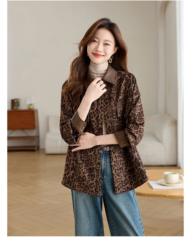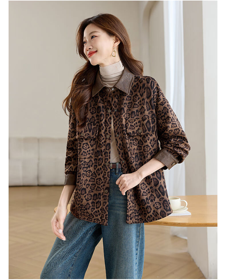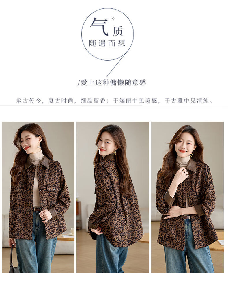 Jingyan shirt jacket for women spring and autumn new style mid-length age-reducing style mom autumn casual leopard print top picture color S S suitable for 100-118Jin Jin is equal to about 0.5 kg