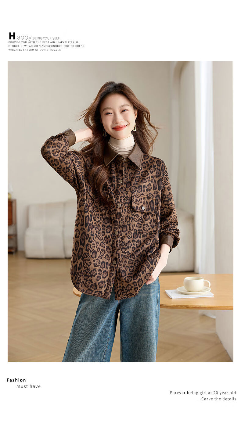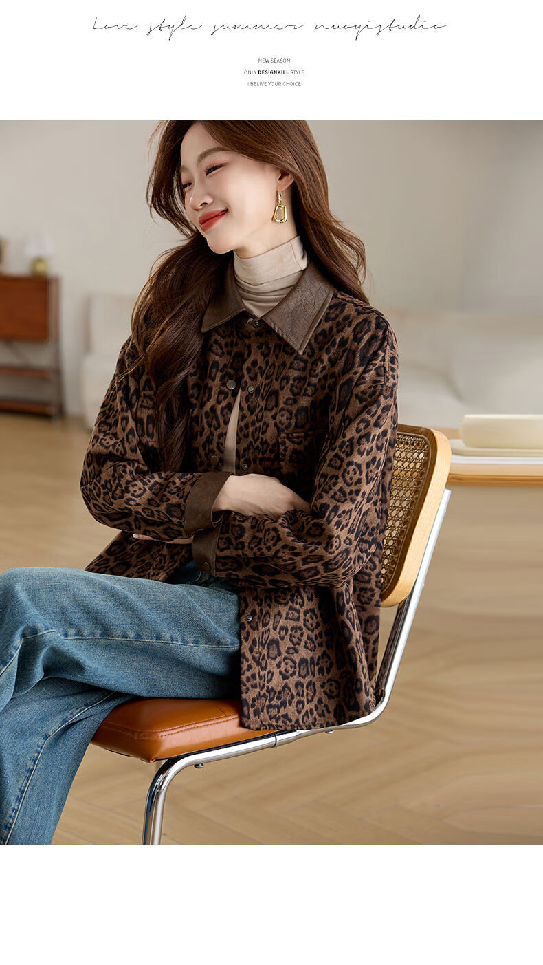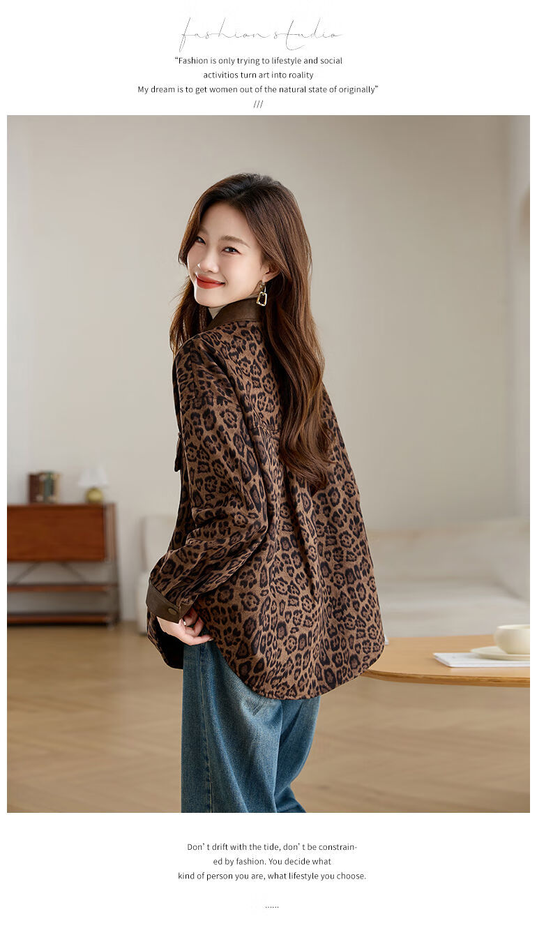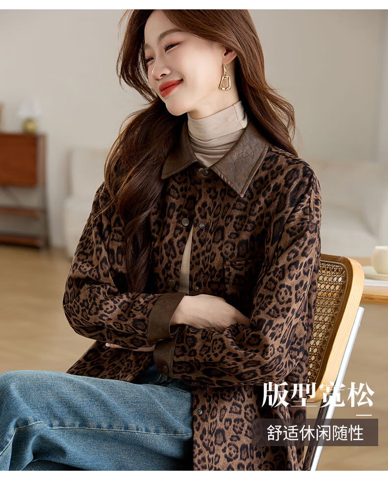 Jingyan shirt jacket for women spring and autumn new style mid-length age-reducing style mom autumn casual leopard print top picture color S S suitable for 100-118Jin Jin is equal to about 0.5 kg