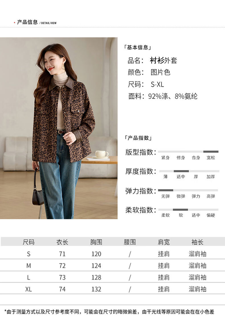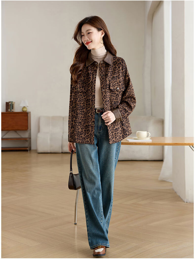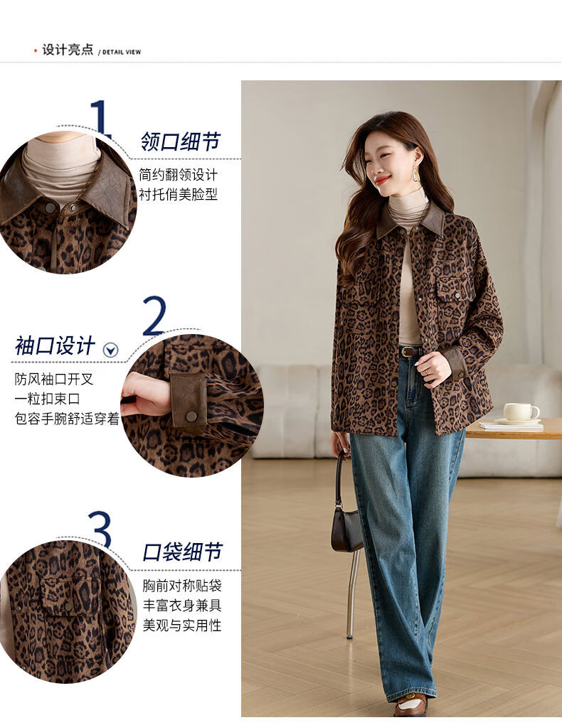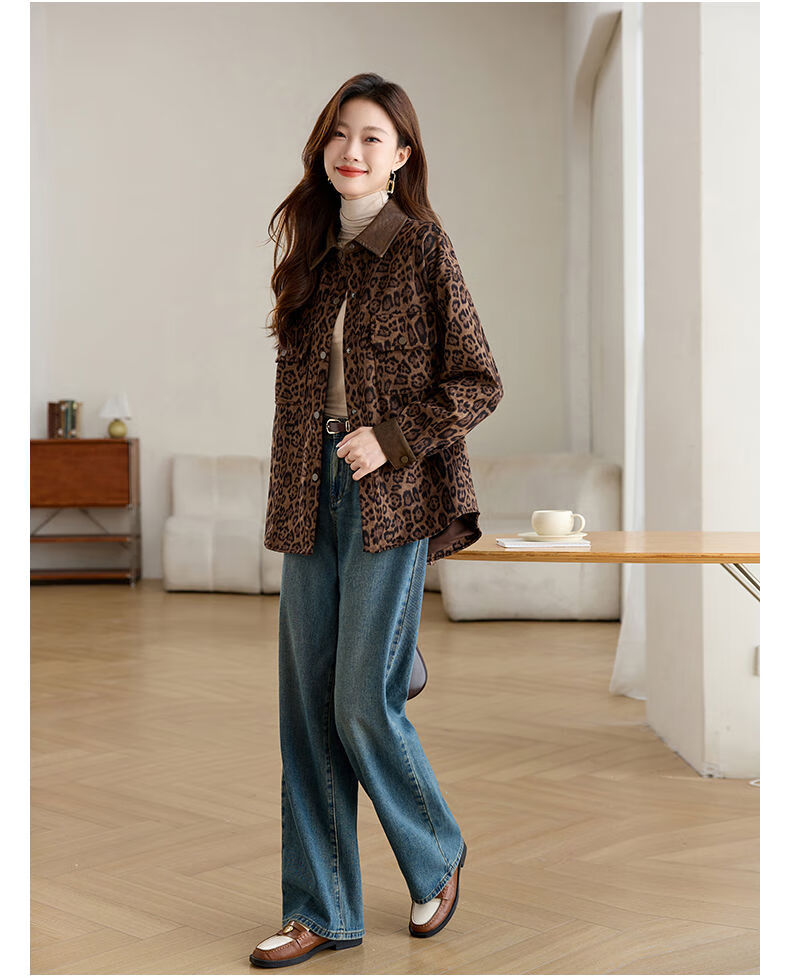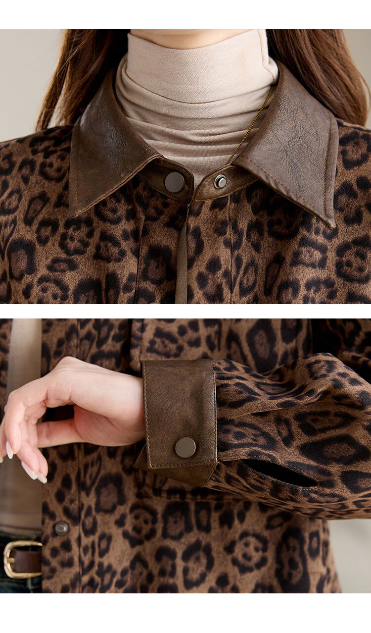 Jingyan shirt jacket for women spring and autumn new style mid-length age-reducing style mom autumn casual leopard print top picture color S S suitable for 100-118Jin Jin is equal to about 0.5 kg