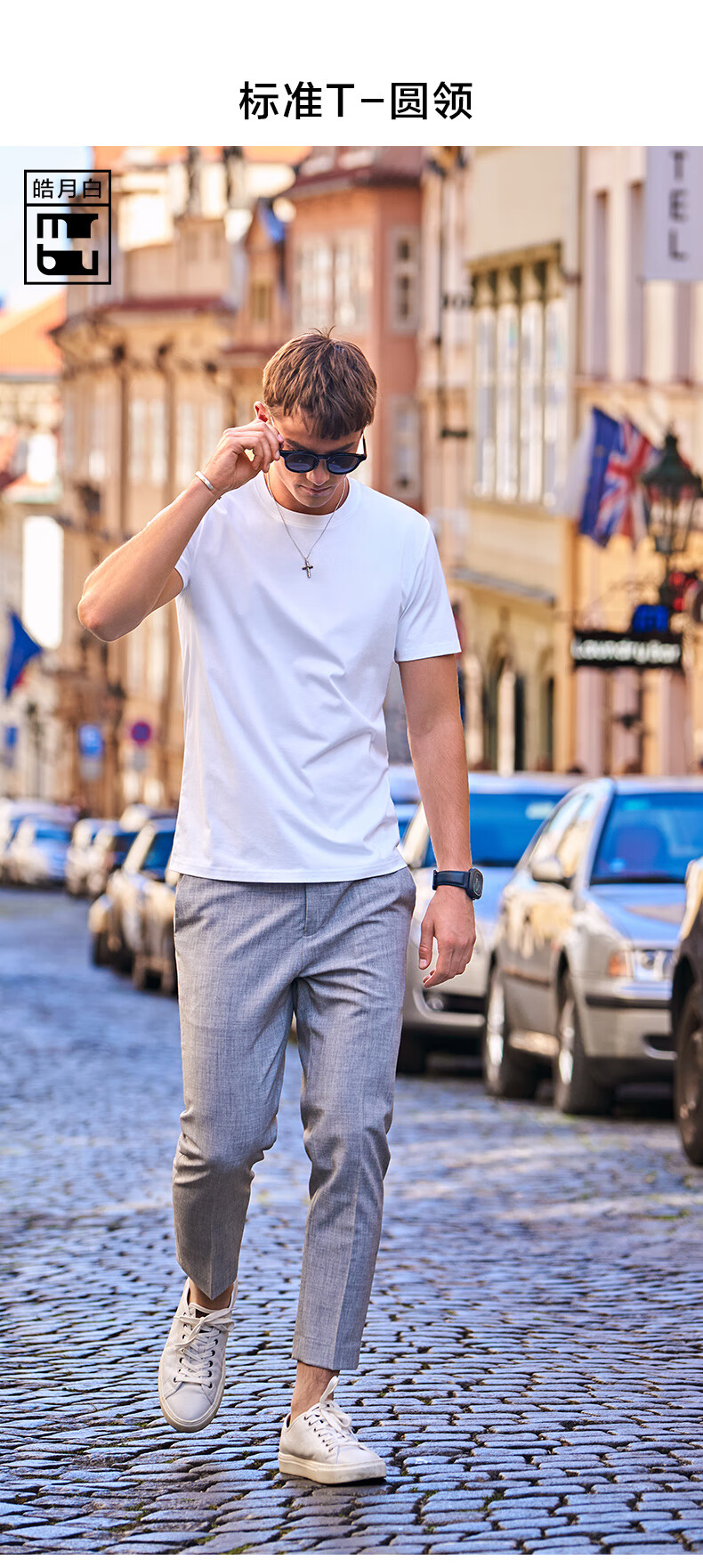Mr. Bu spring and summer short-sleeved T-shirt men's pure cotton white T solid color inner layering shirt white L(175)