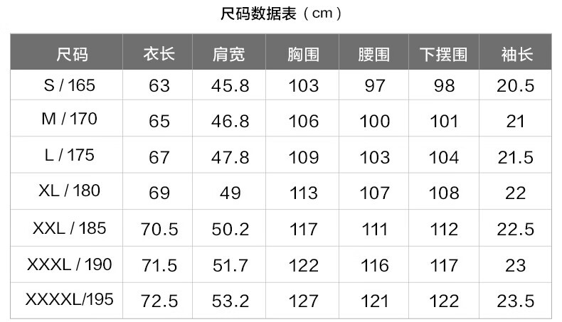 China(cm) 72-76 76-81 81-87 87-93 93-98