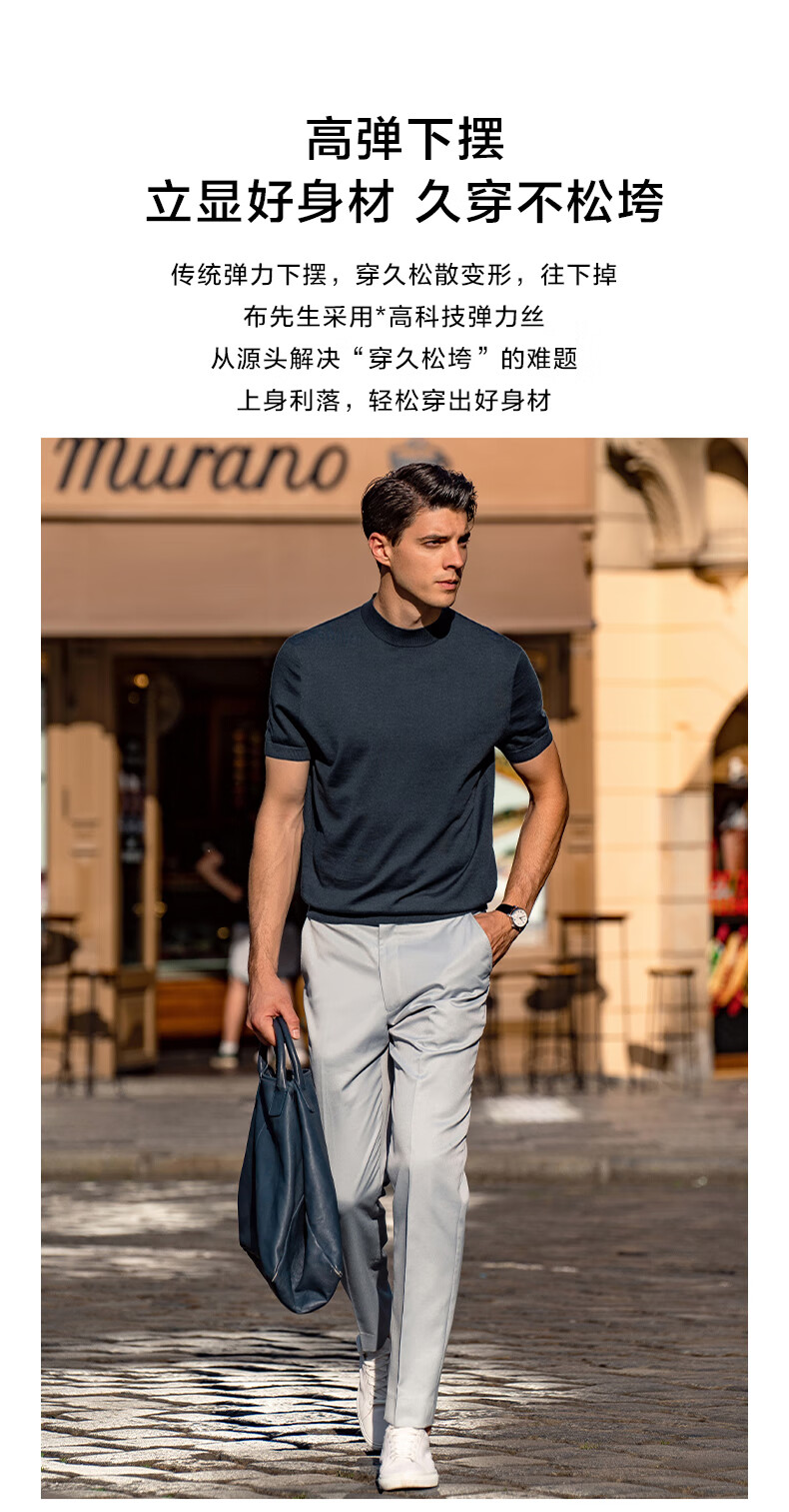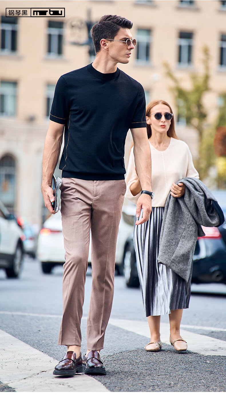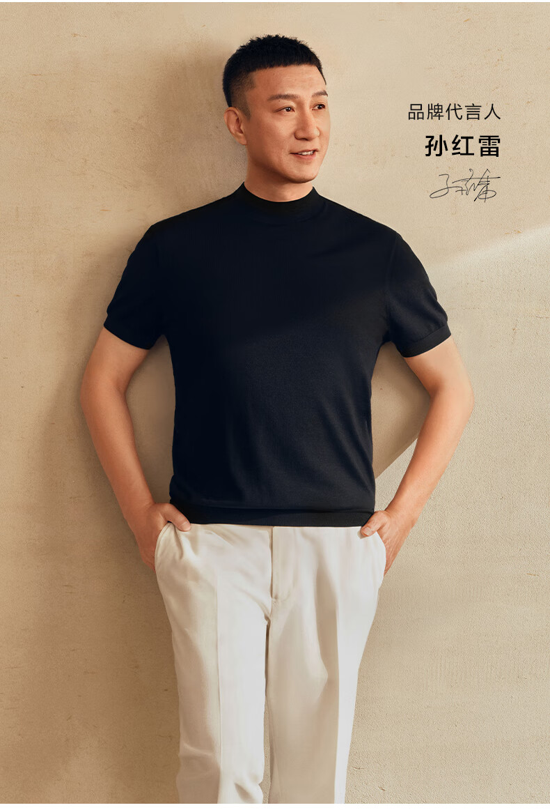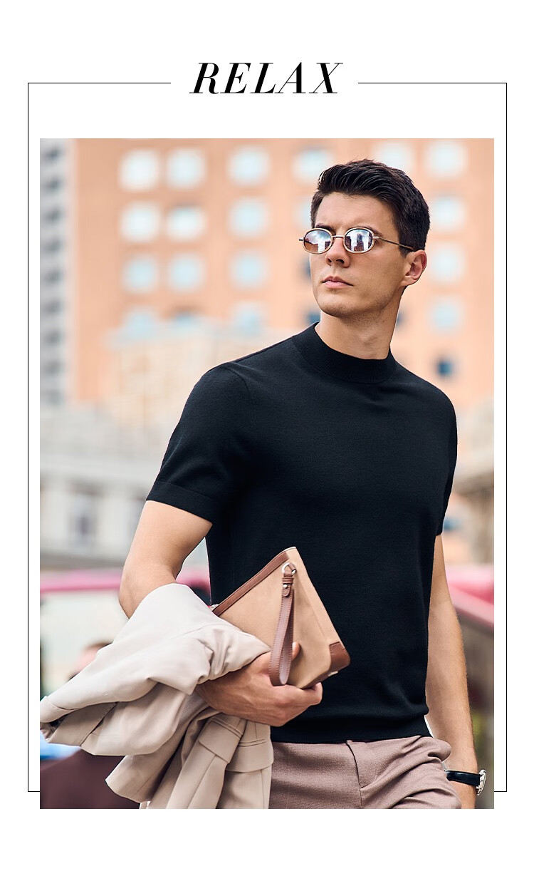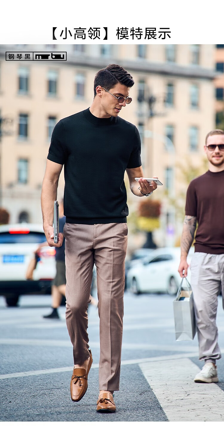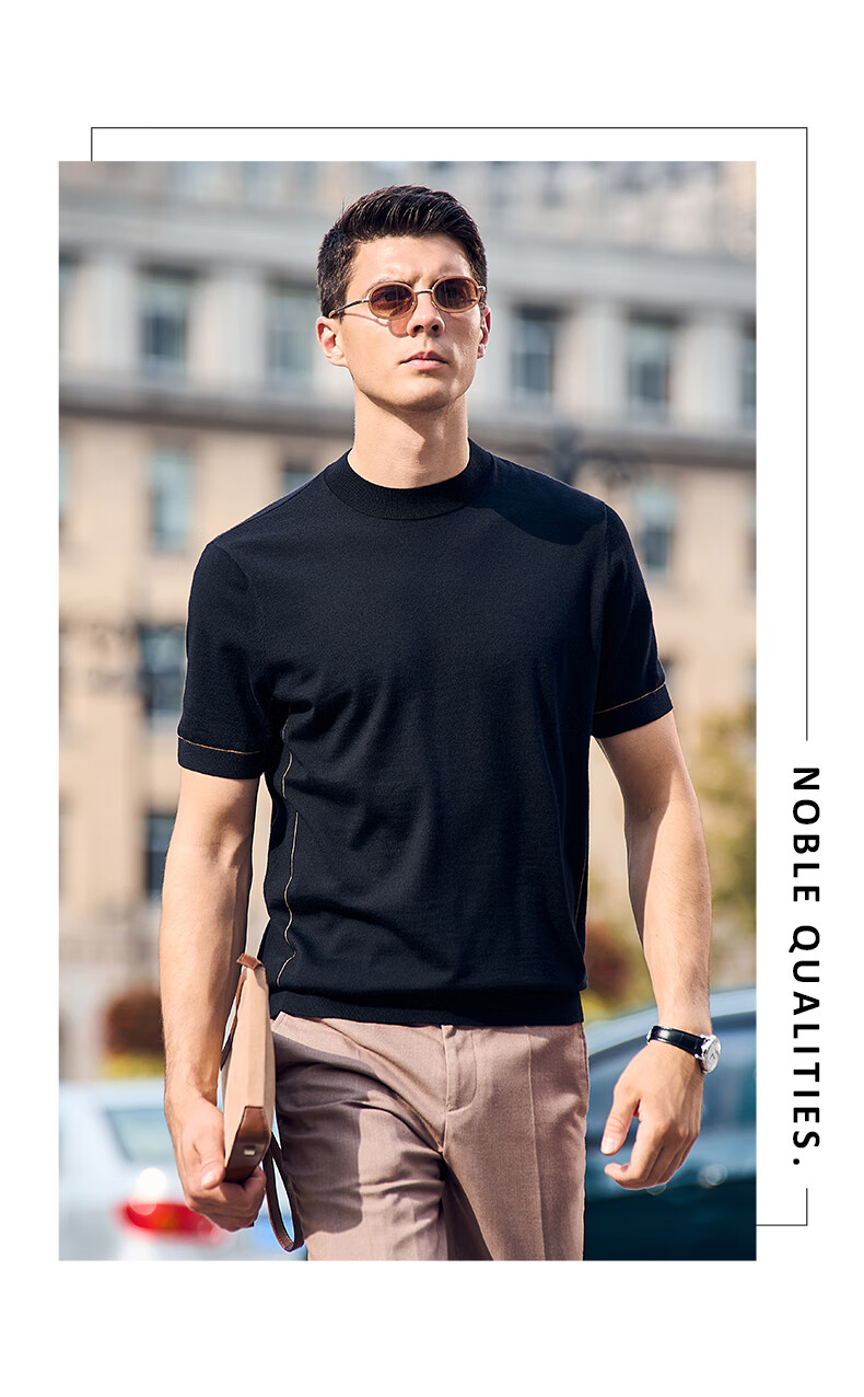 Mr. Bu machine washable short-sleeved wool T-shirt men's autumn and winter base sweater piano black L/175