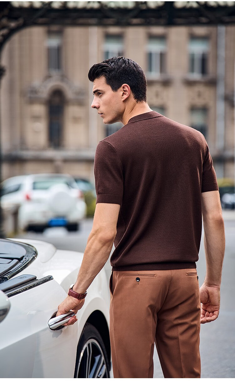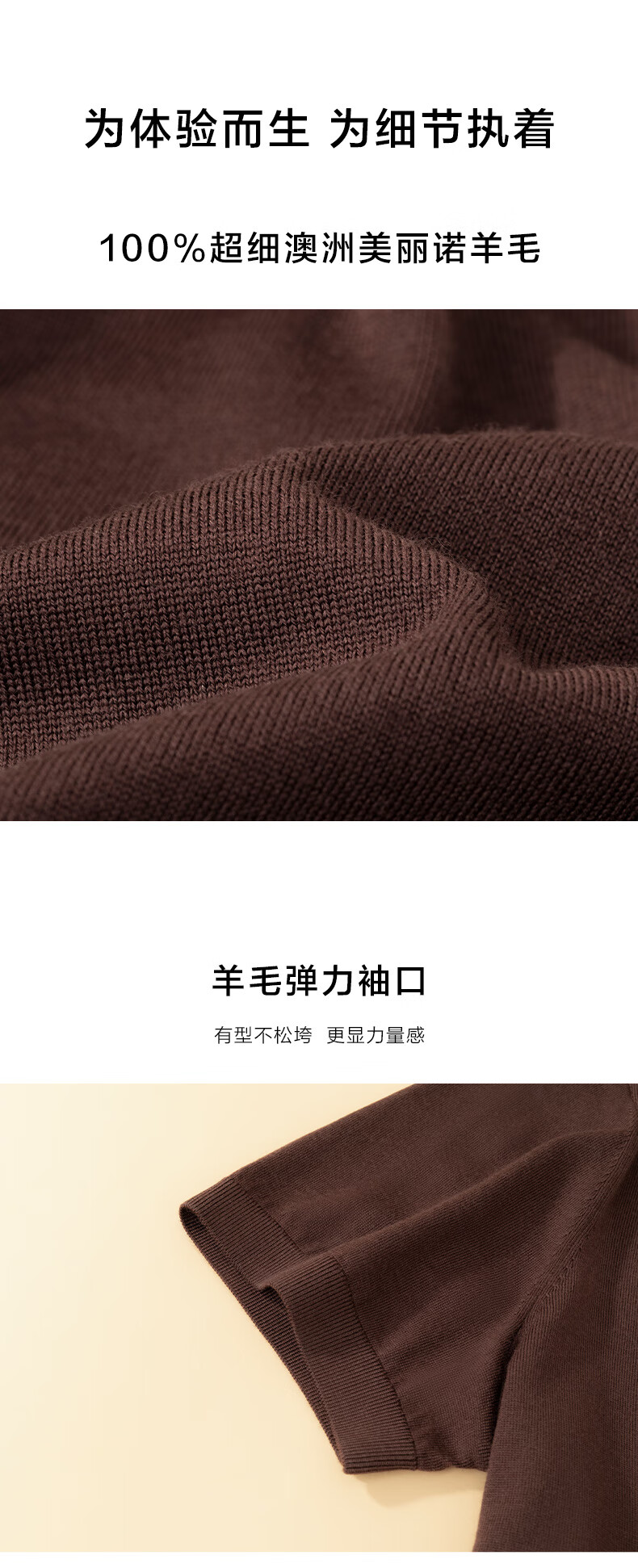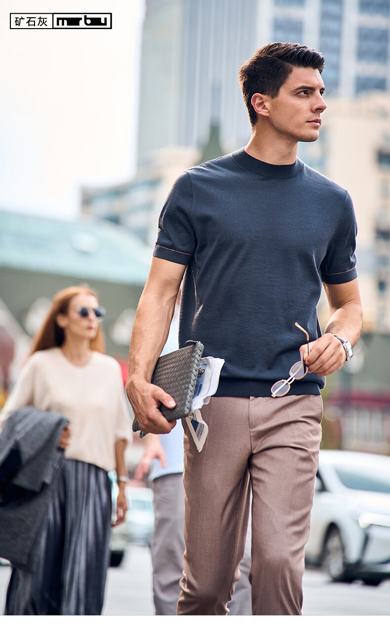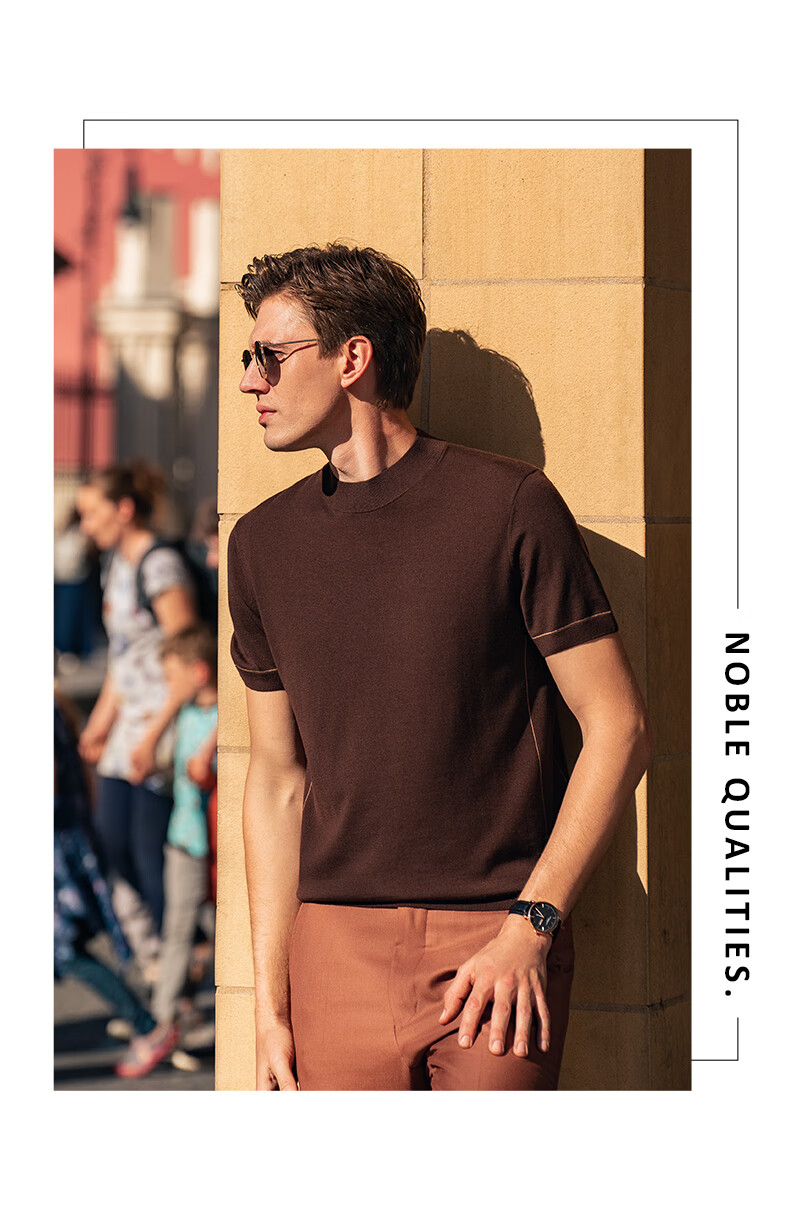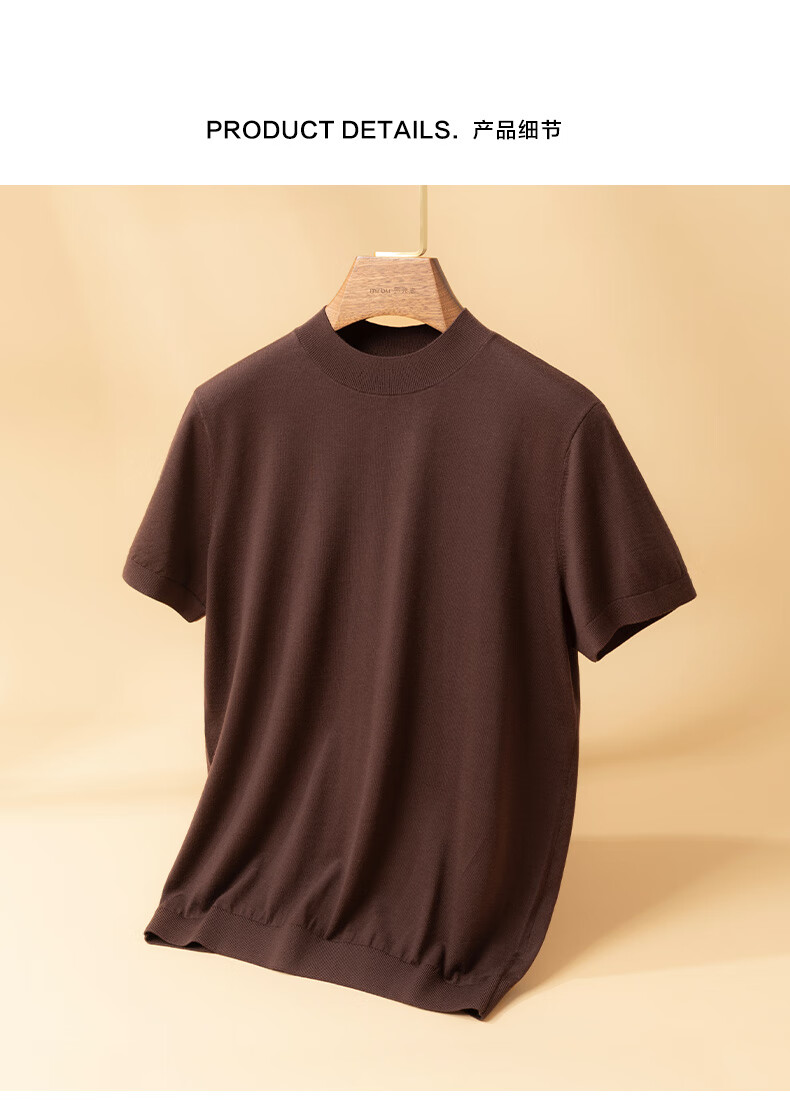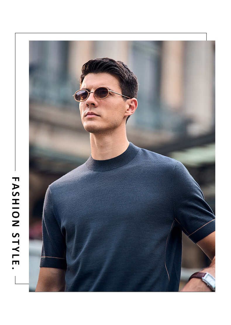 Mr. Bu machine washable short-sleeved wool T-shirt men's autumn and winter base sweater piano black L/175