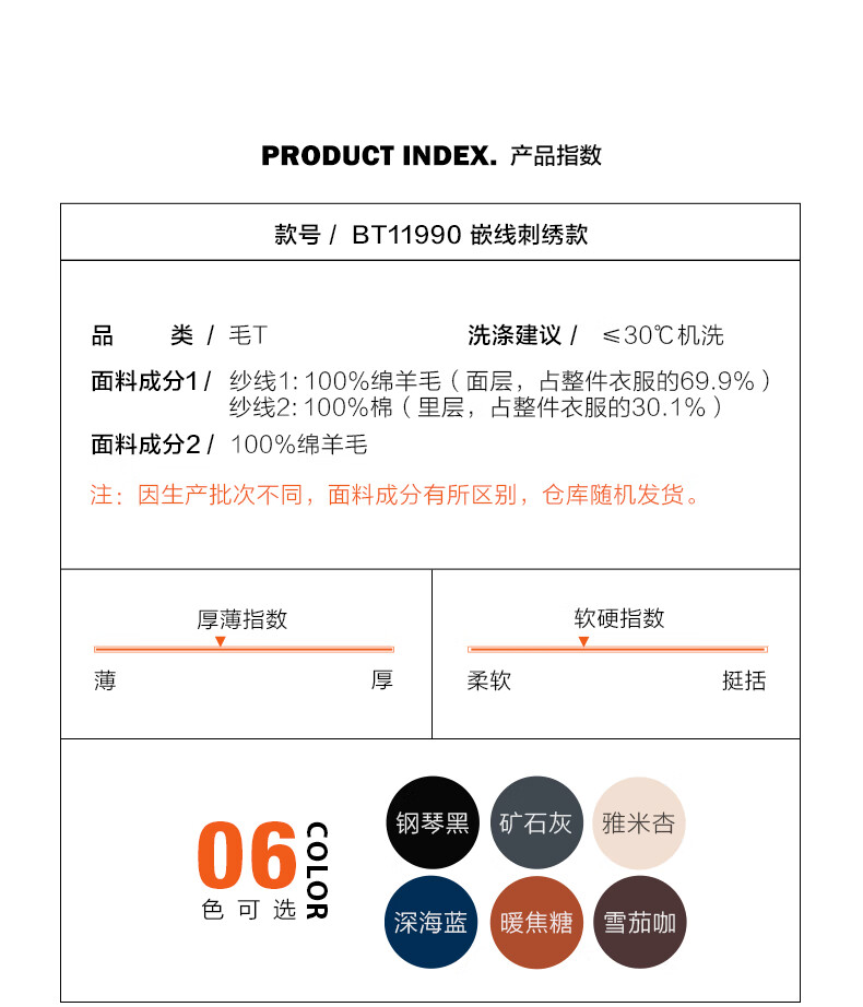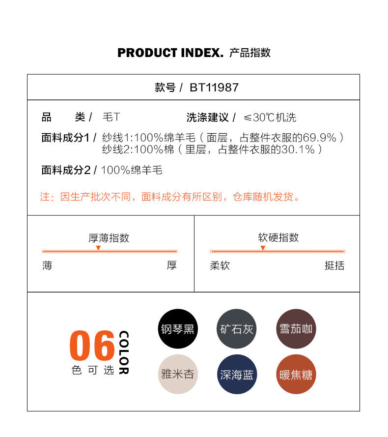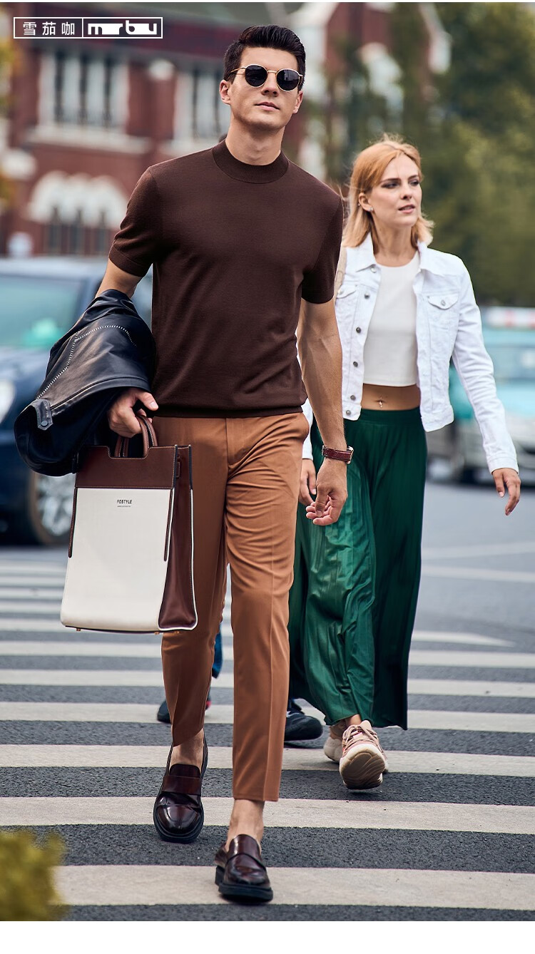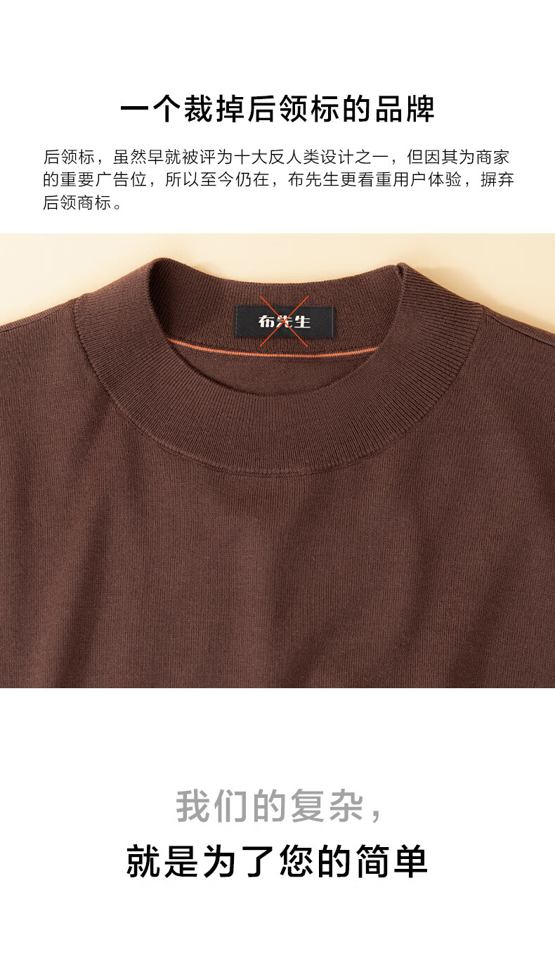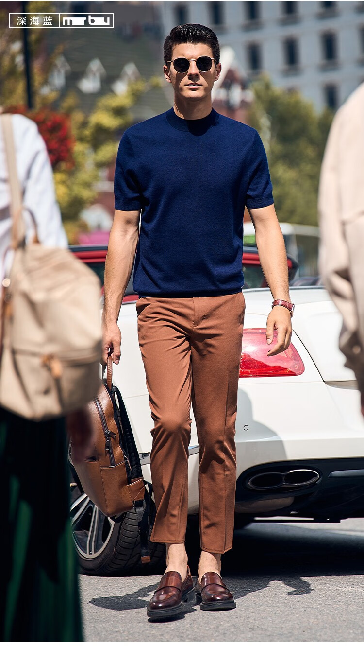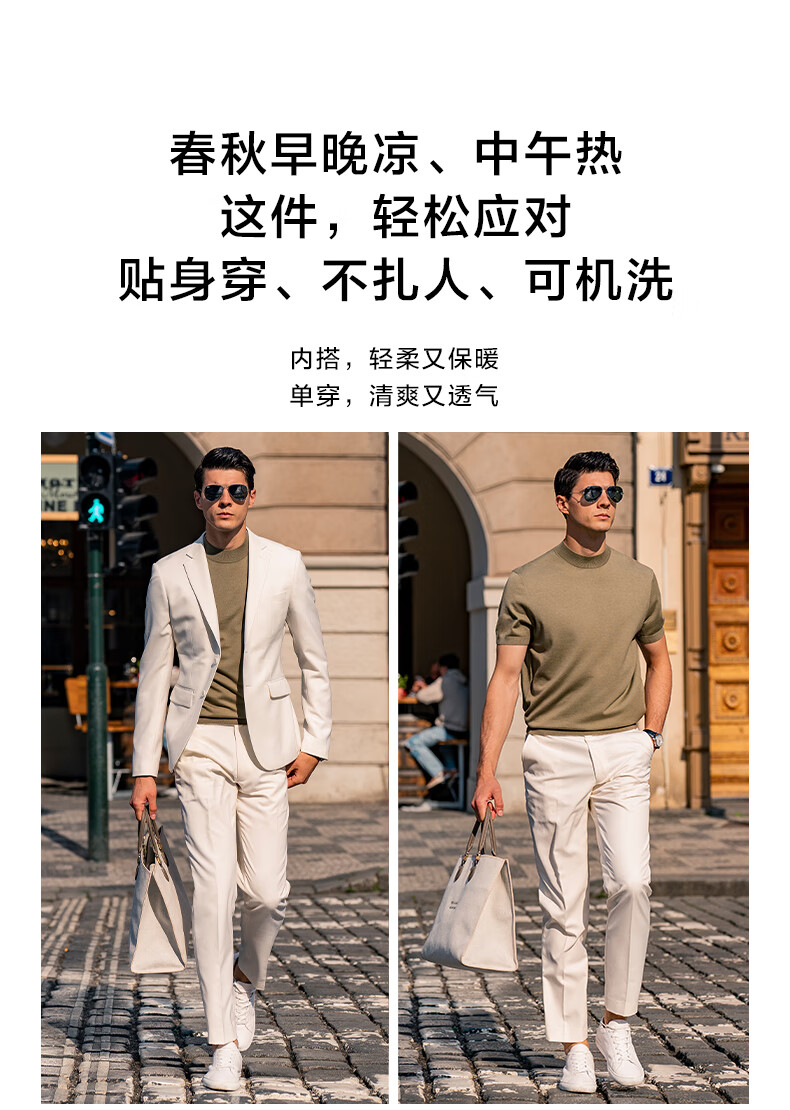 Mr. Bu machine washable short-sleeved wool T-shirt men's autumn and winter base sweater piano black L/175
