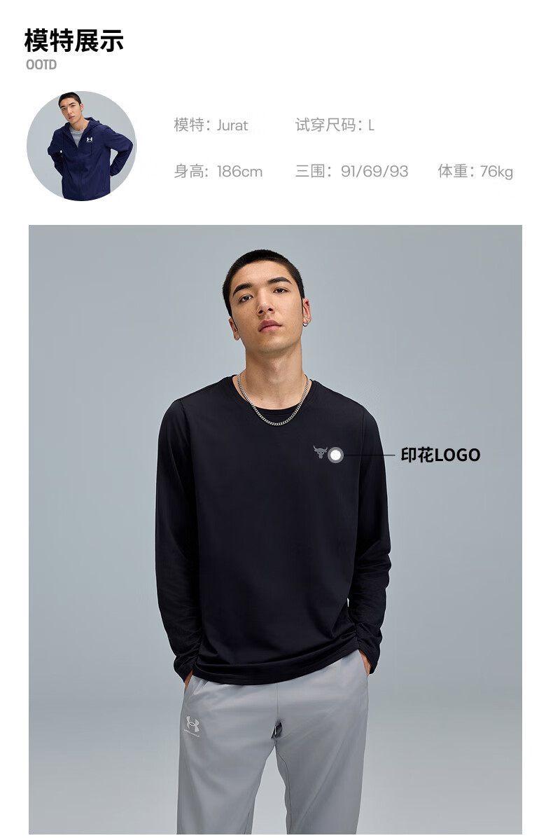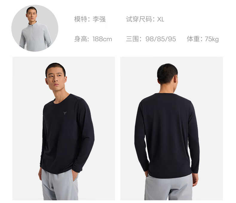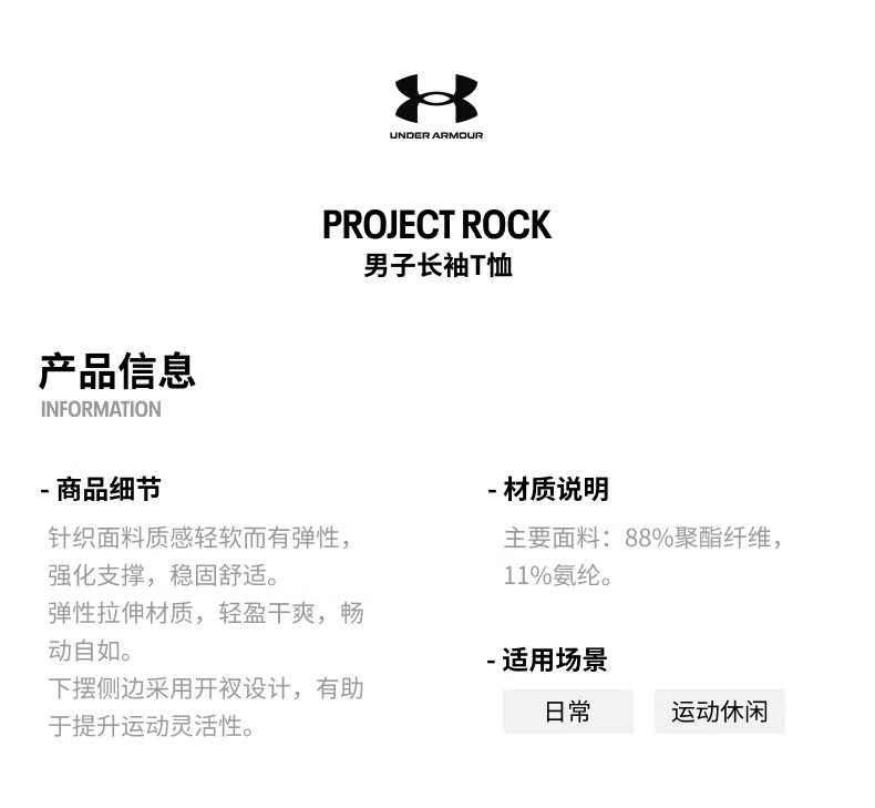 Under Armor (UNDERARMOUR) Spring and Summer Project Rock Johnson Men's Sports and Leisure Long-Sleeved T-Shirt 1386871 Black 001 XL