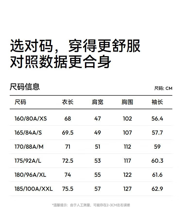 China (cm) 160-165/84-86 165-170 / 88-90 167-172 / 92-96 168-173 / 98-102 170-176 / 106-110
