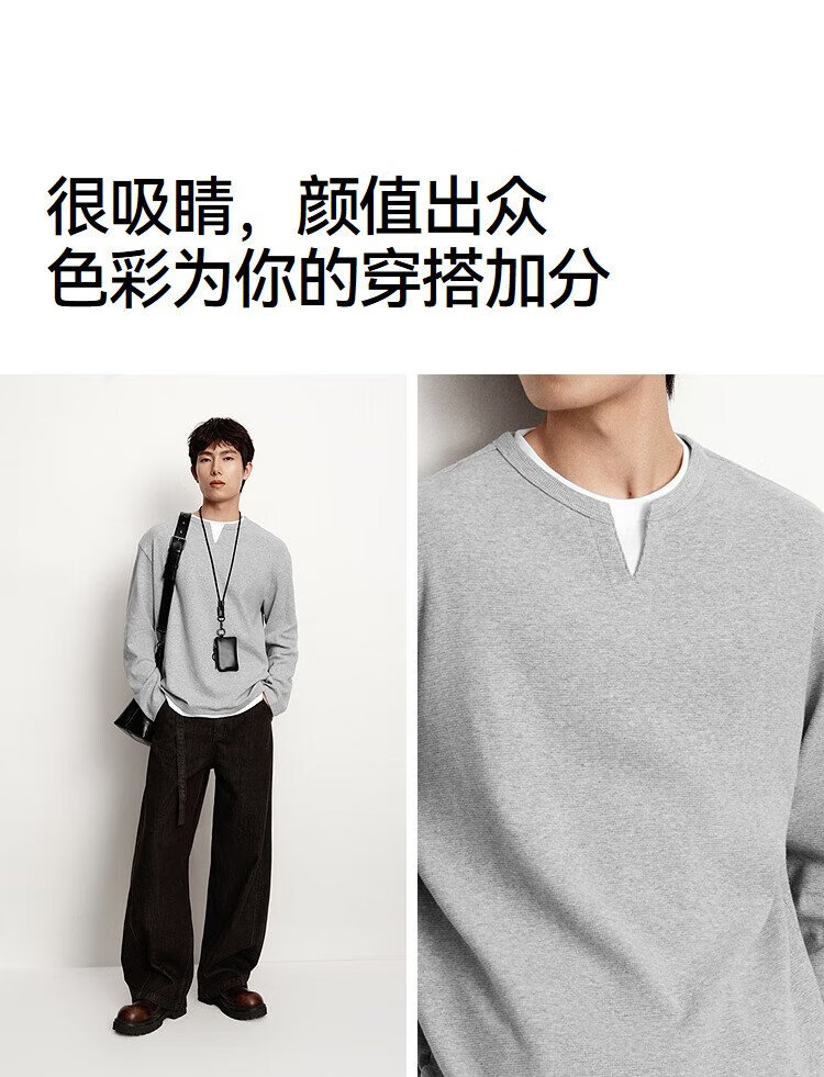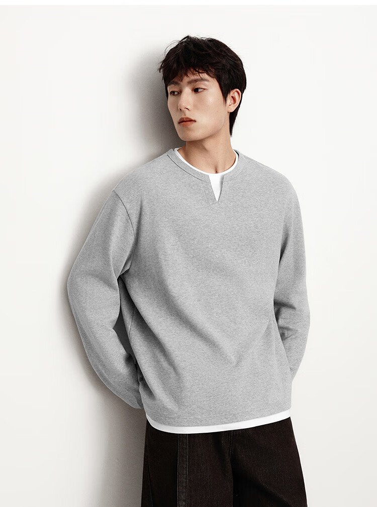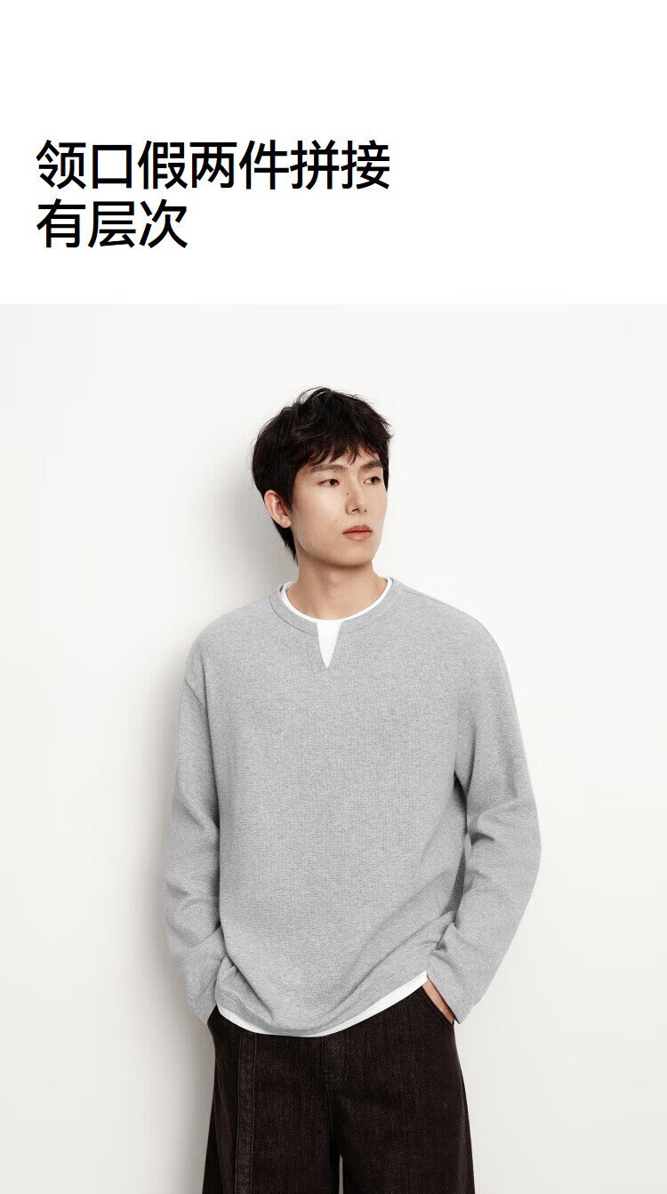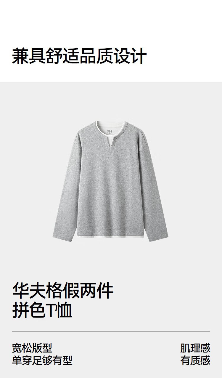 Semir long-sleeved T-shirt men's color matching fake two-piece T-shirt waffle texture top 25 autumn loose and versatile 109725101106