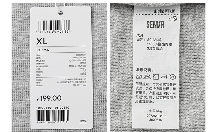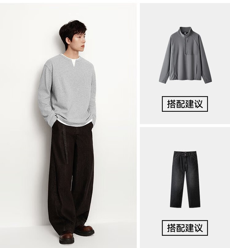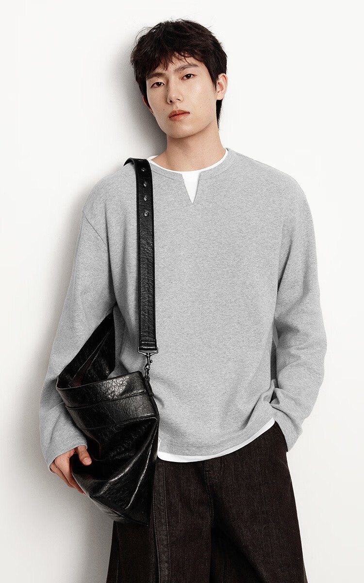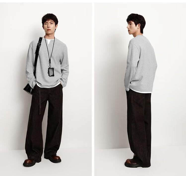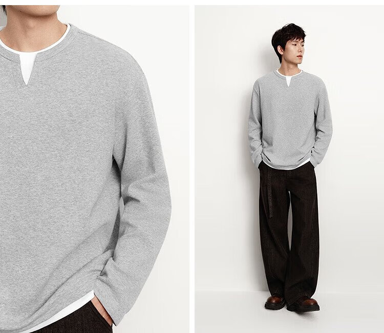 Semir long-sleeved T-shirt men's color matching fake two-piece T-shirt waffle texture top 25 autumn loose and versatile 109725101106