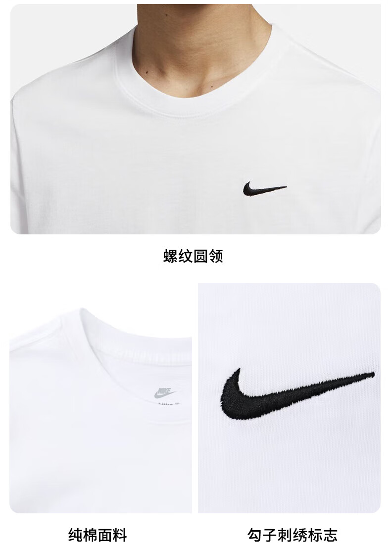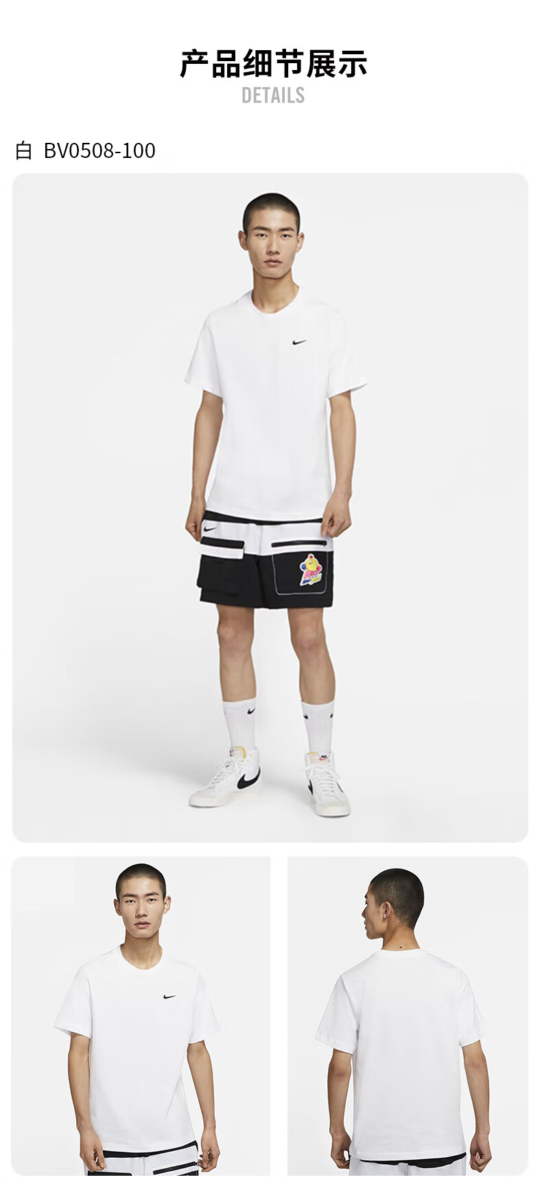 Nike Men's Sports T-Shirt Summer Lightweight Casual Round Neck Pure Cotton Sportswear BV0508-010 Black L