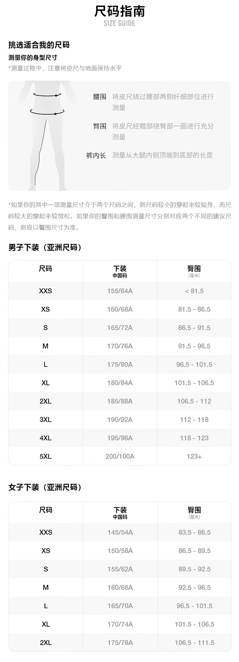 China (cm) 160-165/84-86 165-170 / 88-90 167-172 / 92-96 168-173 / 98-102 170-176 / 106-110