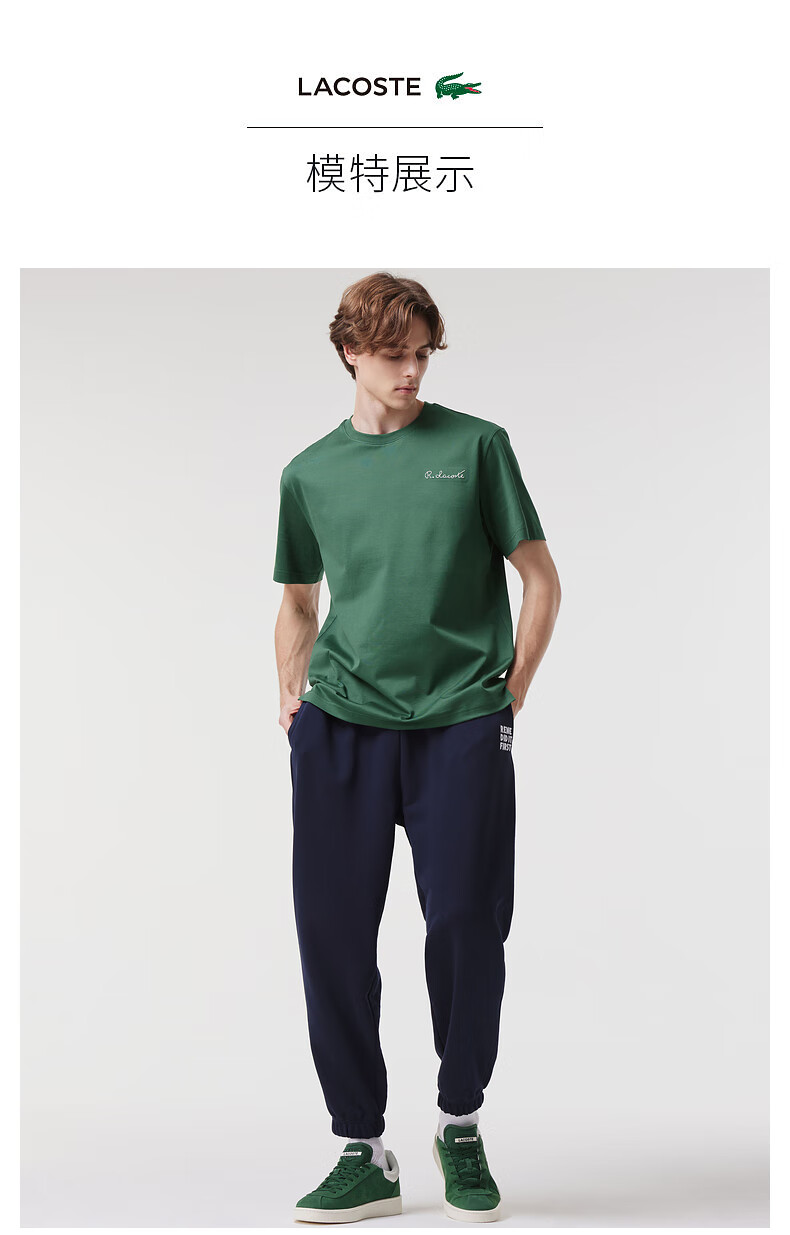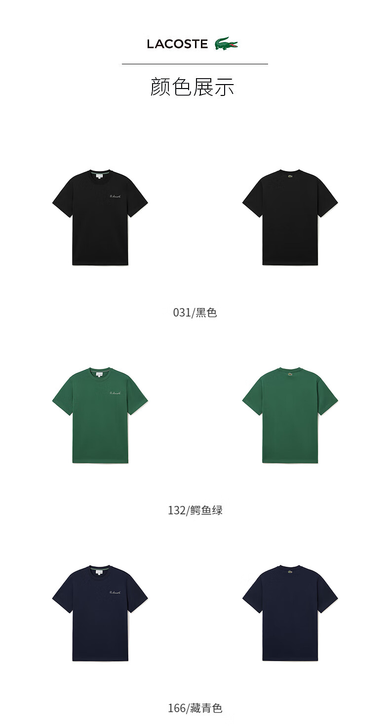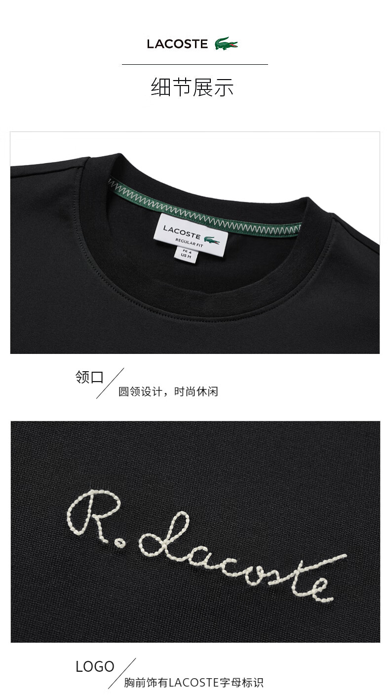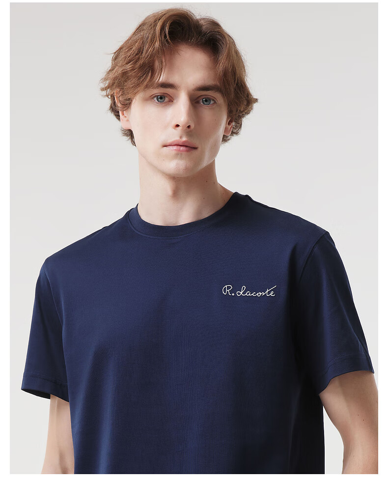 LACOSTE French crocodile men's simple casual solid color round neck short-sleeved T-shirt | TH3838 166/Navy Blue M 4 175